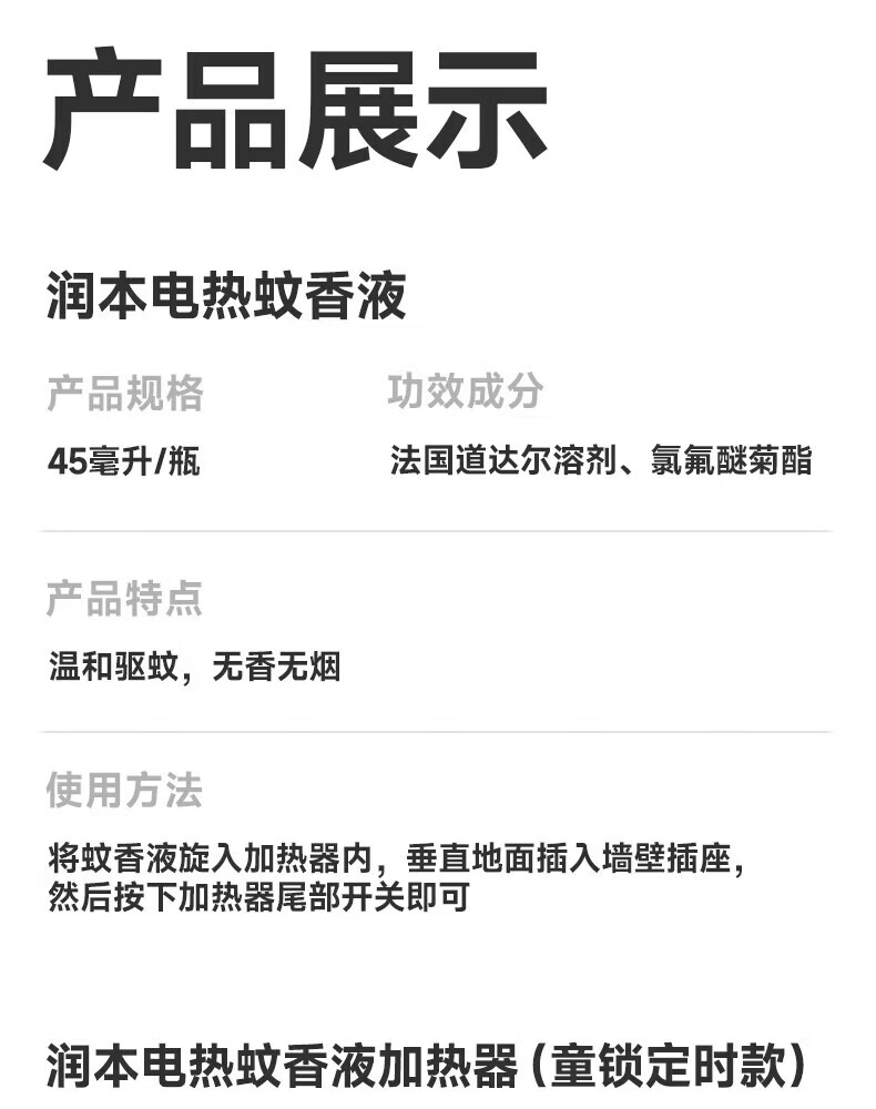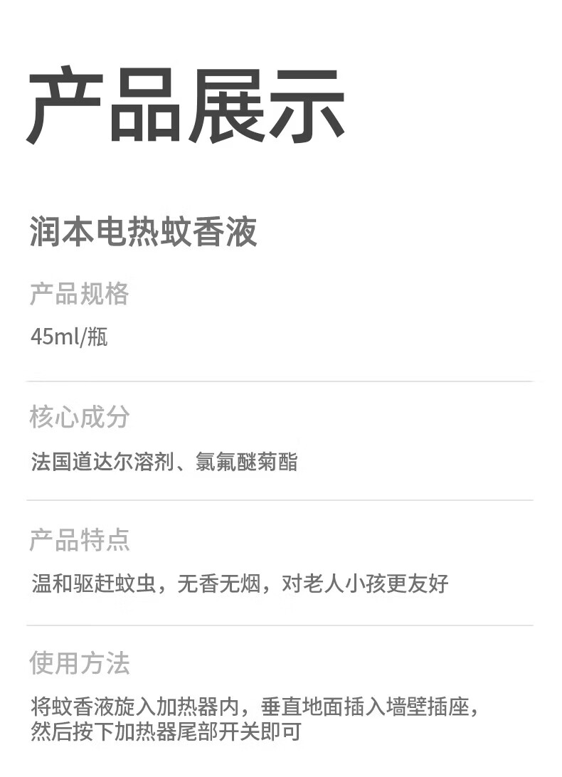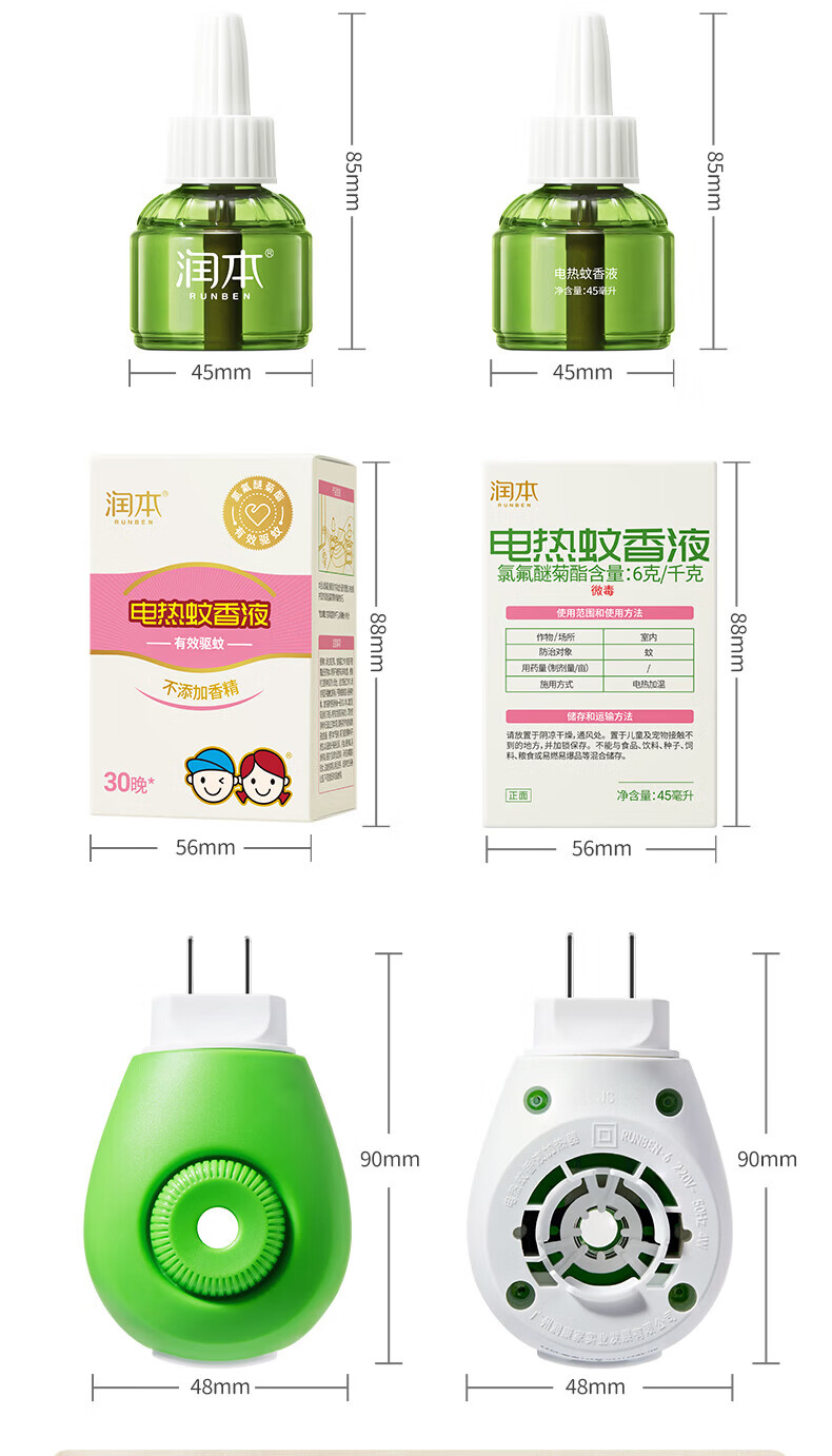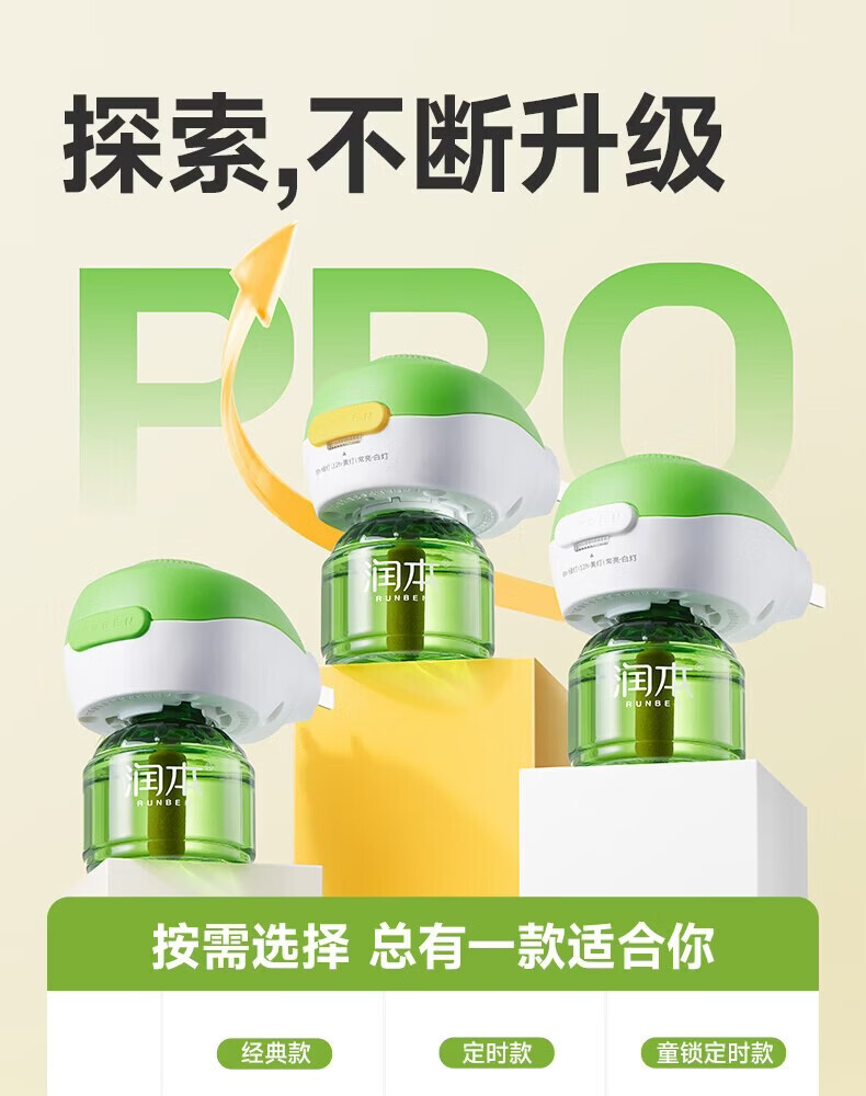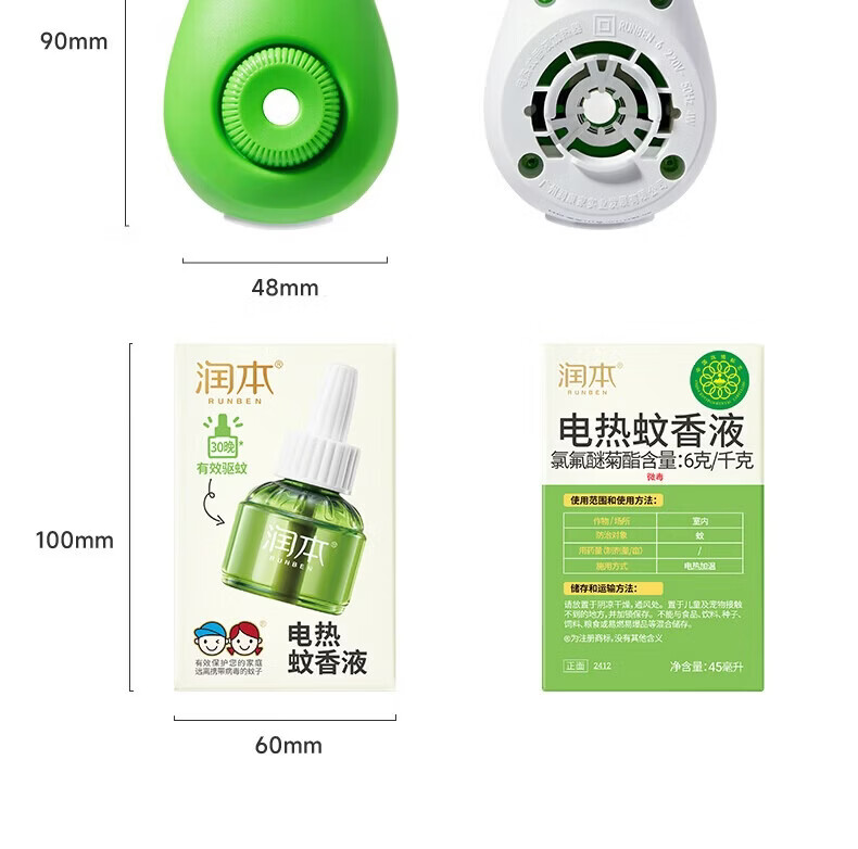 润本(RUNBEN)电热蚊香液无烟无味3档定时电蚊香器专用补充液防蚊液驱蚊液 【1居室可选】蚊香液45ml*4液+1器(非定时款)