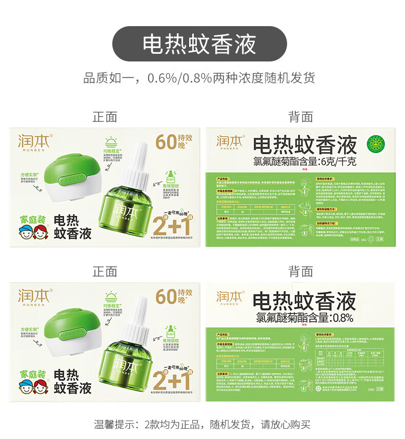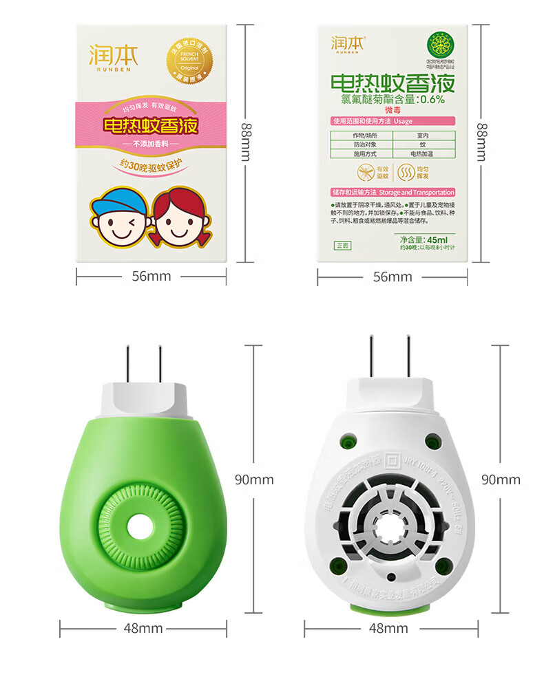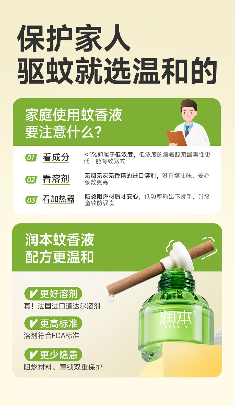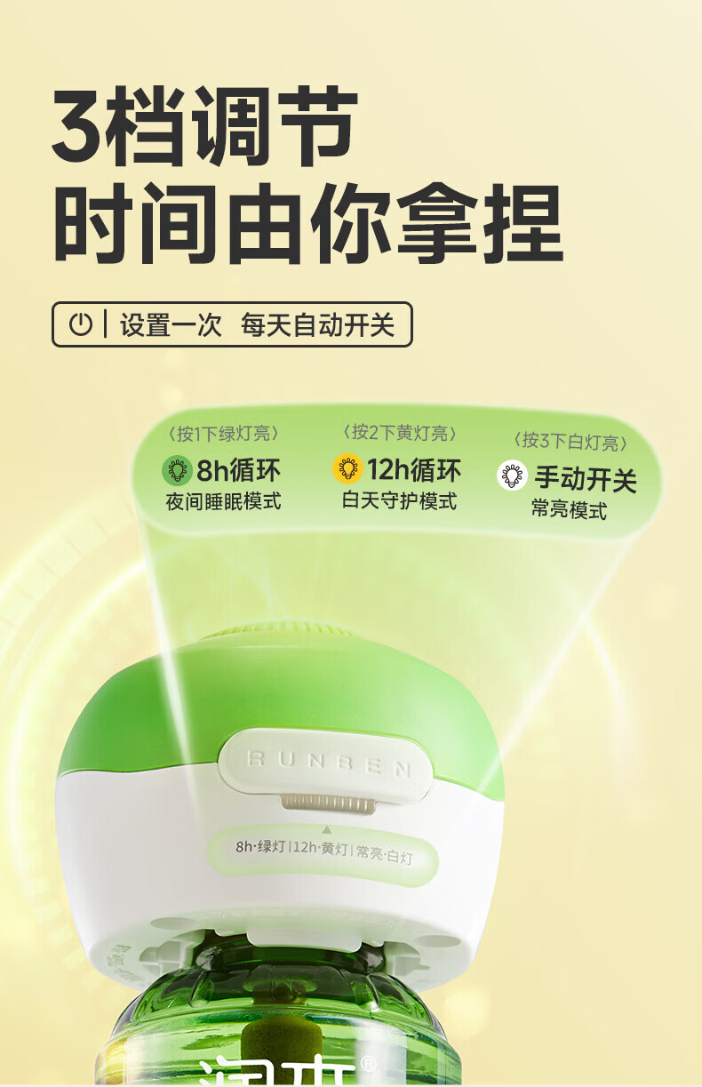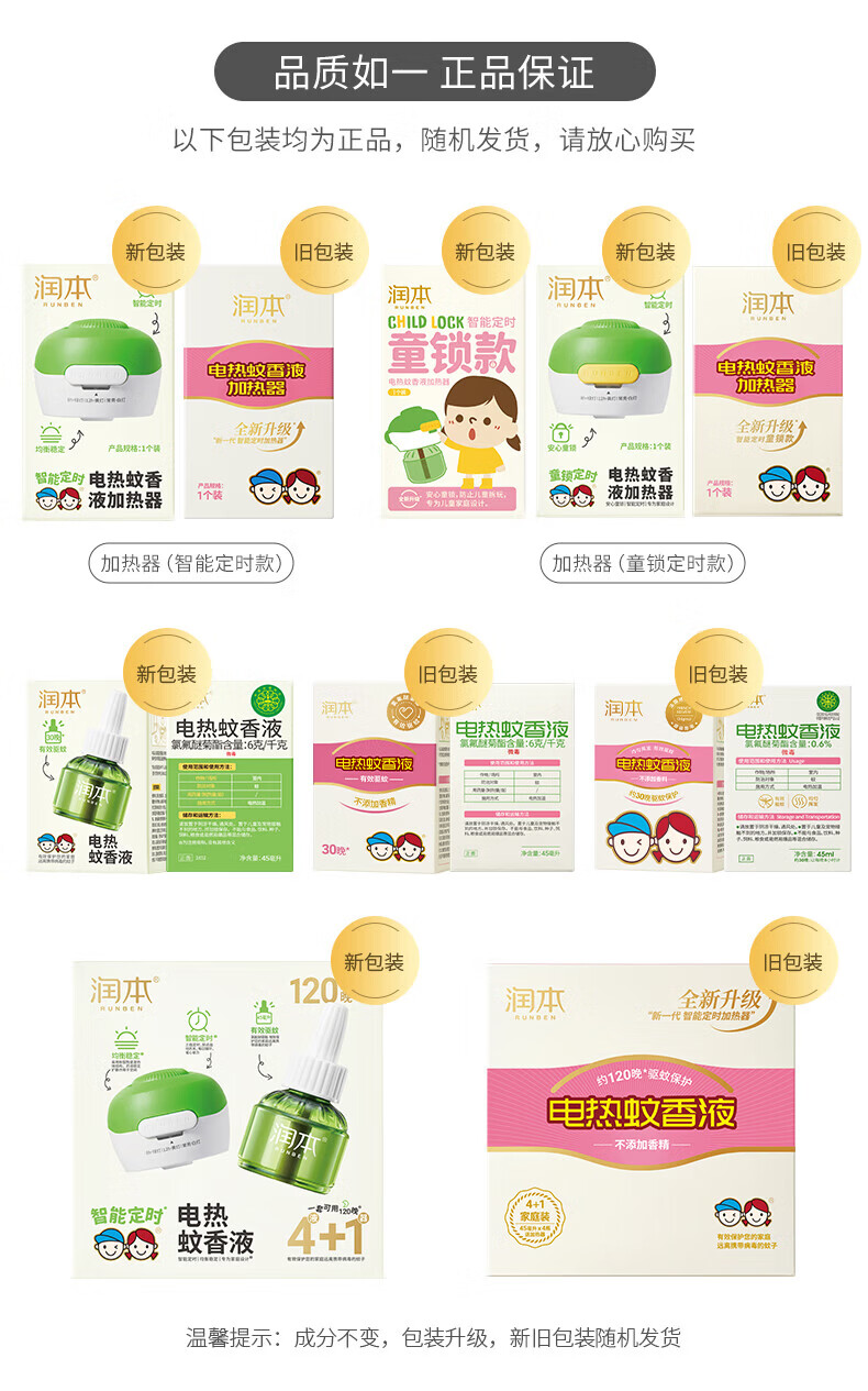 润本(RUNBEN)电热蚊香液无烟无味3档定时电蚊香器专用补充液防蚊液驱蚊液 【1居室可选】蚊香液45ml*4液+1器(非定时款)