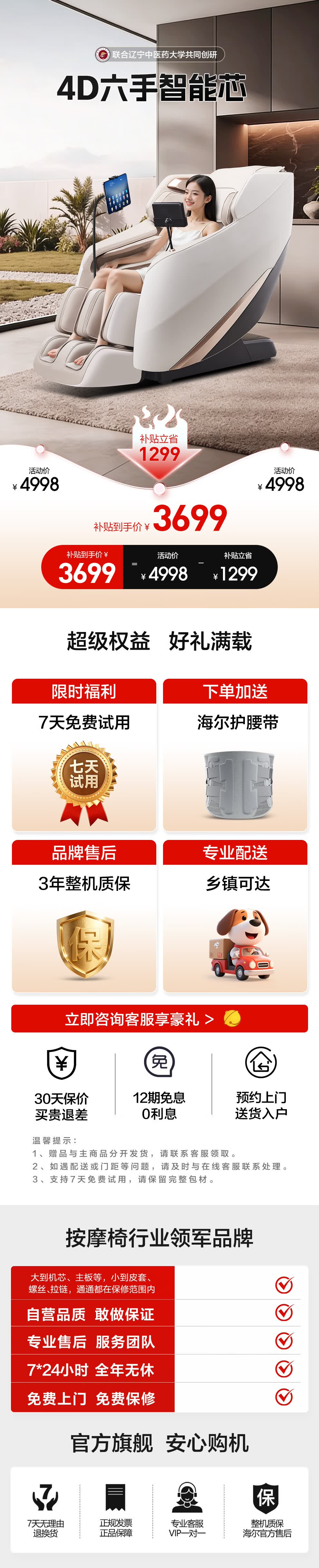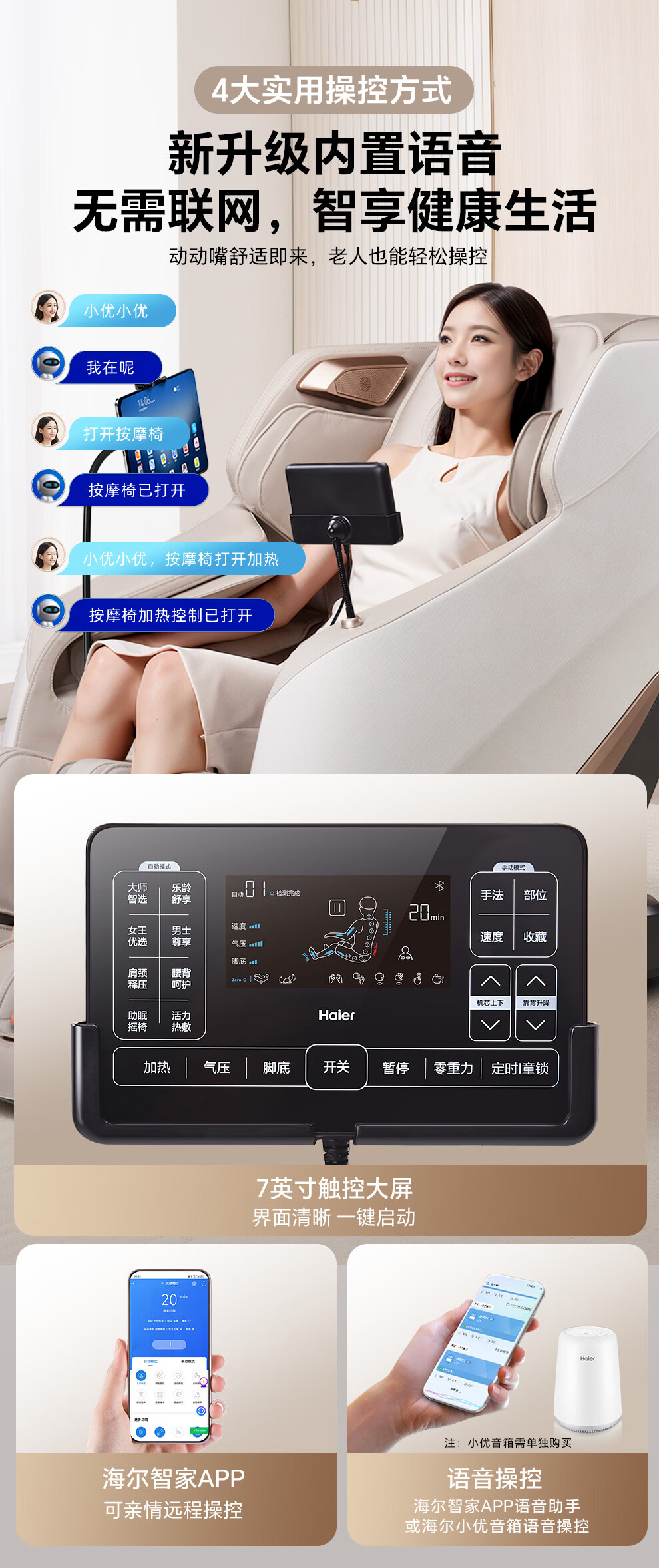 海尔(Haier)按摩椅家用全身按摩太空舱2026电动按摩沙发摇摇椅送父母老人生日母亲节礼物H3-102Pro-WU1