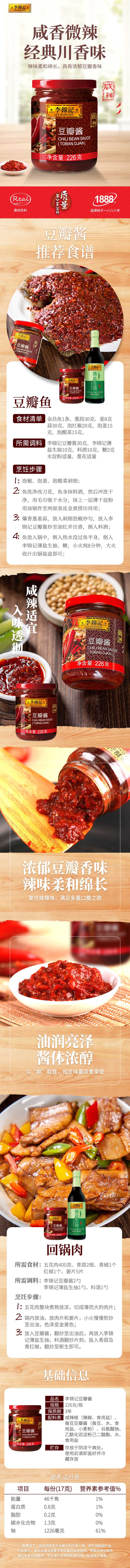 李锦记豆瓣酱226g 咸香微辣 拌焖炖炒调味酱
