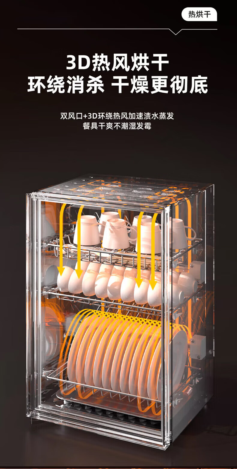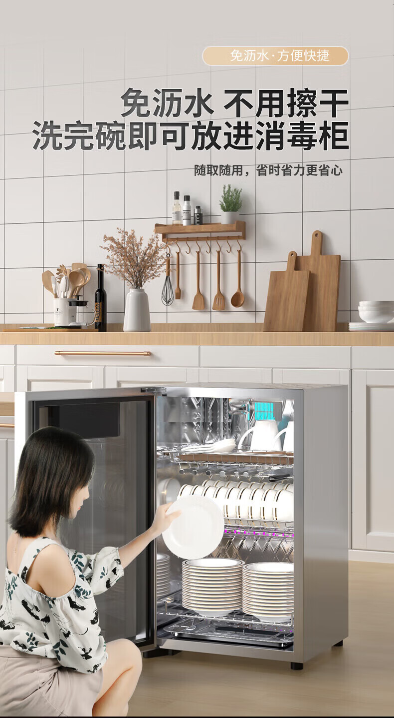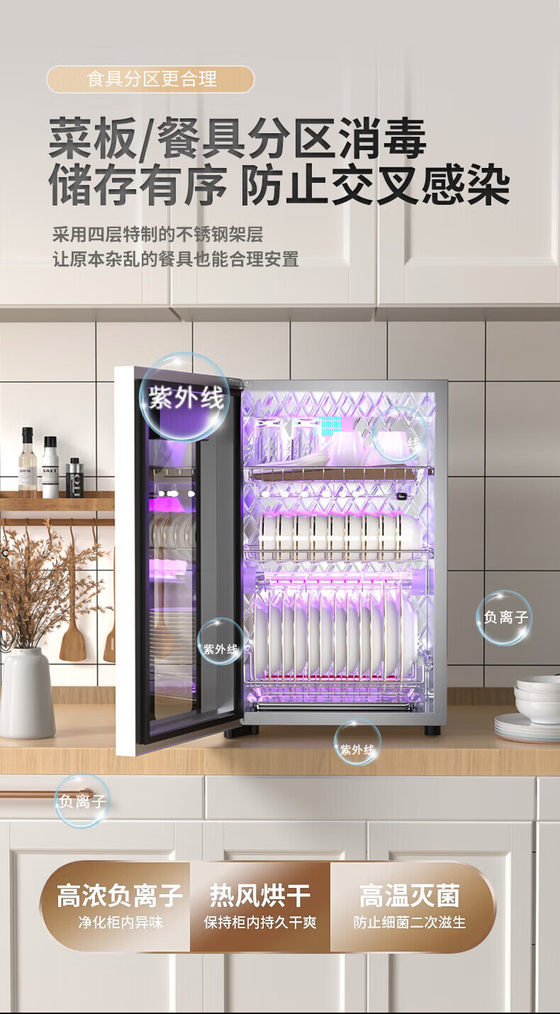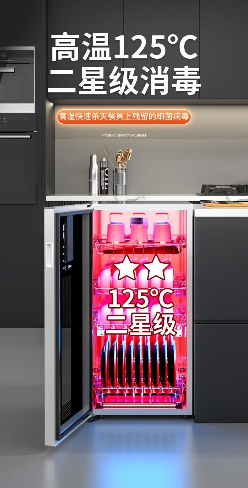 日本樱花立式消毒柜家用小型紫外线高温杀菌碗筷母婴消毒二星级大容量不锈钢内胆层架免沥水消毒烘干一体 二星级 58L 标配黑 125℃高温+负离子+免沥水