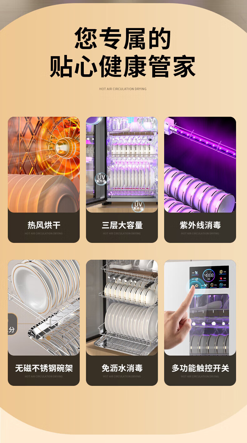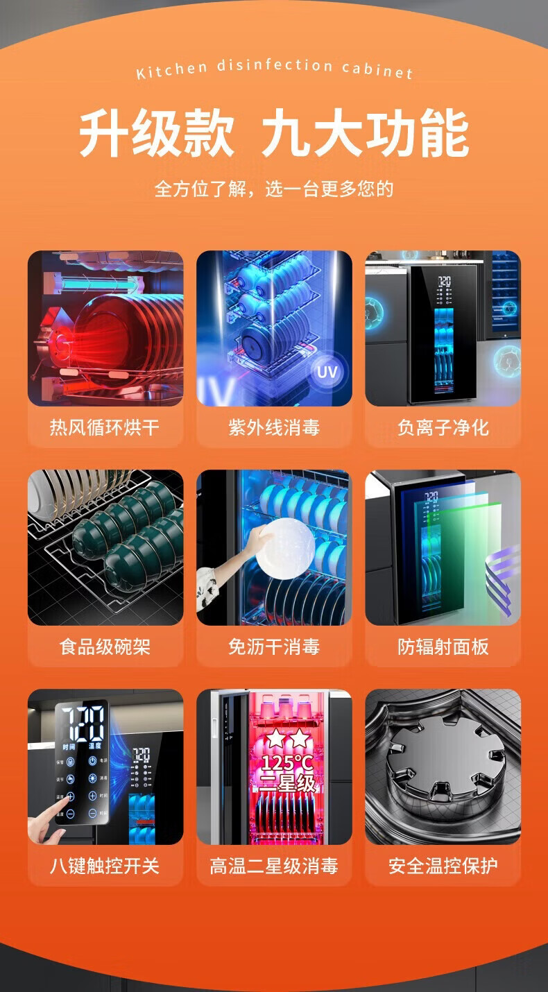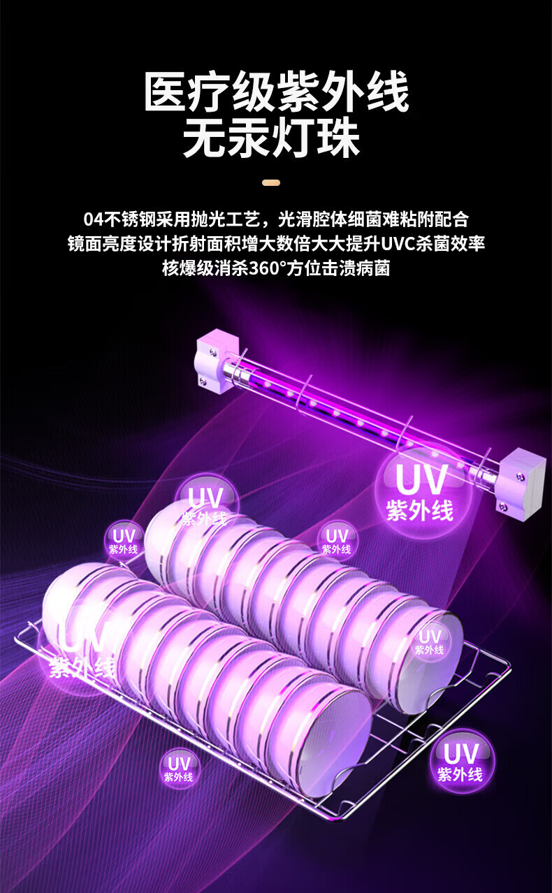日本樱花立式消毒柜家用小型紫外线高温杀菌碗筷母婴消毒二星级大容量不锈钢内胆层架免沥水消毒烘干一体 二星级 58L 标配黑 125℃高温+负离子+免沥水