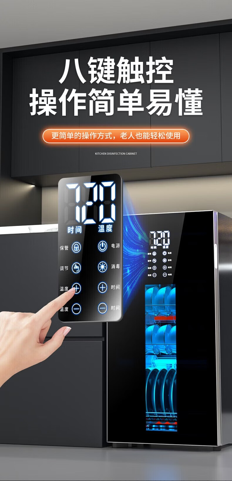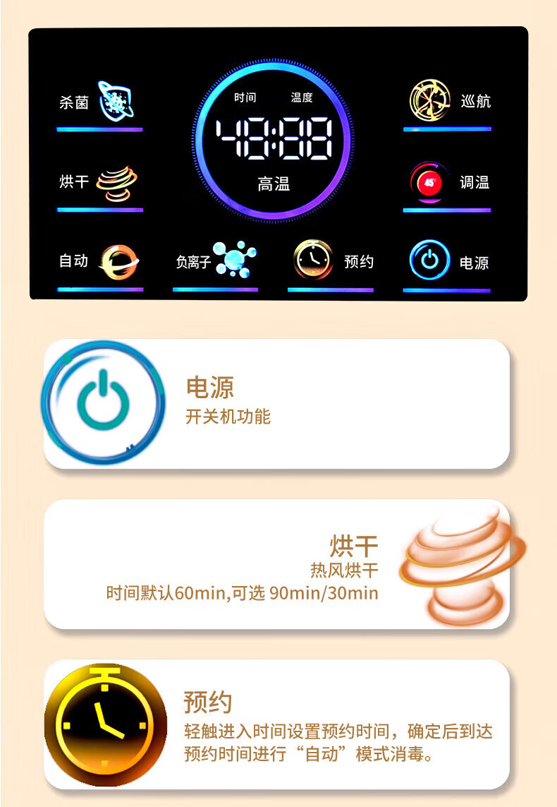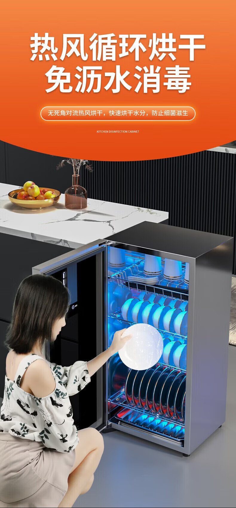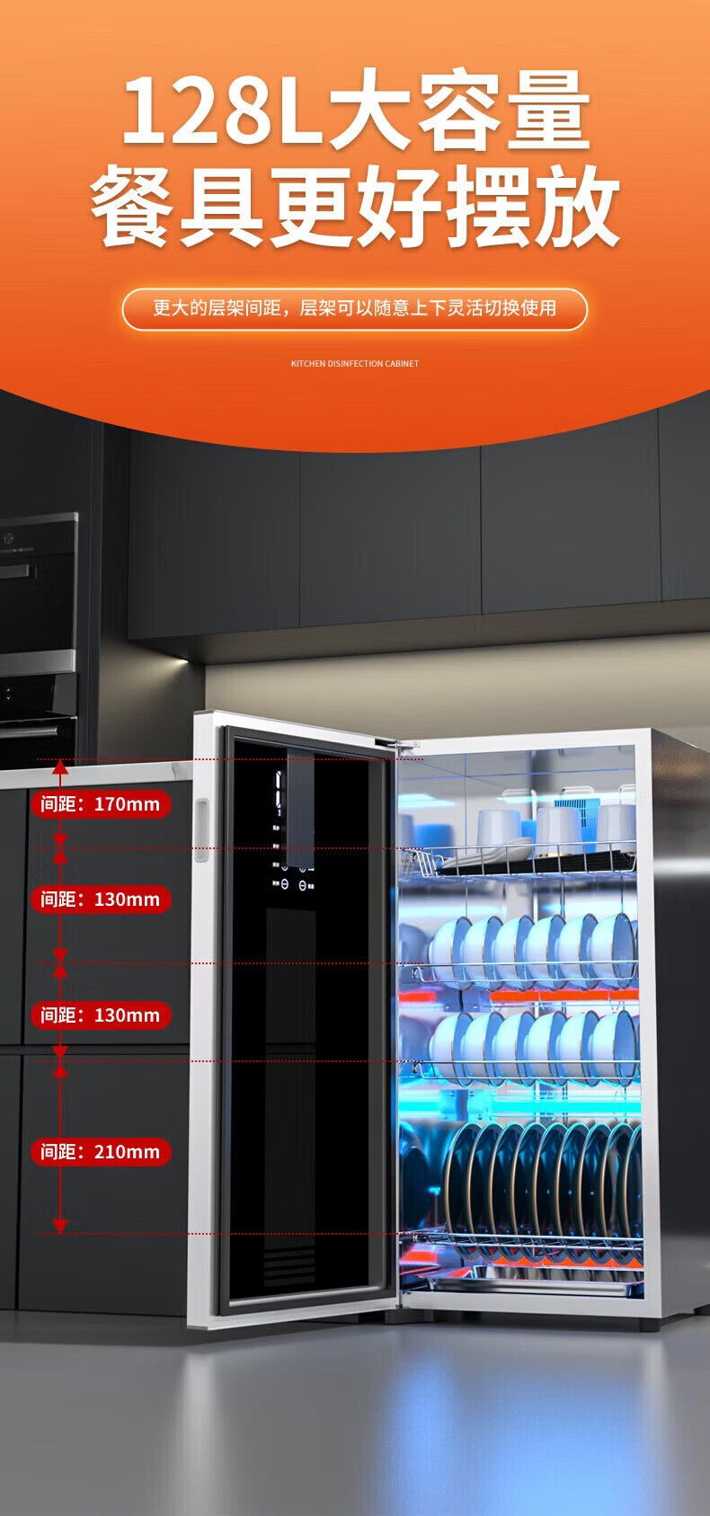 日本樱花立式消毒柜家用小型紫外线高温杀菌碗筷母婴消毒二星级大容量不锈钢内胆层架免沥水消毒烘干一体 二星级 58L 标配黑 125℃高温+负离子+免沥水