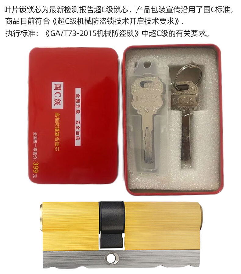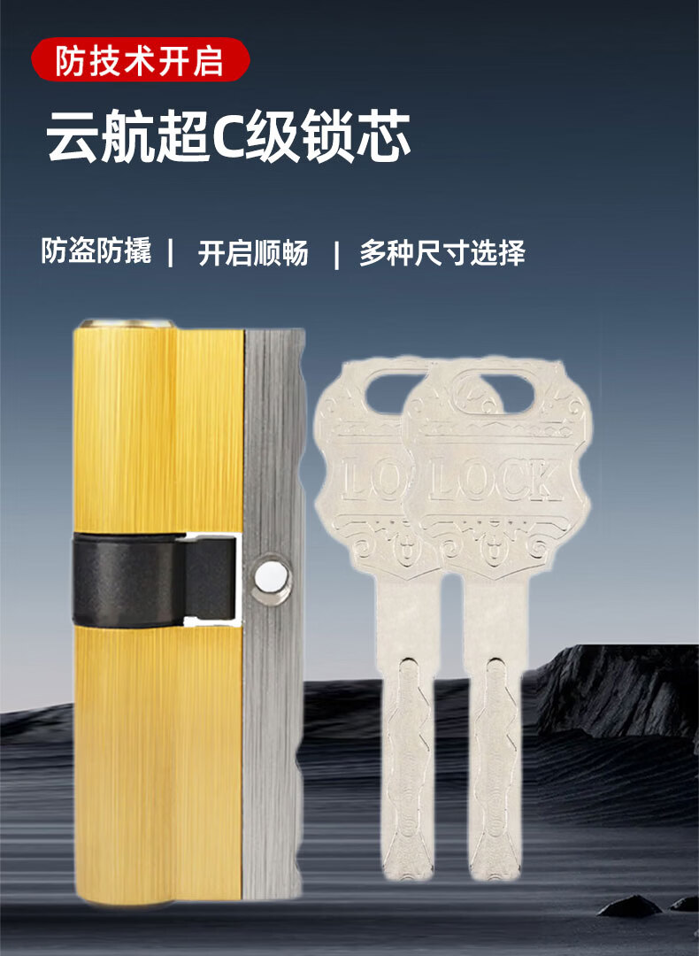 云航锁芯防盗门锁芯超c级锁芯家用入户门防盗门锁铜锁芯叶片通用锁芯 防盗门锁芯锁帽一对