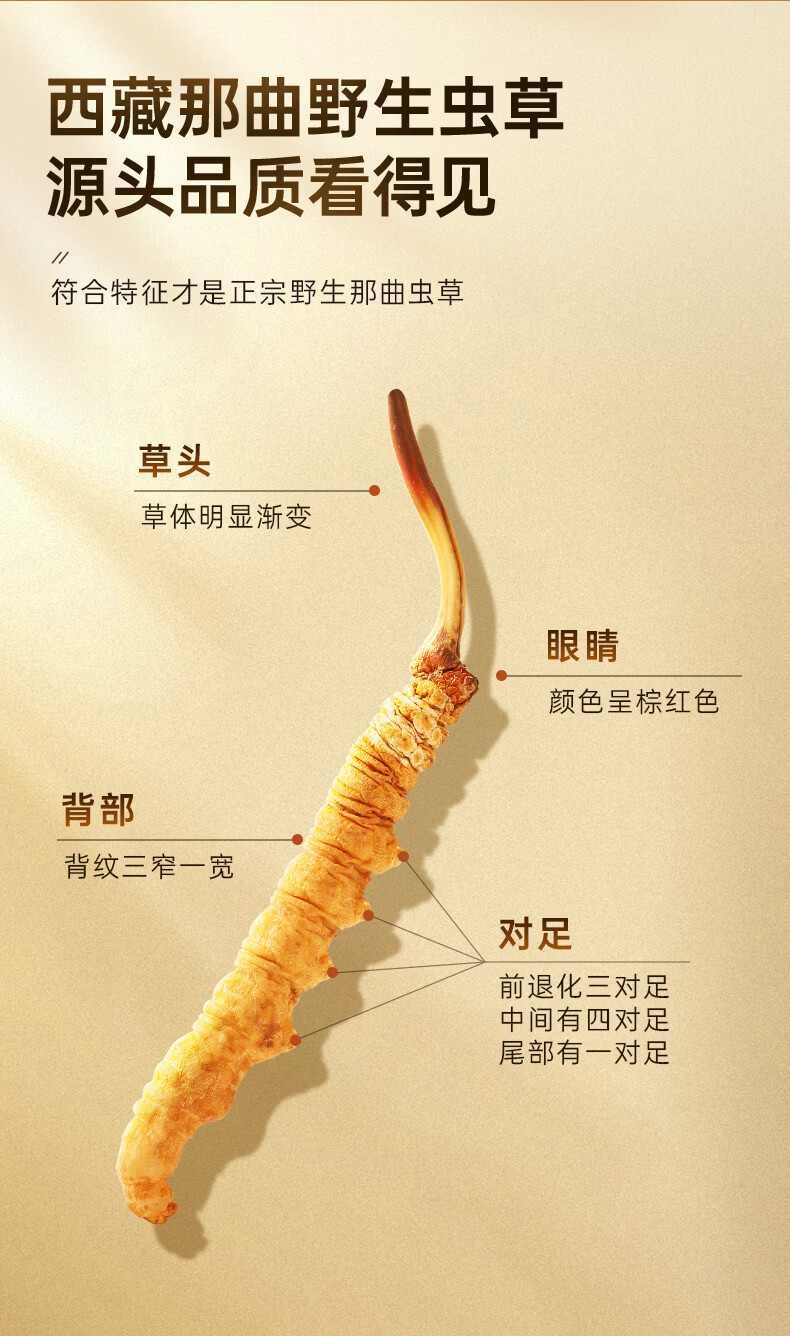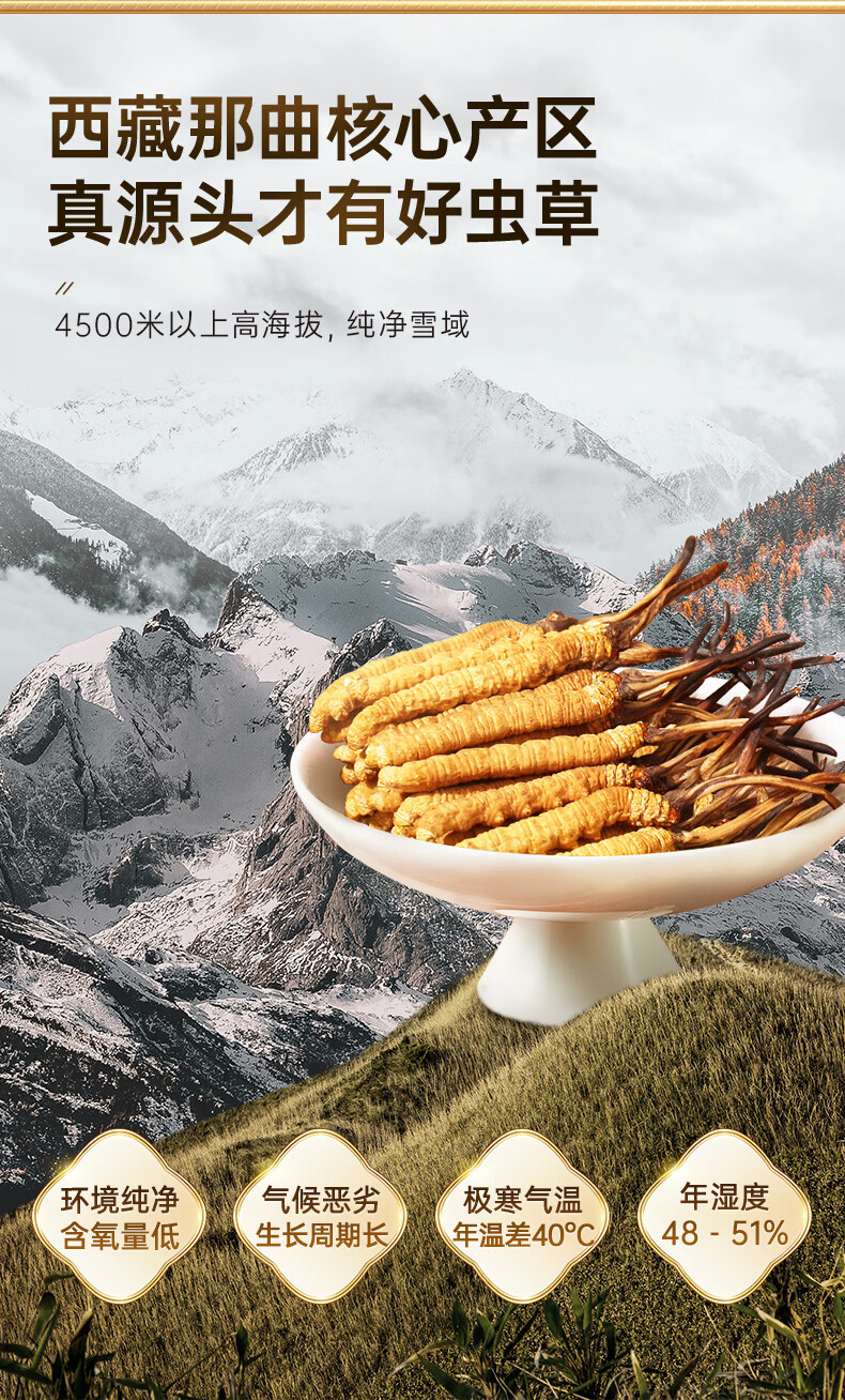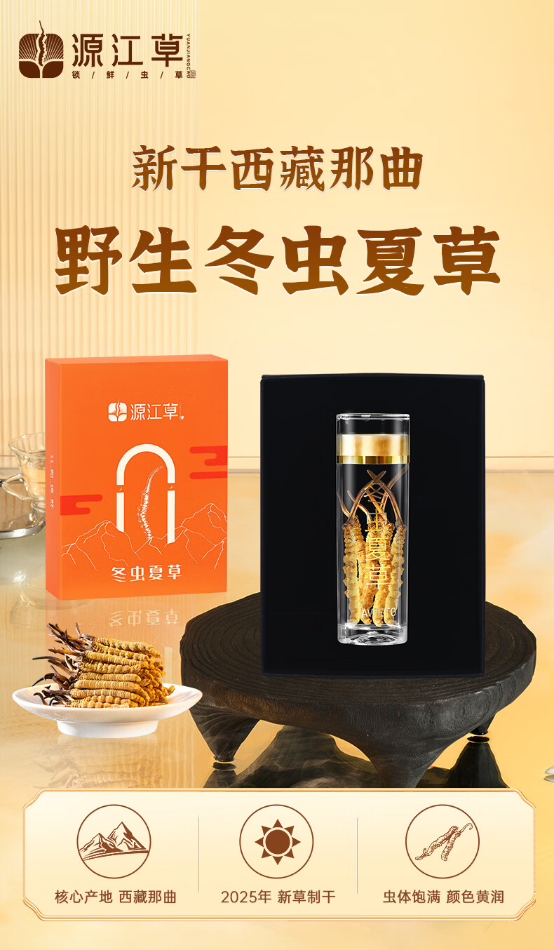 源江草冬虫夏草野生那曲虫草 5根/克 1克 西藏高海拔礼盒滋补品