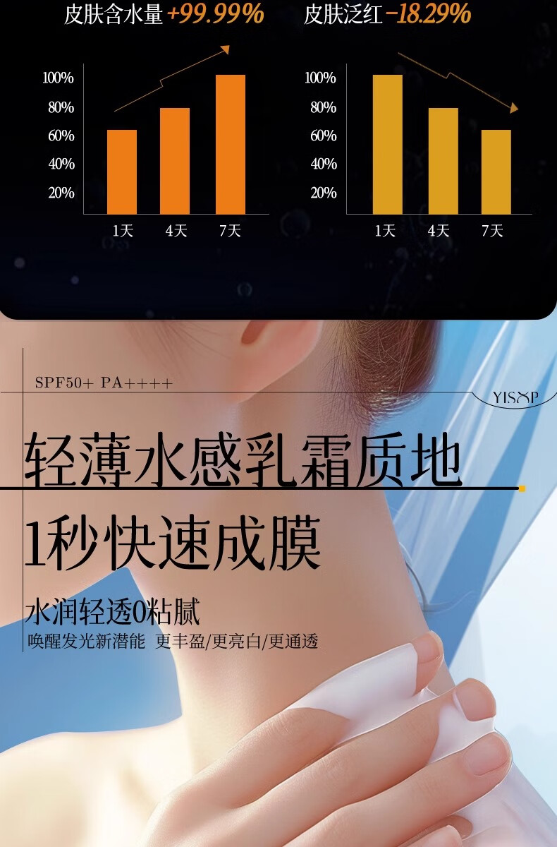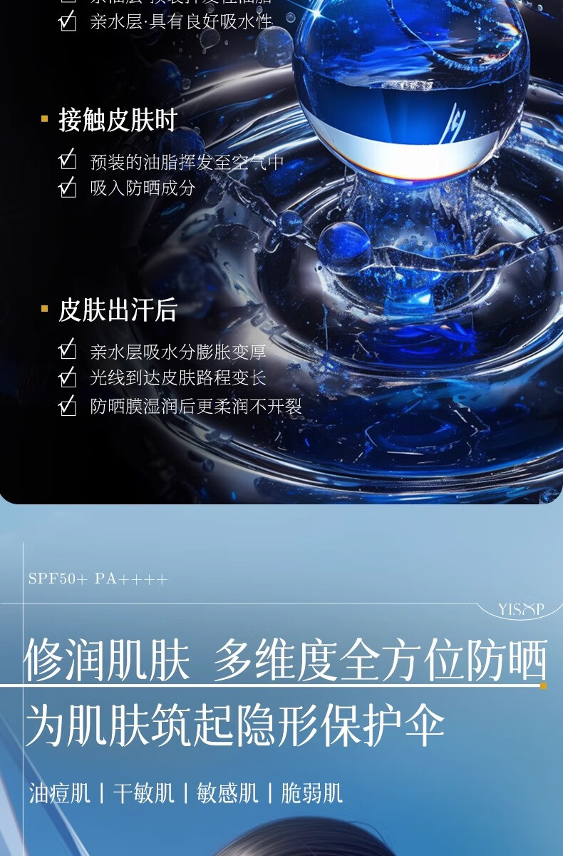 怡思丁(ISDIN)水感防晒霜隔离50ml SPF50高倍防晒霜防水防汗持久紫外线通勤礼物