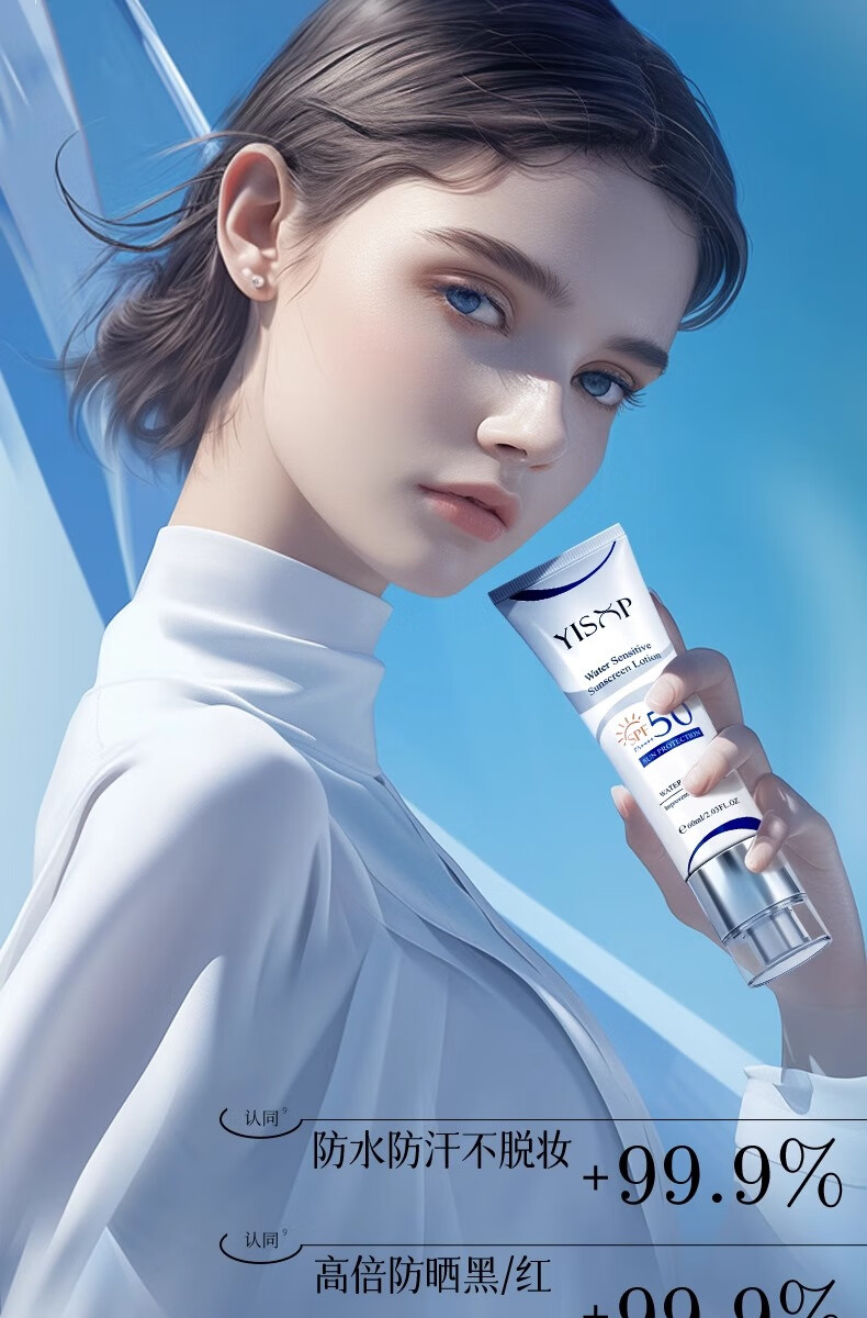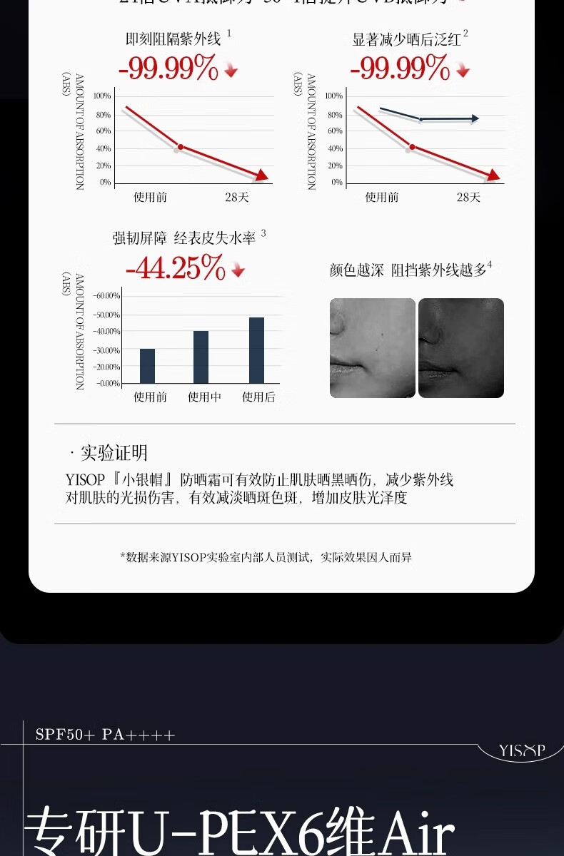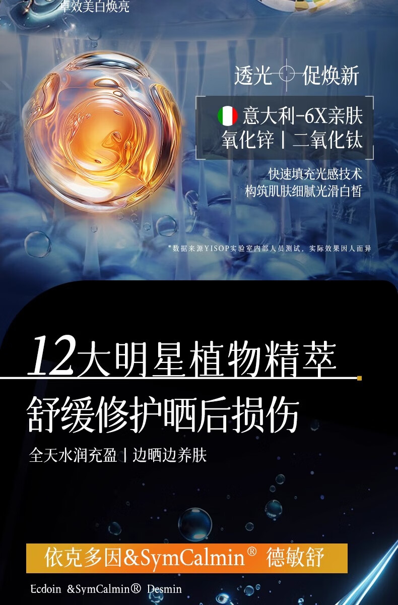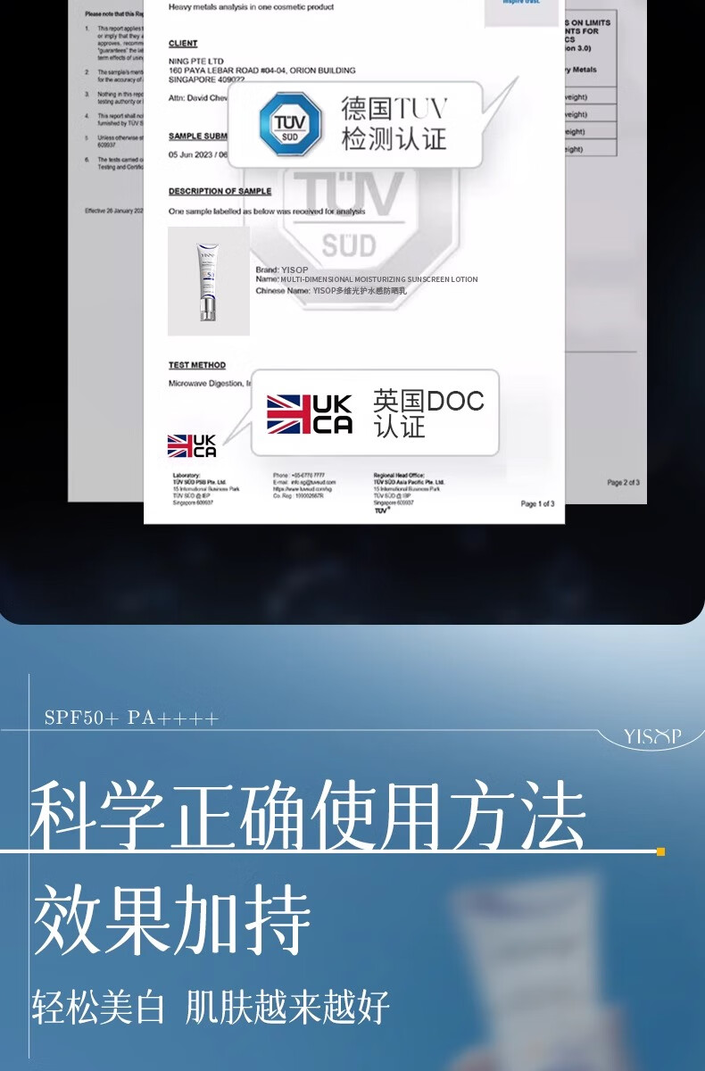 Yisop英国进口防晒霜高倍防晒美白提亮三合一防水防汗防紫外线户外女男 【第三支0元】进口美白防晒霜60g*3