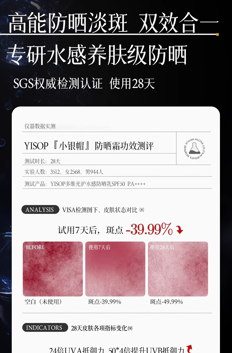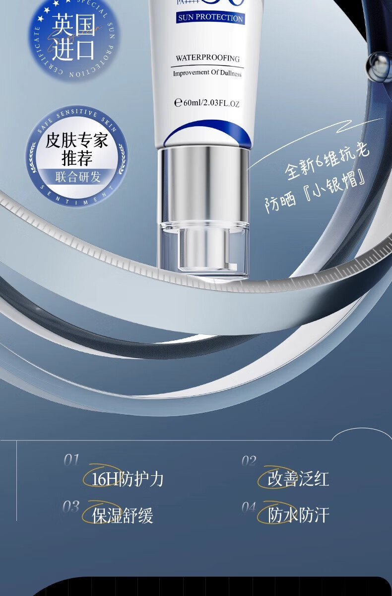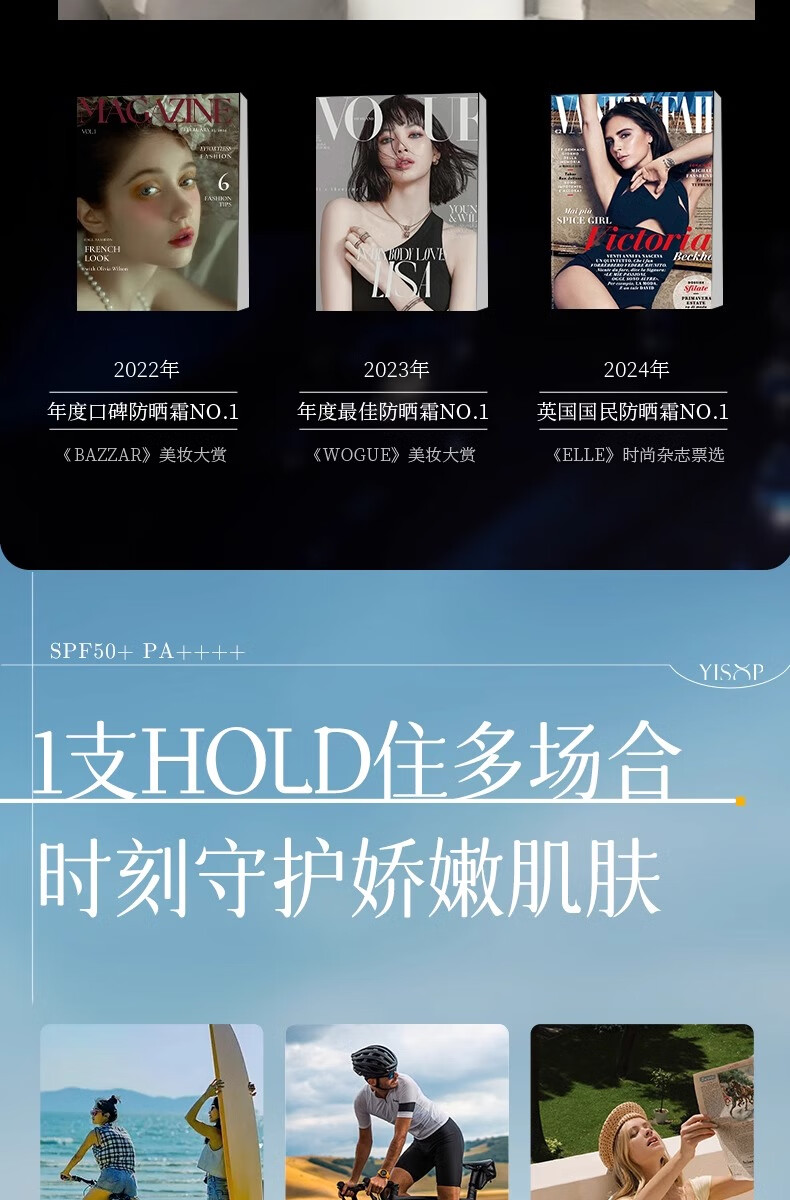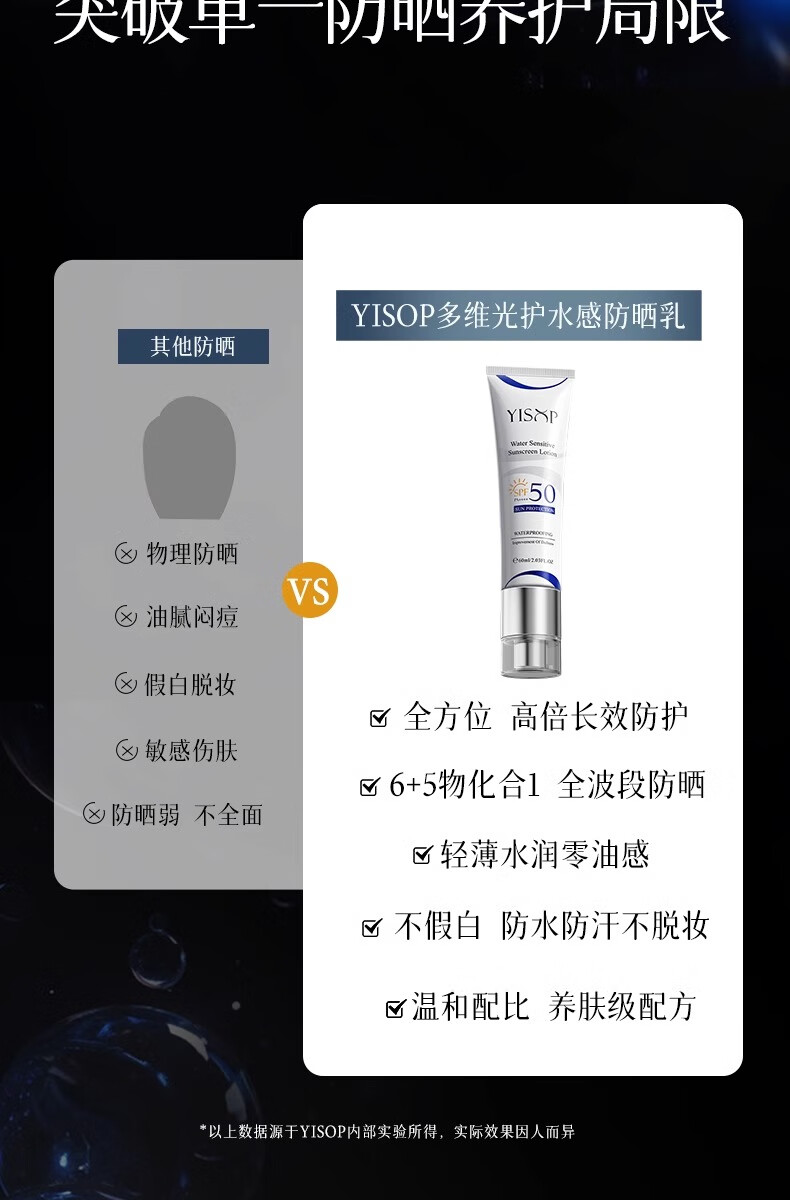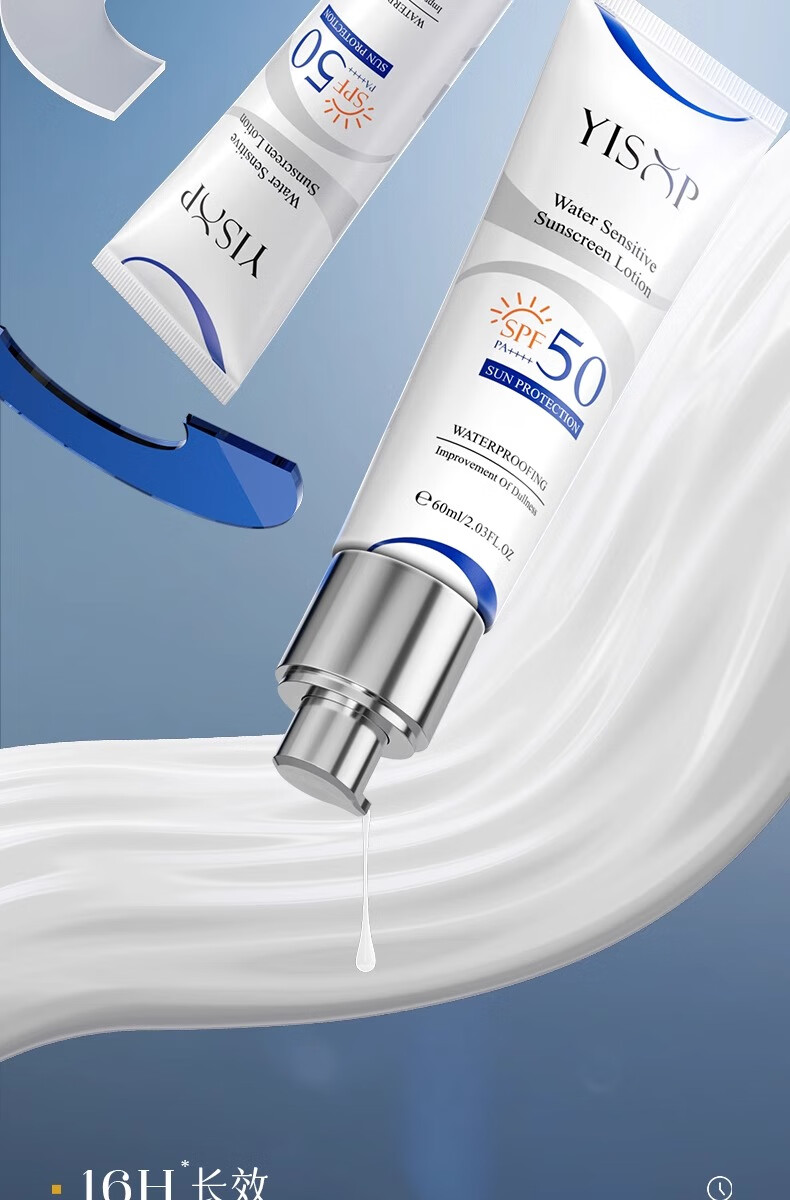 Yisop英国进口防晒霜高倍防晒美白提亮三合一防水防汗防紫外线户外女男 【第三支0元】进口美白防晒霜60g*3