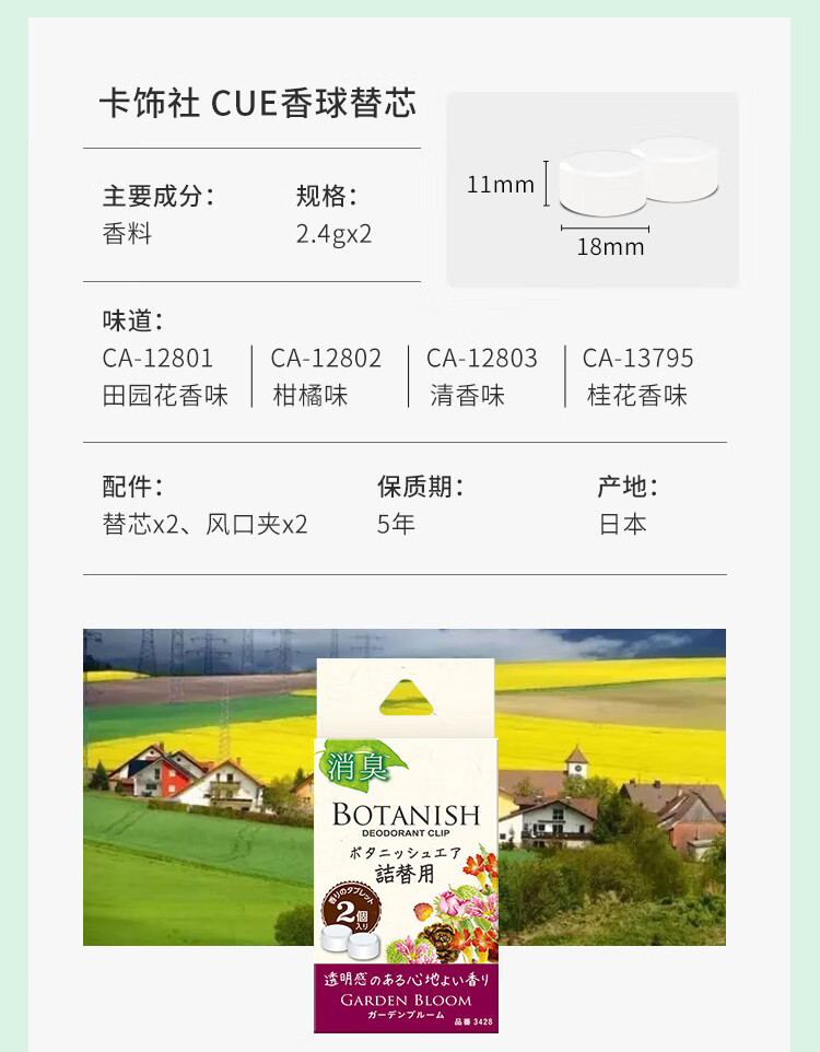 卡饰社(CarSetCity)车载香薰汽车出风口香水香氛车内除味剂装饰 cue香球替换补充装 清雅幽香味