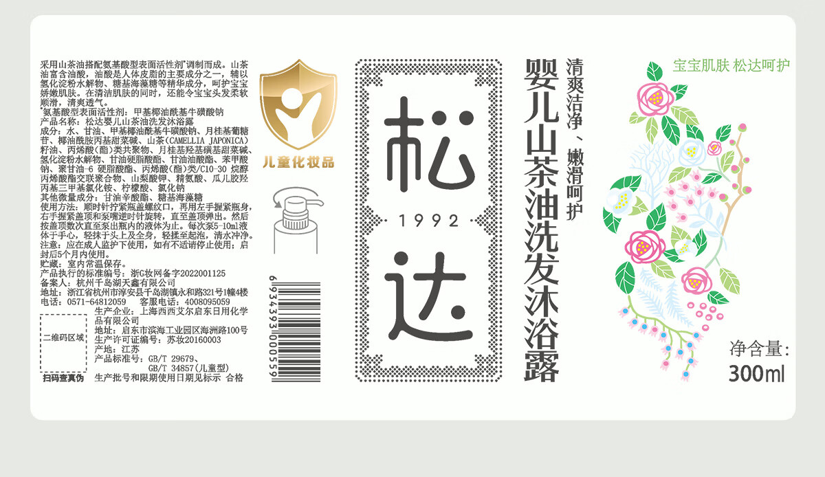 松达婴儿沐浴露洗发水二合一儿童山茶油洗发沐浴露宝宝洗澡易冲洗 【性价比首选】洗发沐浴露240ml