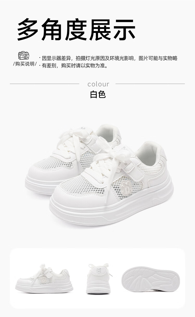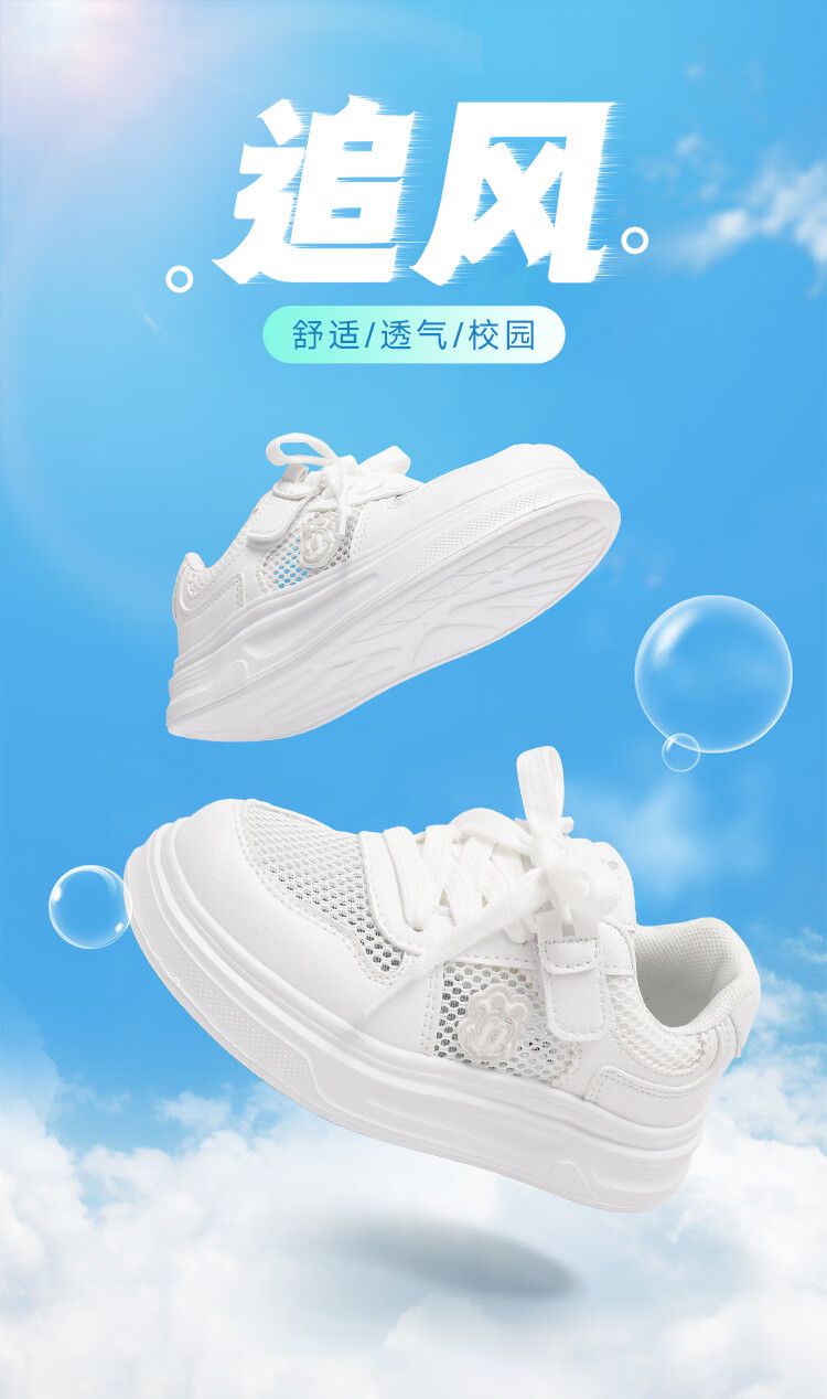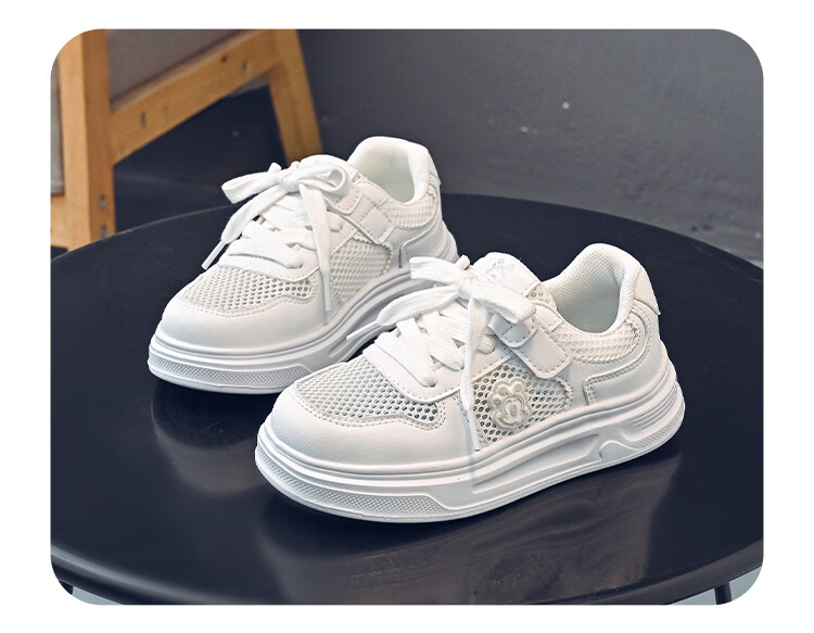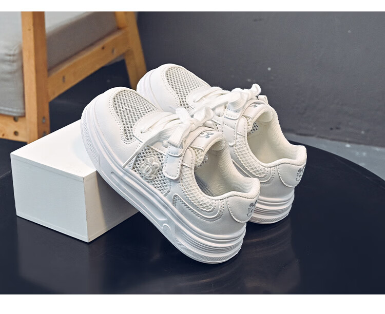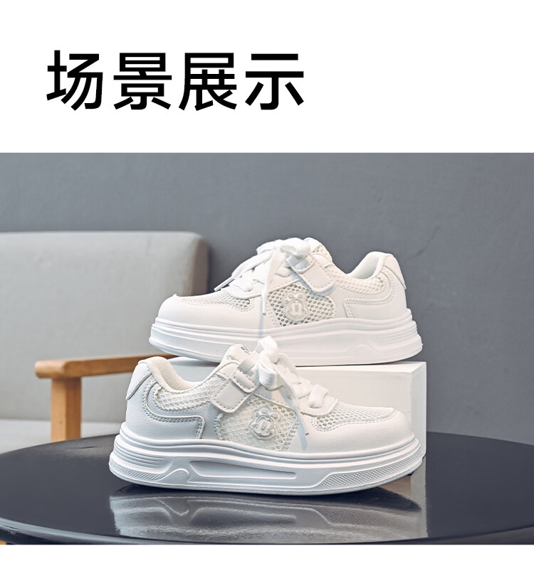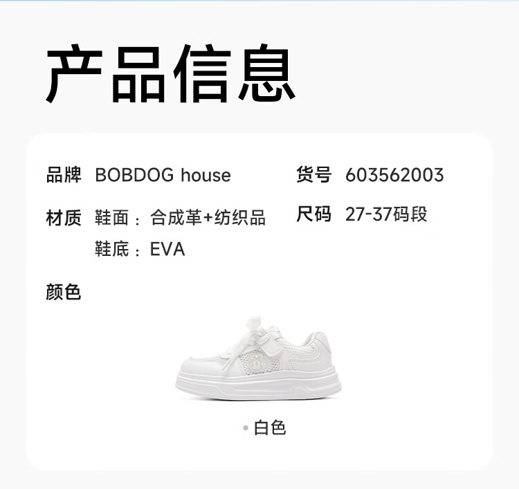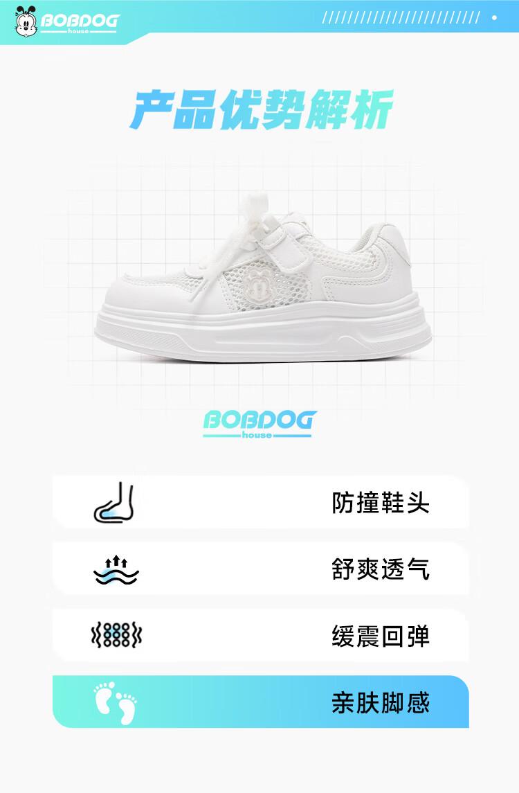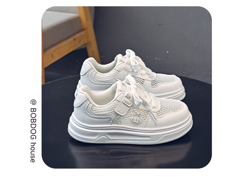 BOBDOG house童鞋2026夏季男童百搭小白鞋低帮休闲鞋网面儿童板鞋女孩跑步鞋 白色 30 适合脚长18.8cm