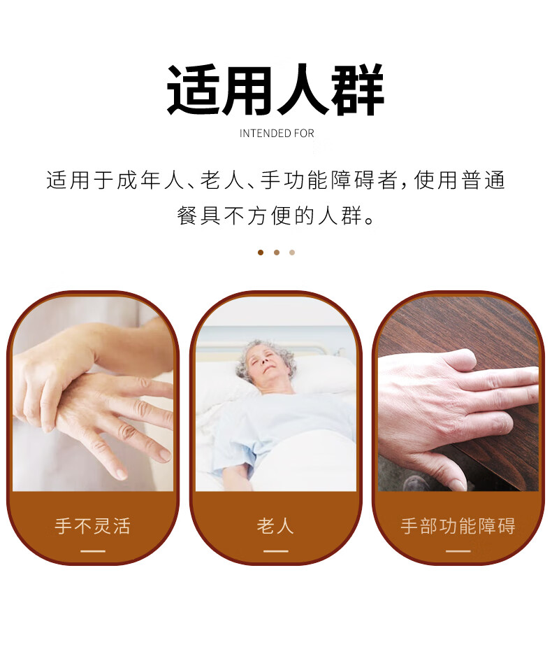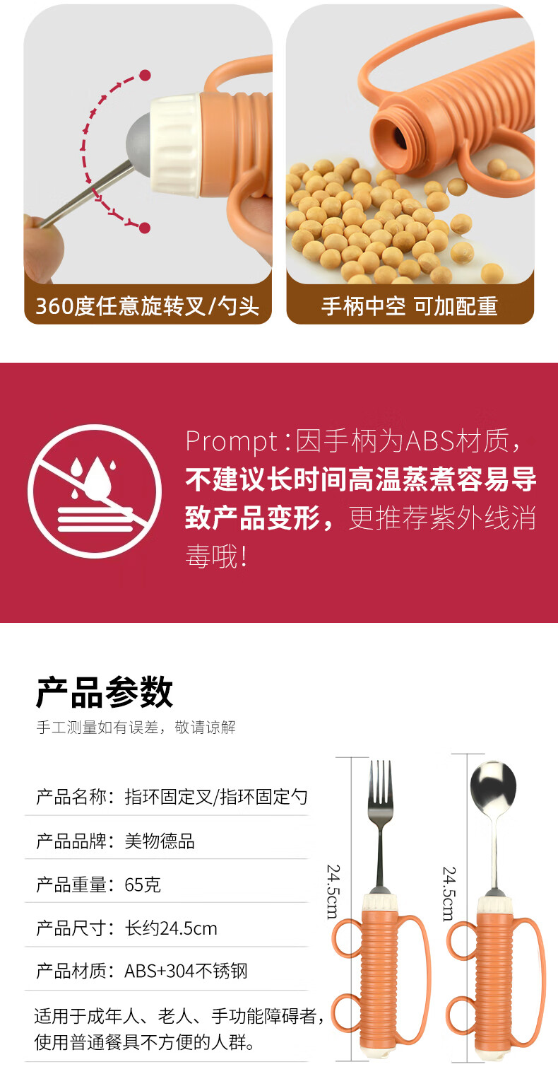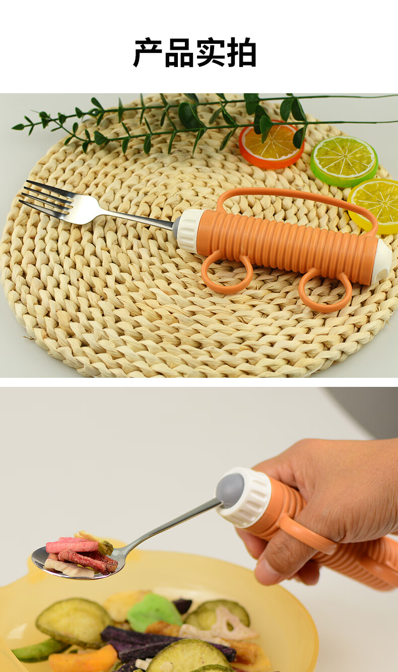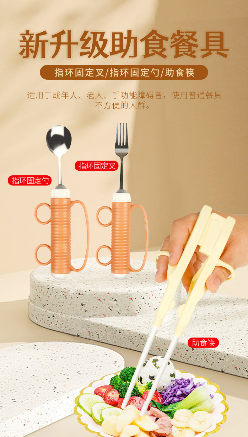 美物德品老人辅助餐具吃饭助食筷子勺子叉子手抖无力康复训练左右手通用 筷+勺+叉(简装) 1件套