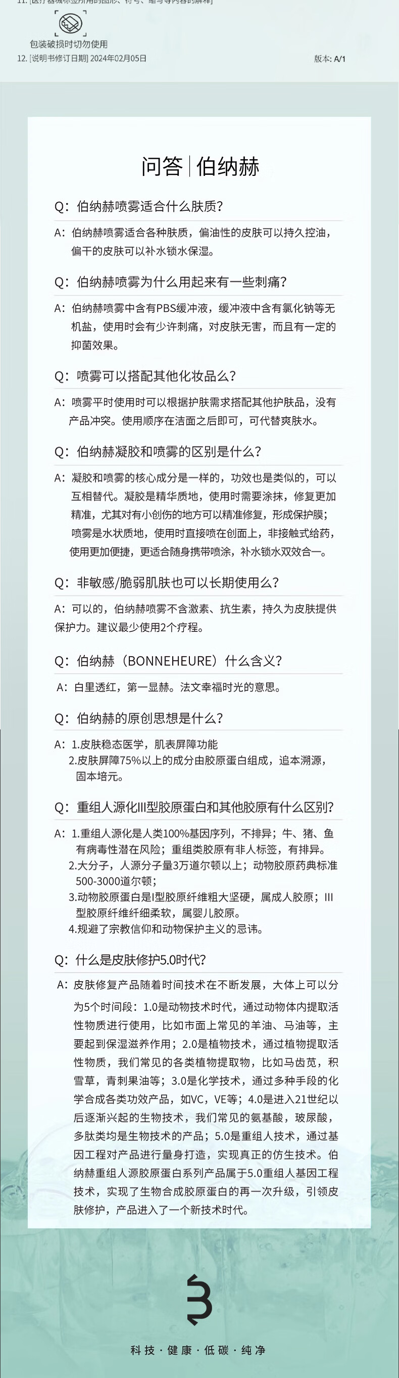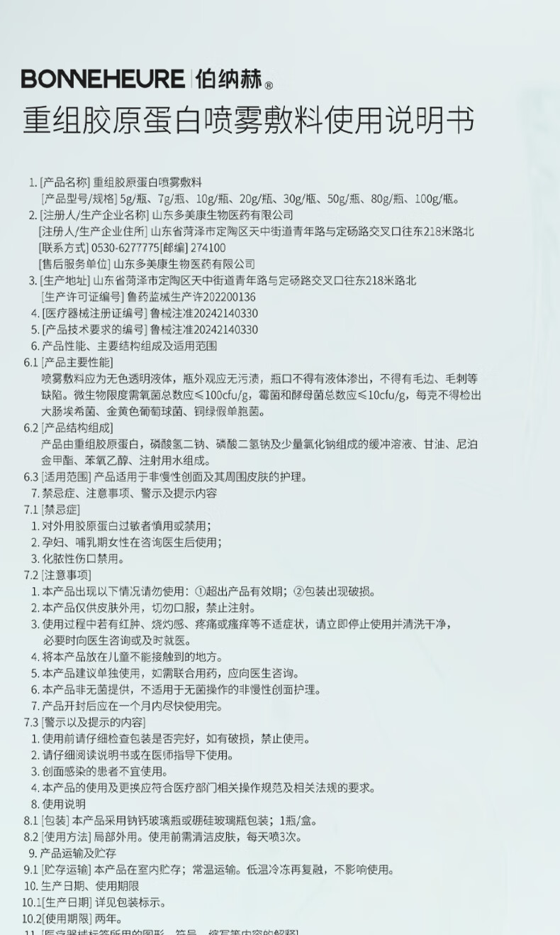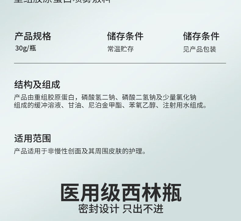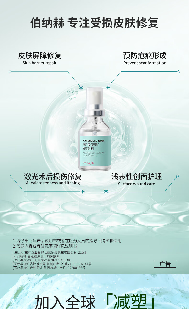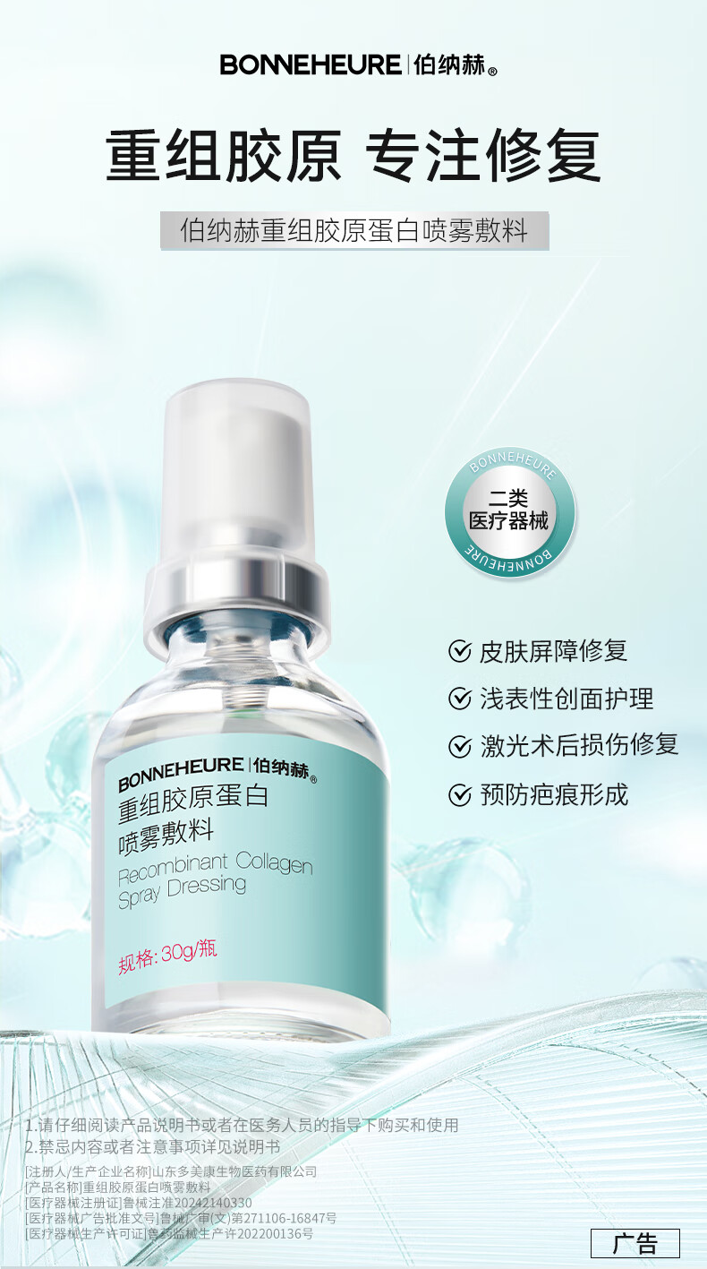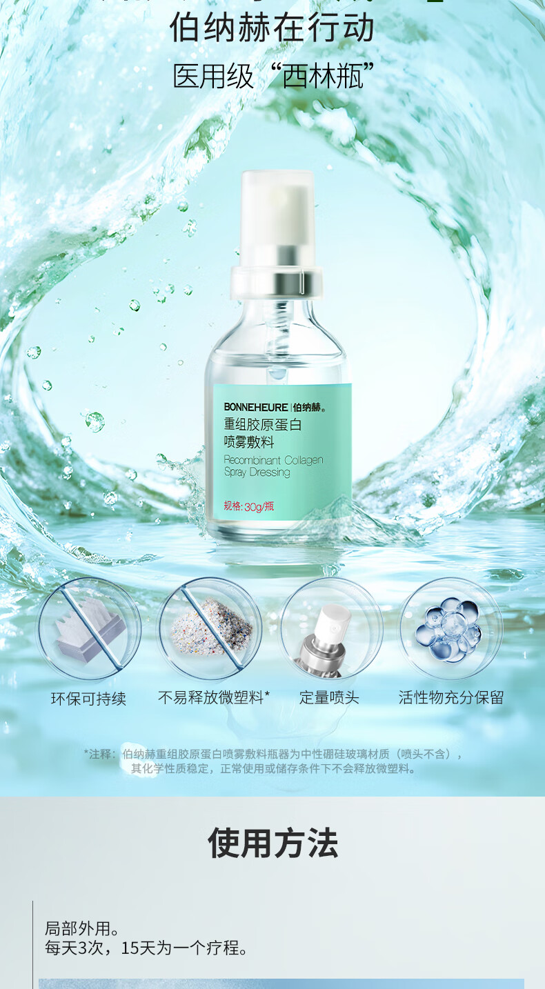 伯纳赫1068修修瓶医用重组胶原蛋白功能敷料非慢性创面及周围皮肤的护理 【胶原全新升级版】喷雾30ml