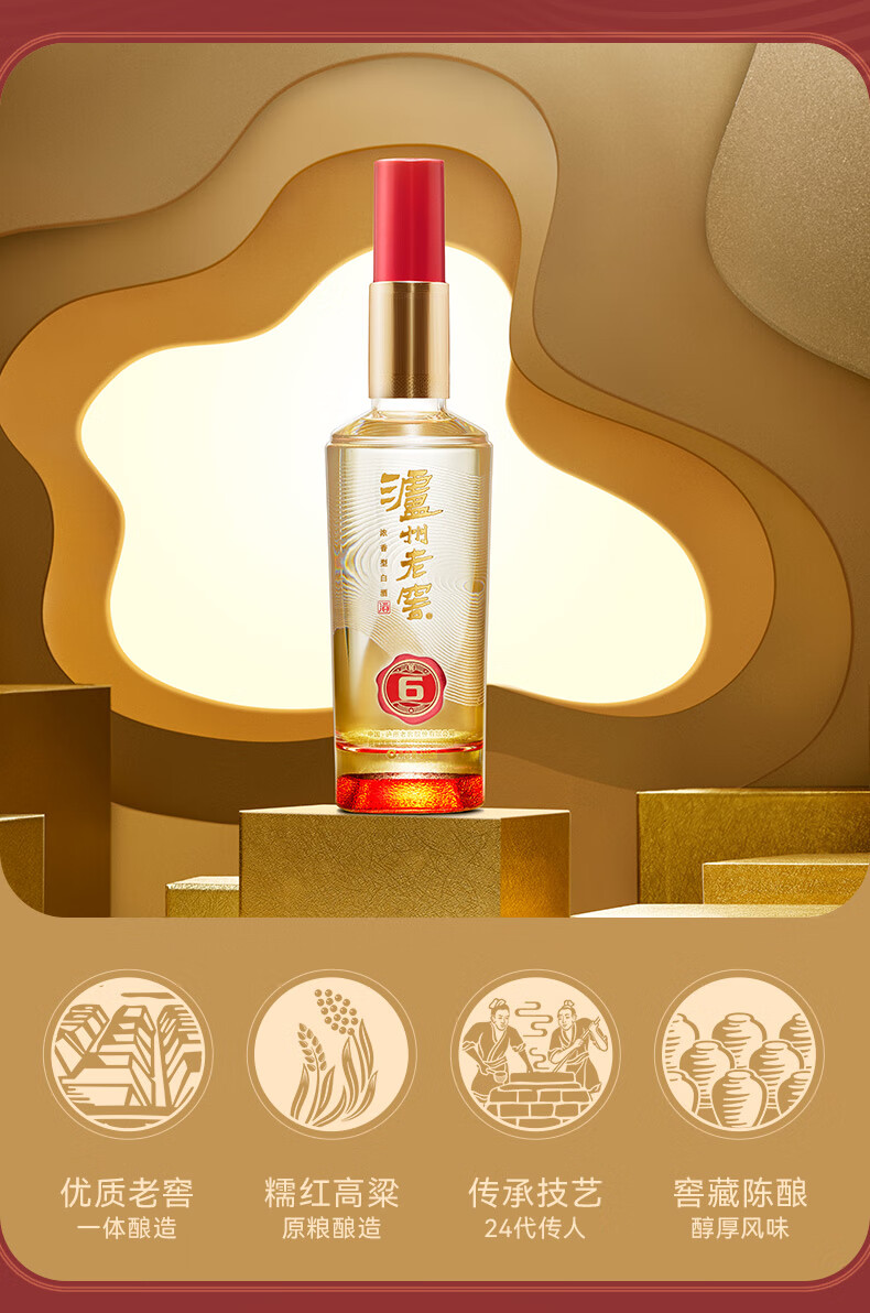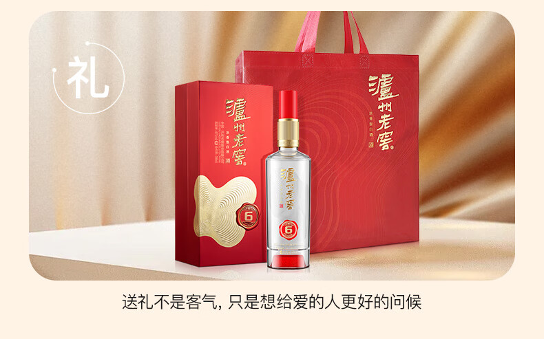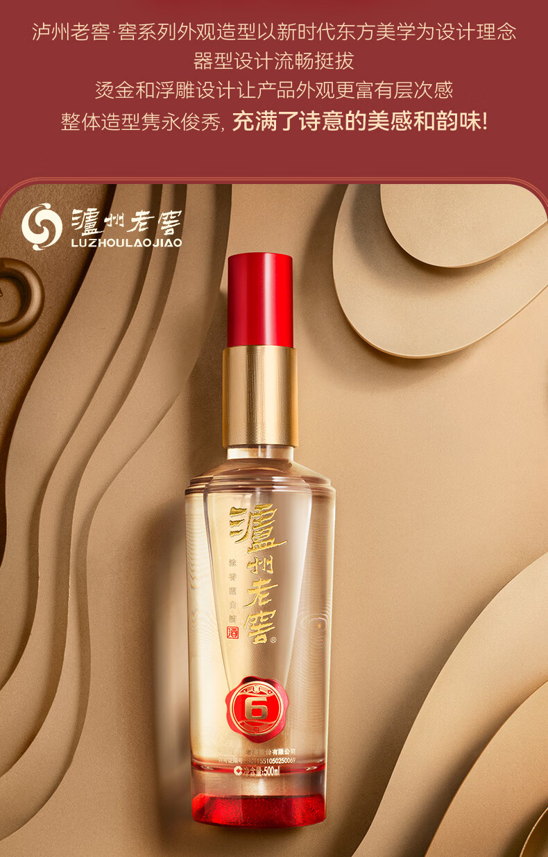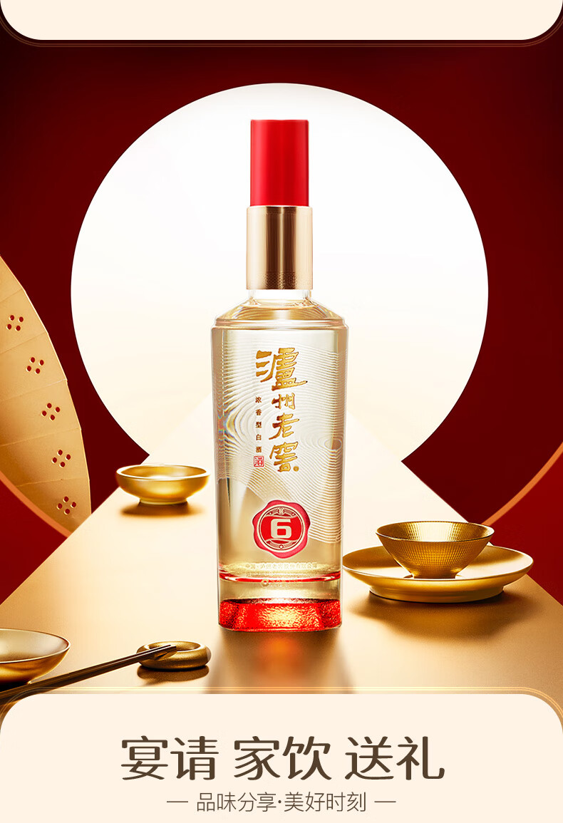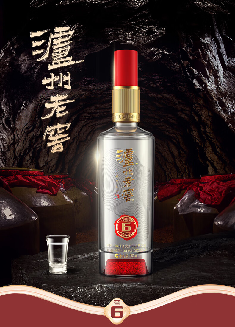 泸州老窖 窖6 窖藏陈酿老旧 浓香型白酒 38度500ml 6瓶 整箱装 (含礼袋)