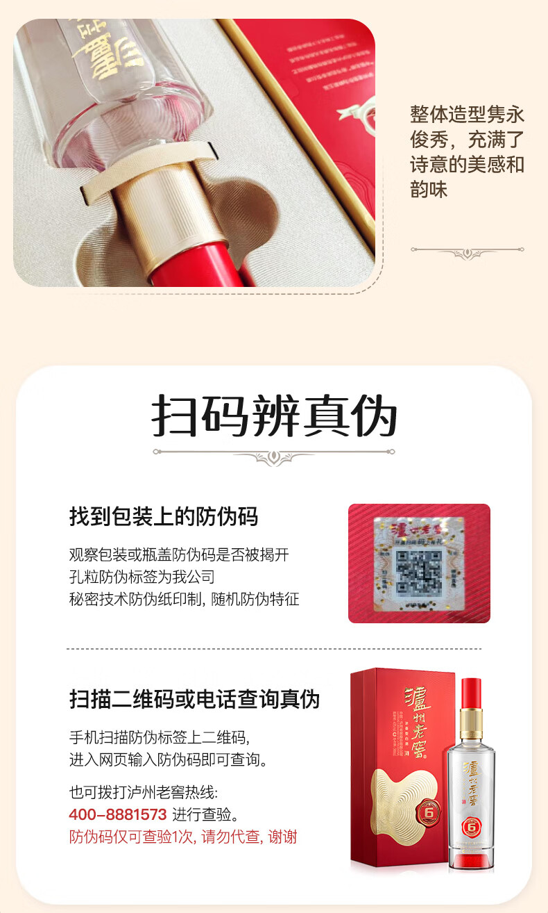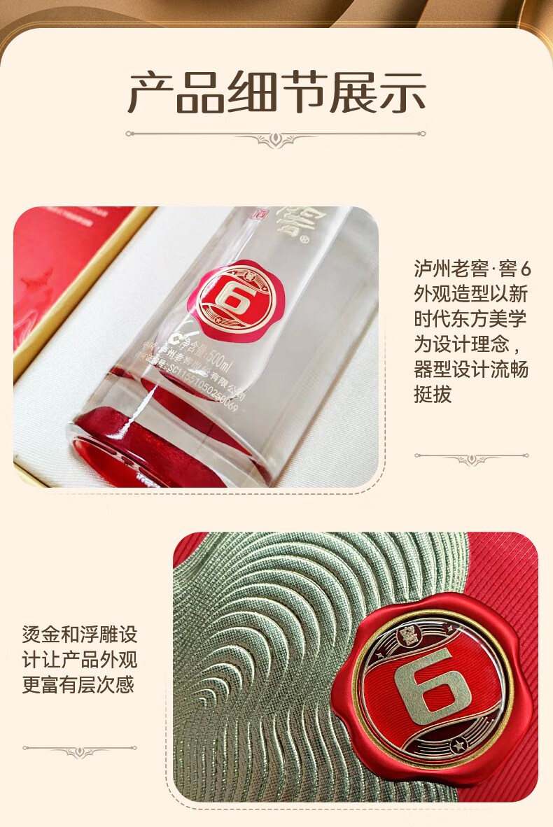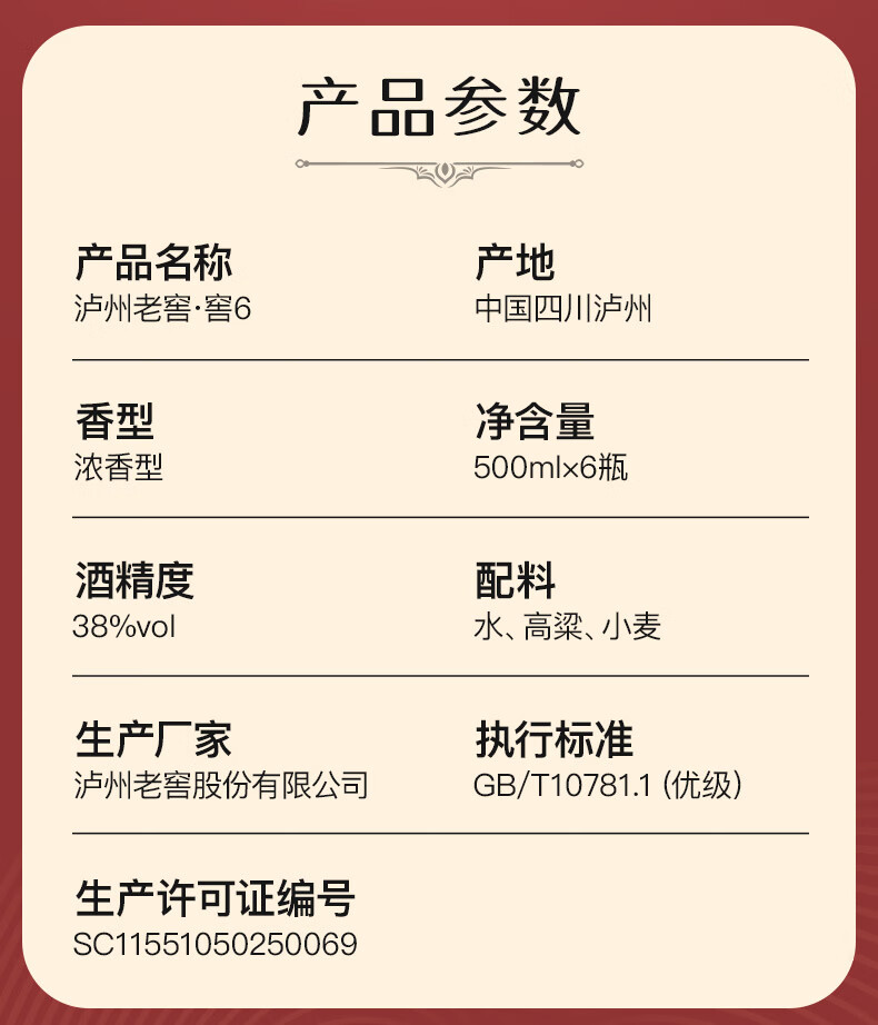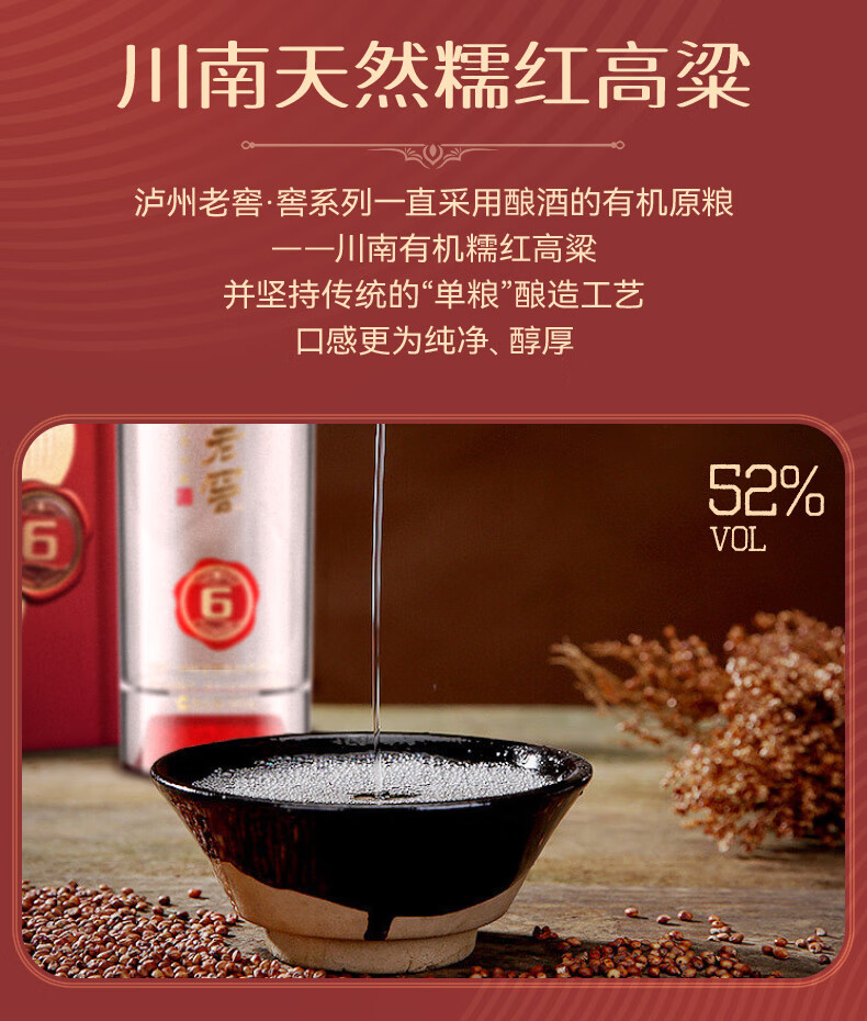 泸州老窖 窖6 窖藏陈酿老旧 浓香型白酒 38度500ml 6瓶 整箱装 (含礼袋)