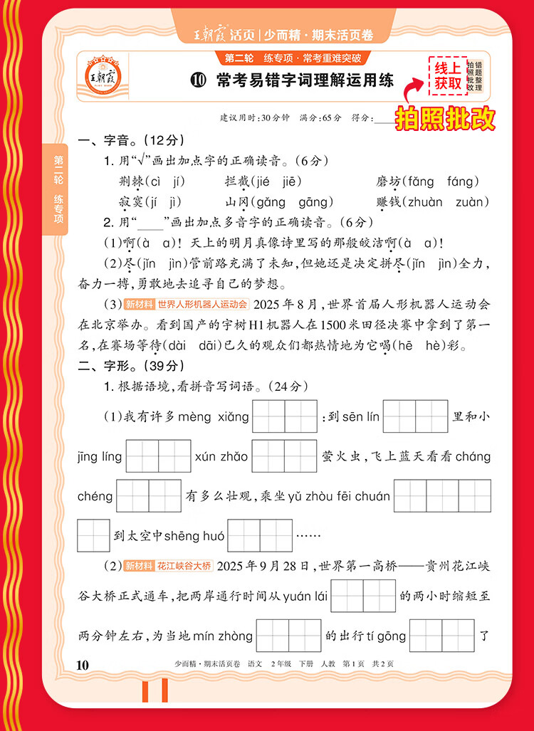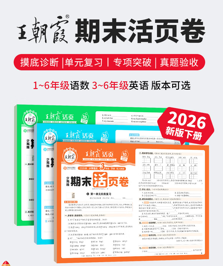 王朝霞2026春季新版下册一二三四五六年级王朝霞期末活页试卷真题卷各地期末试卷活页卷好题黄冈小状元达标卷期末冲刺100分AB卷2025上册 语文+数学(苏教版)2本套装 六年级2026下册