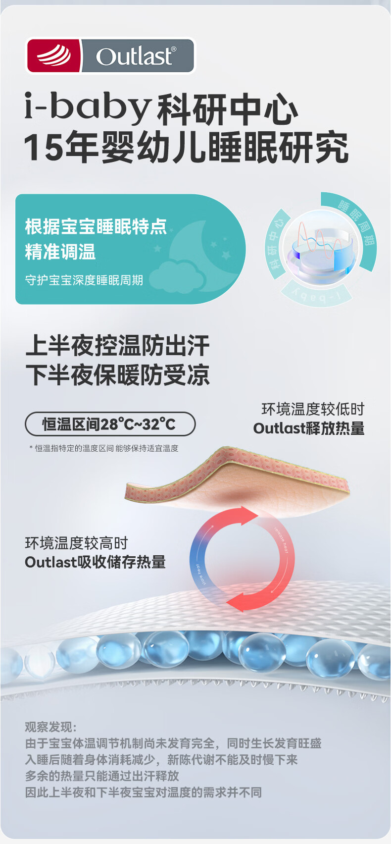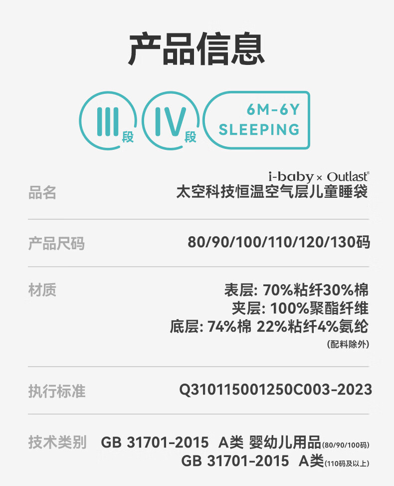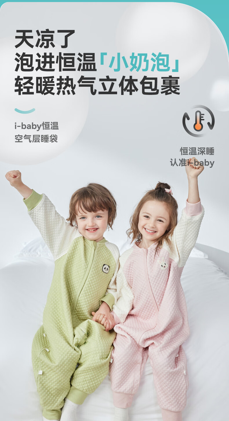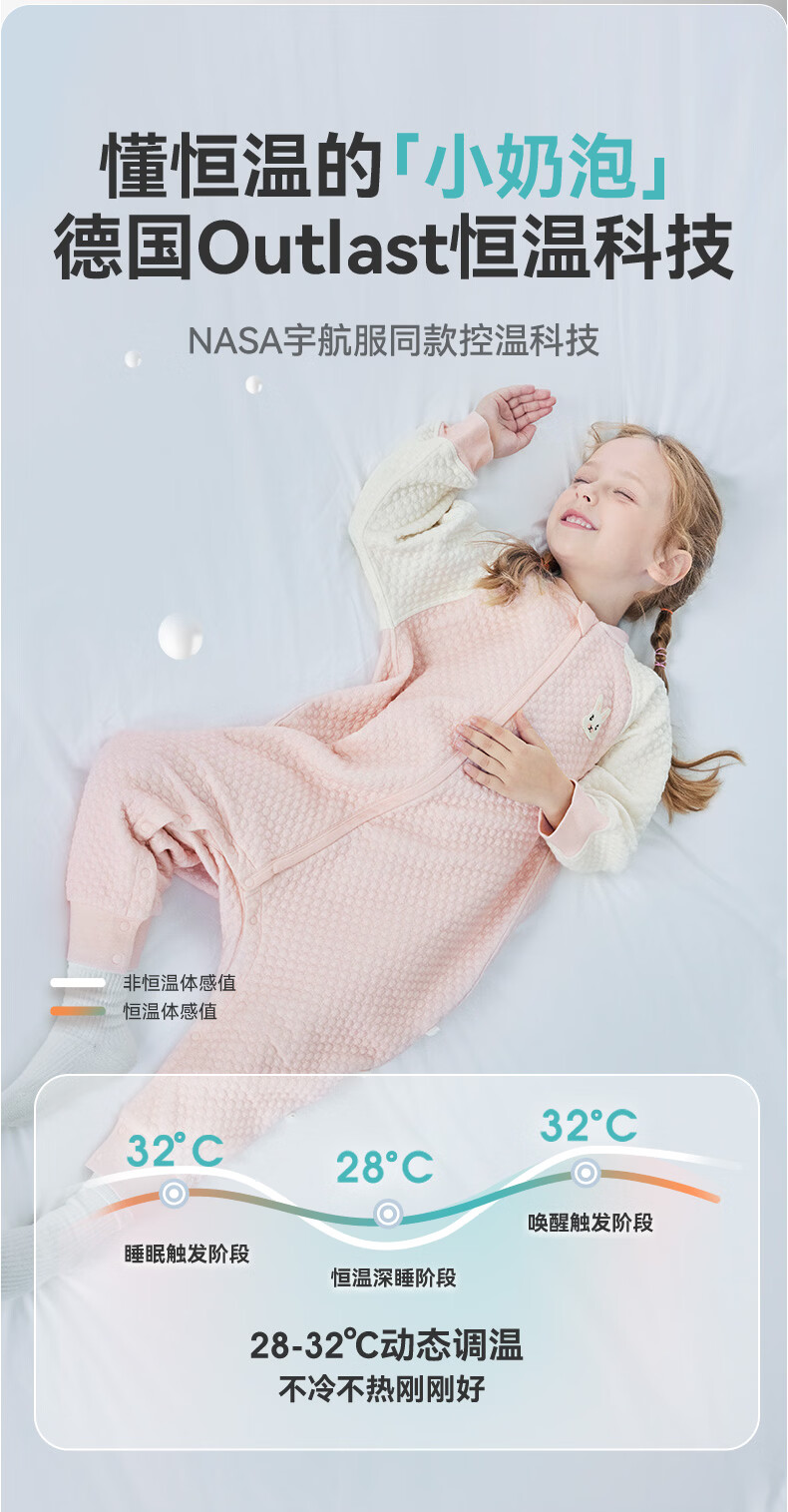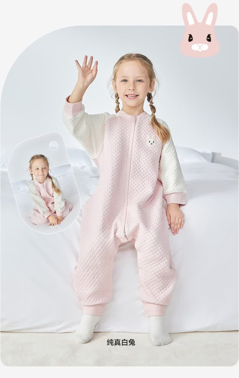 ibaby×outlast太空科技恒温空气层儿童睡袋婴儿防踢被宝宝亲肤睡衣 纯真白兔 【130码】推荐身高120-130cm