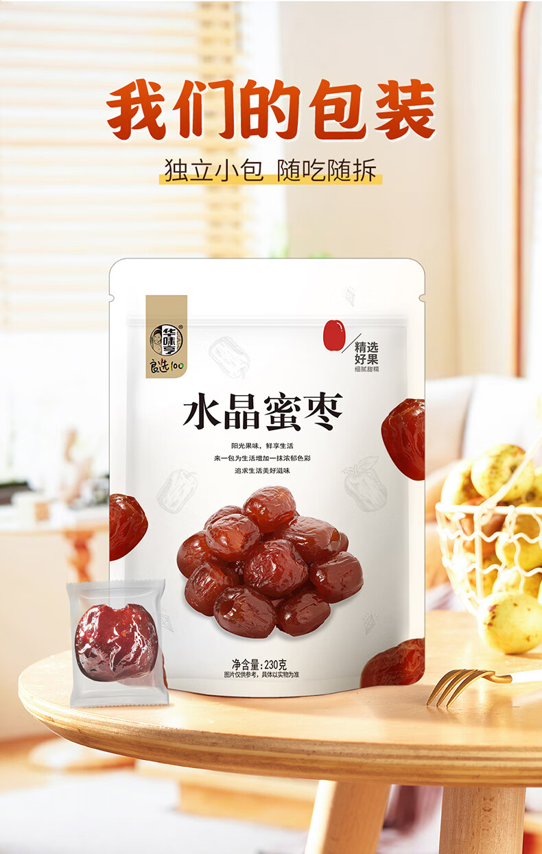 华味亨水晶蜜枣230g 无核阿胶枣独立包装去核红枣孕妇蜜饯果干休闲零食 230g水晶蜜枣*3袋