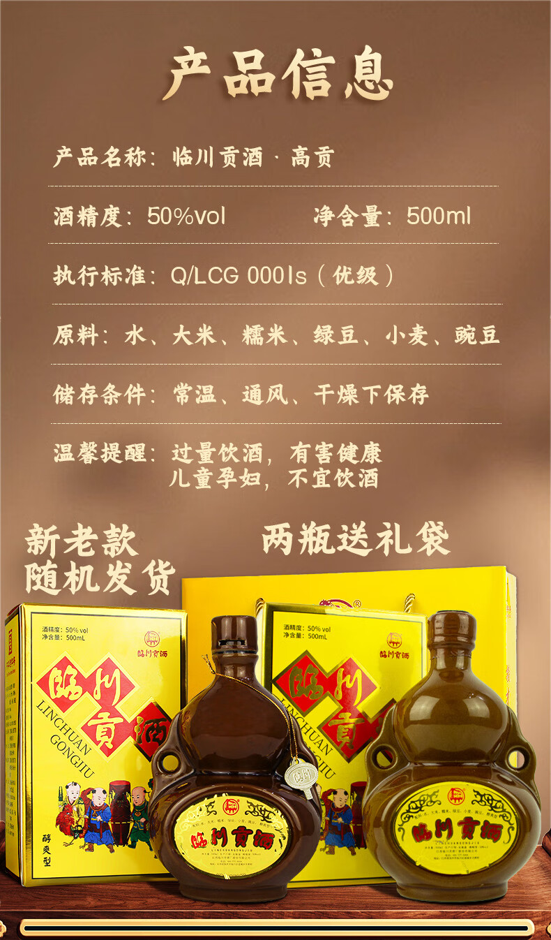 临川贡酒高贡50度经典葫芦甁 浓香型白酒纯粮食酒 江西特产老酒口粮酒 50%vol 3000mL 6瓶 【原箱装-重温经典款】