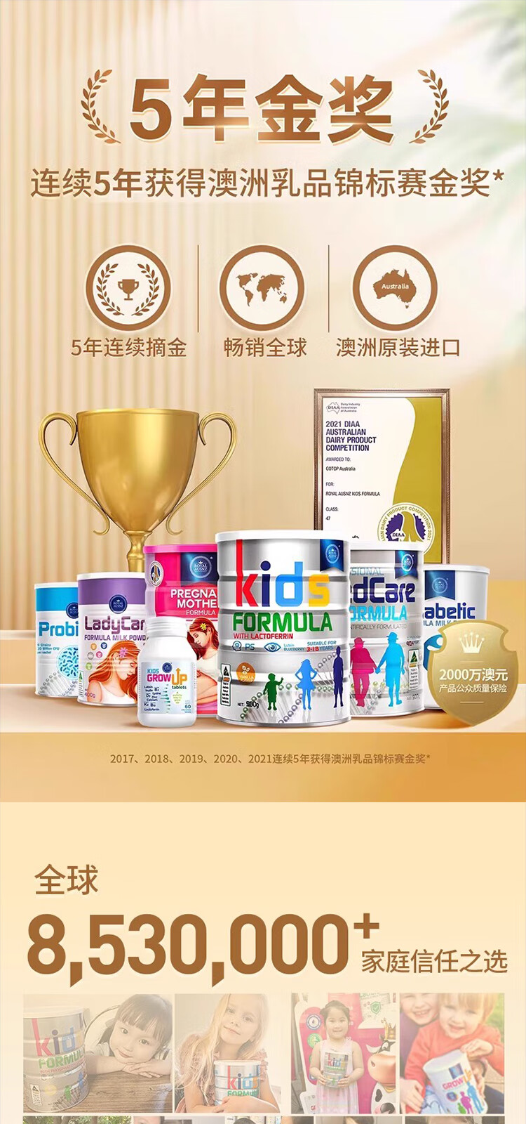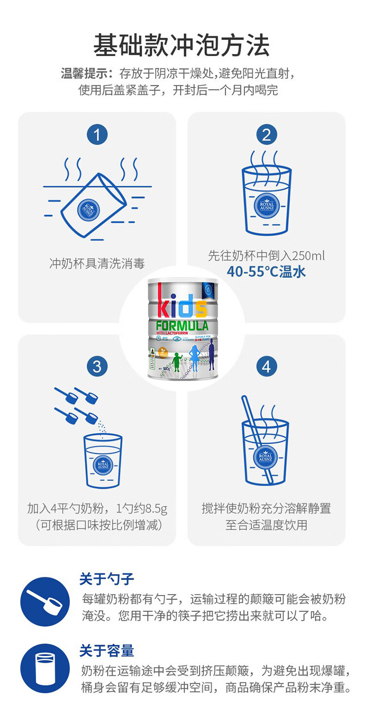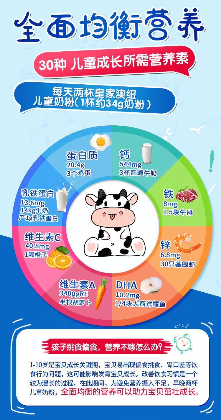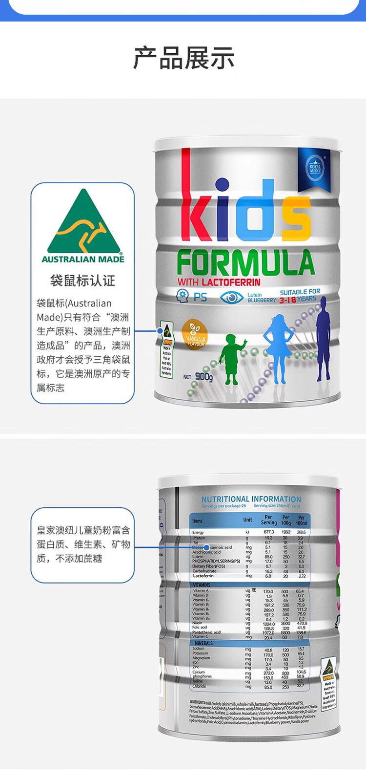 ROYAL AUSNZ皇家澳纽儿童高钙牛奶粉3-6-15岁4段乳铁蛋白长高护眼学生补钙 【尝鲜装】儿童奶粉900g*1罐