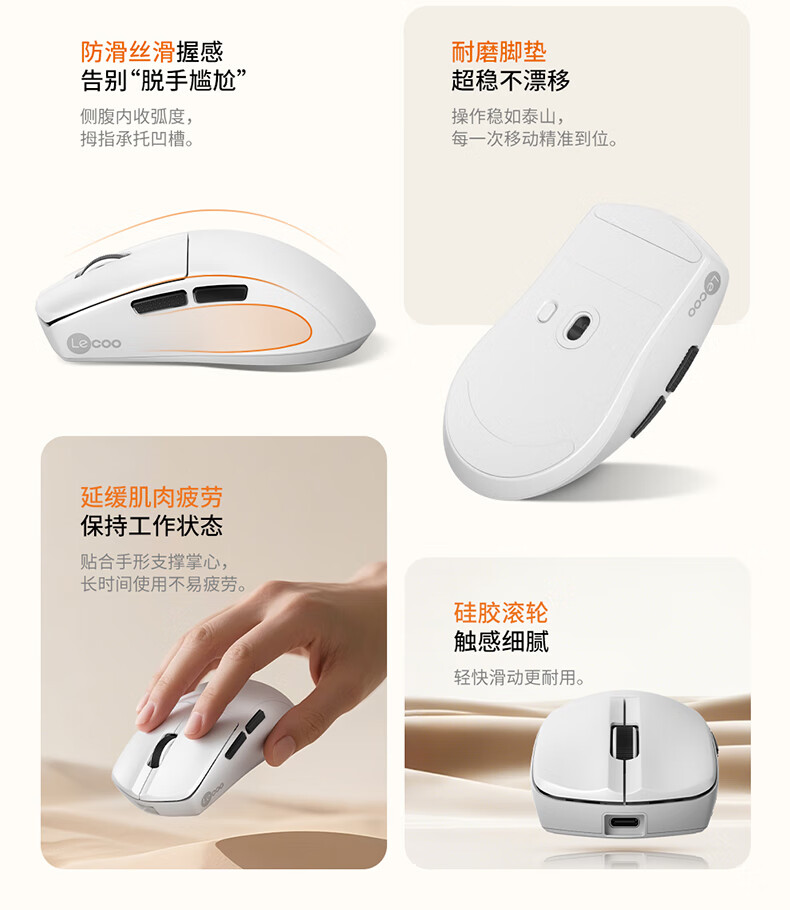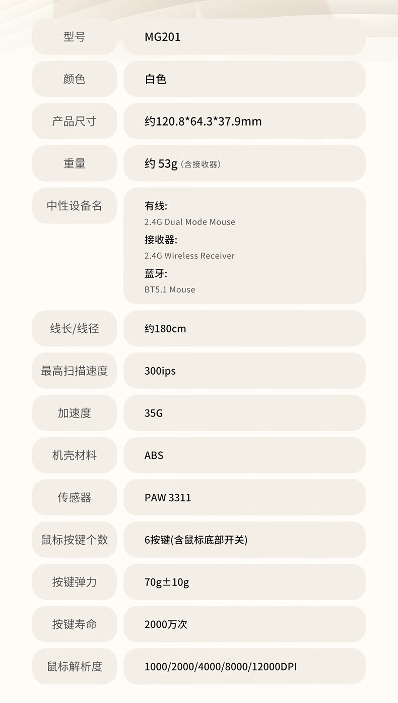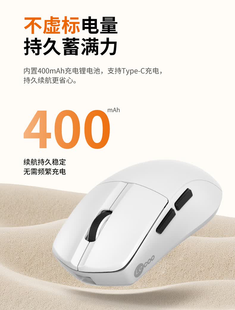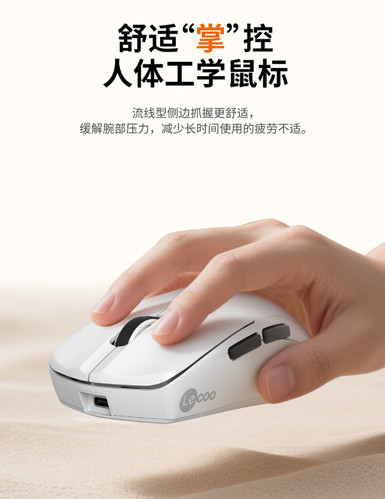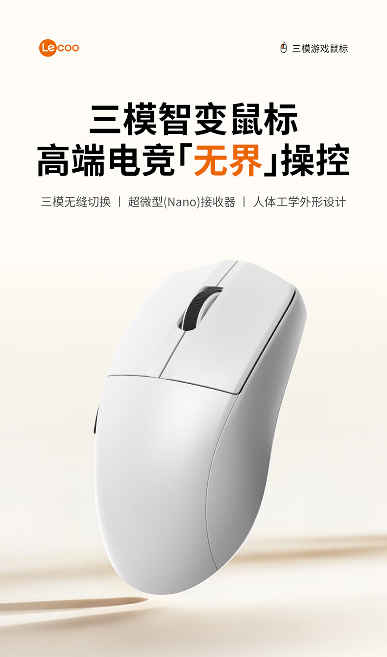 联想(Lenovo)来酷MG201无线蓝牙有线三模鼠标 轻量化电竞游戏鼠标 400mHA电池长时间续航电脑办公鼠标 白色