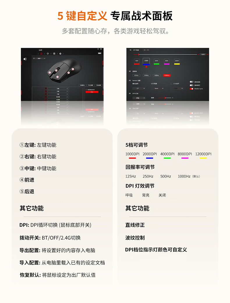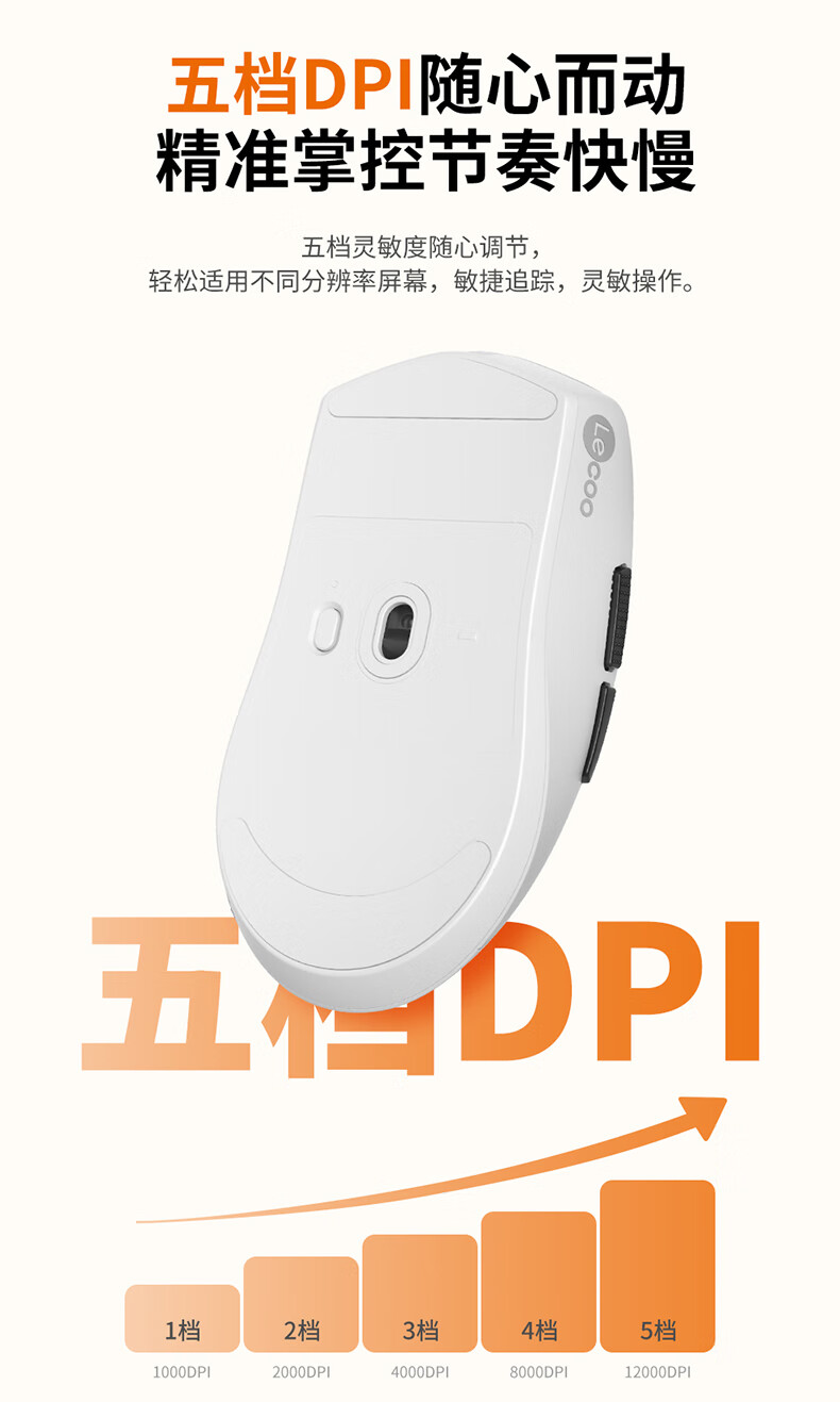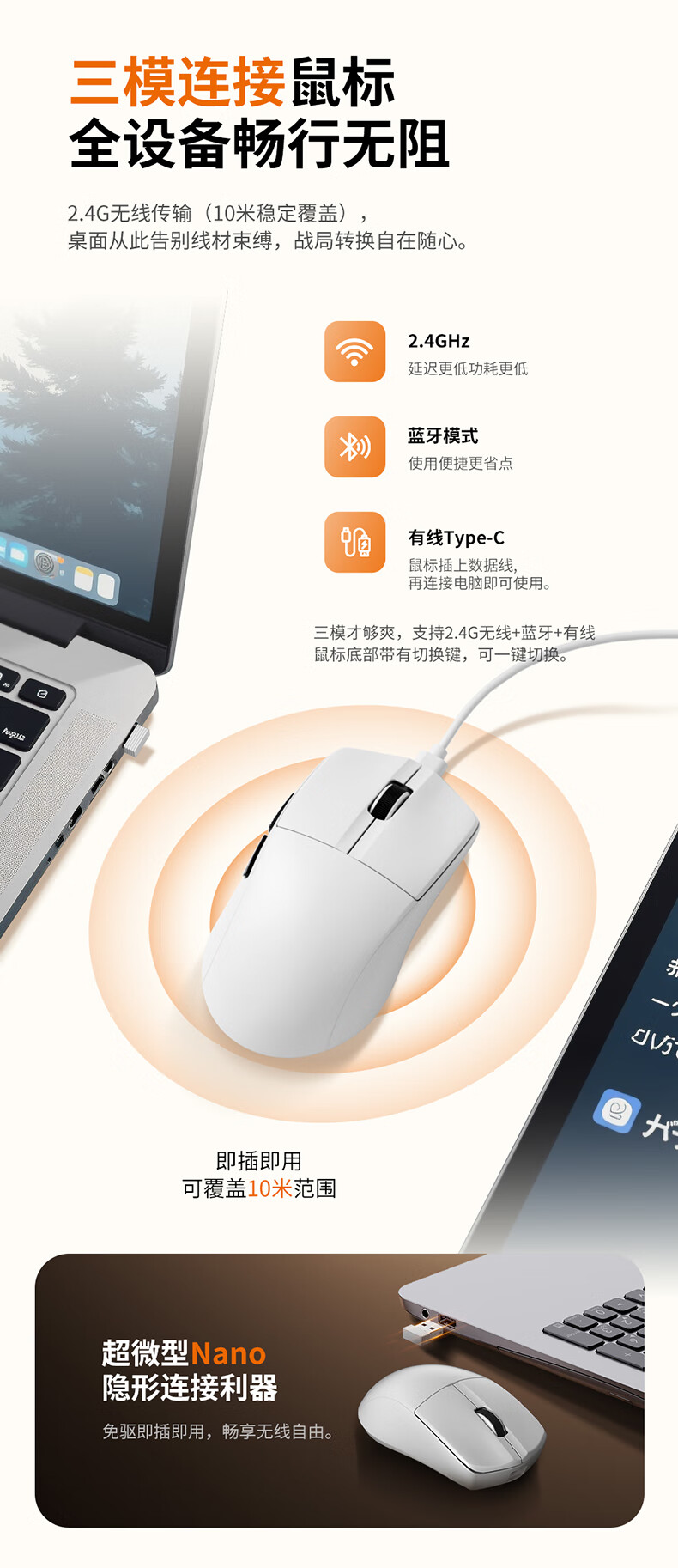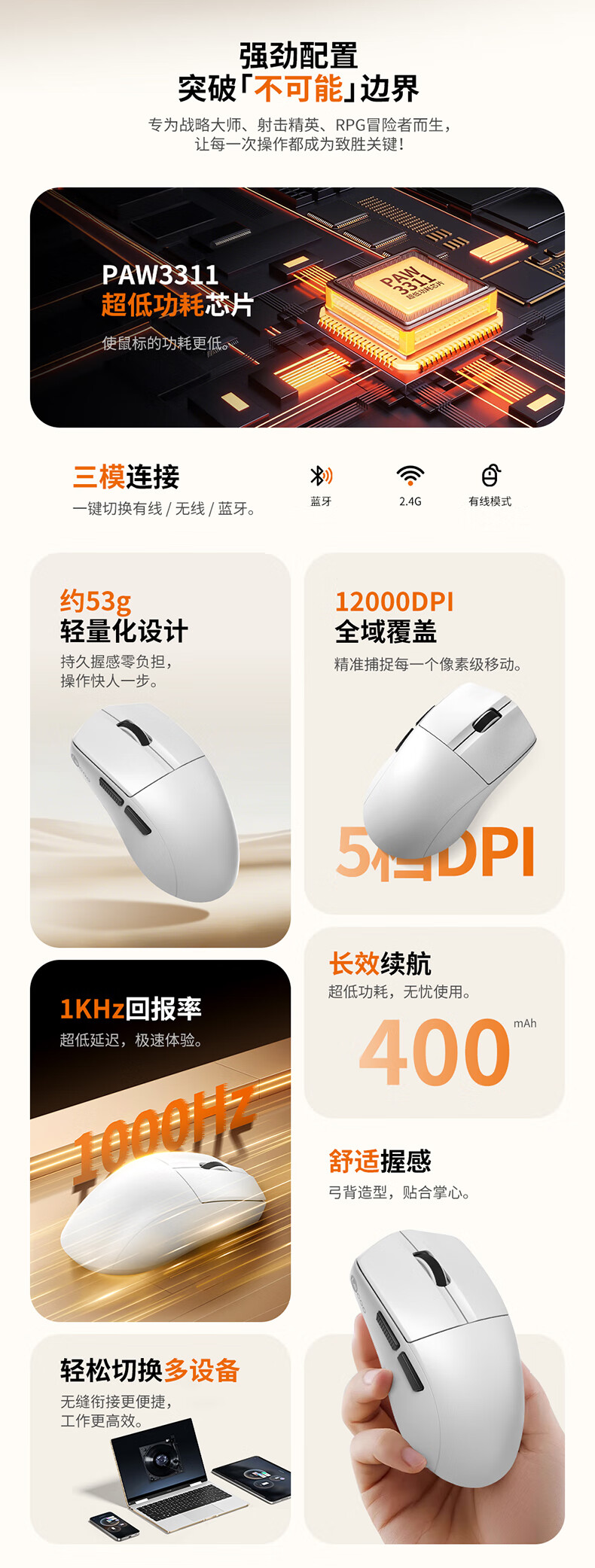 联想(Lenovo)来酷MG201无线蓝牙有线三模鼠标 轻量化电竞游戏鼠标 400mHA电池长时间续航电脑办公鼠标 白色