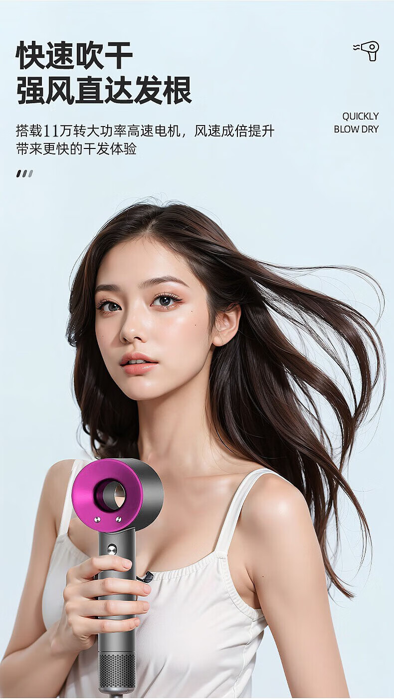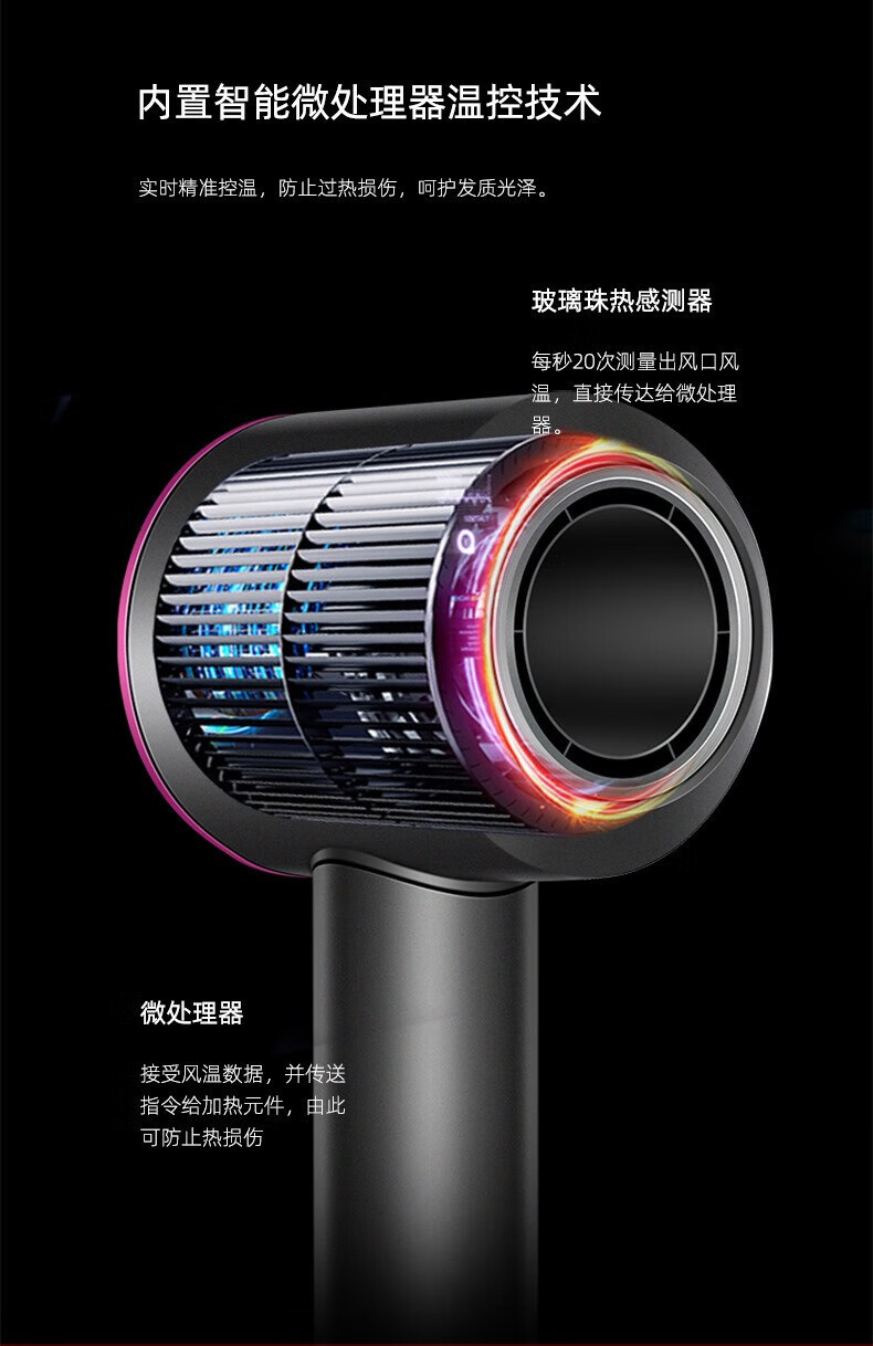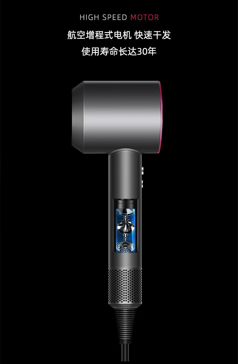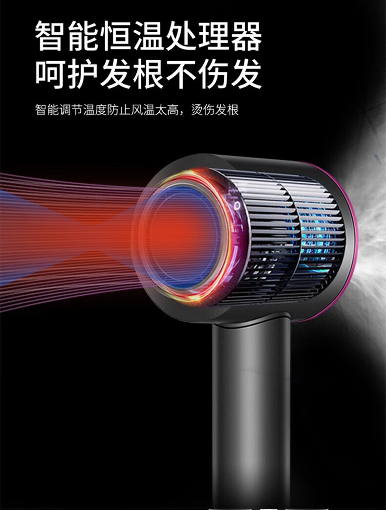 【华强北同款顶配版】高速无叶吹风机静音负离子不伤发大风力恒温护发电吹风机 电吹风筒 冷热风 落日玫瑰【送挂架+磁吸风嘴1个】 【1.7米】水润护发负离子|超顺滑