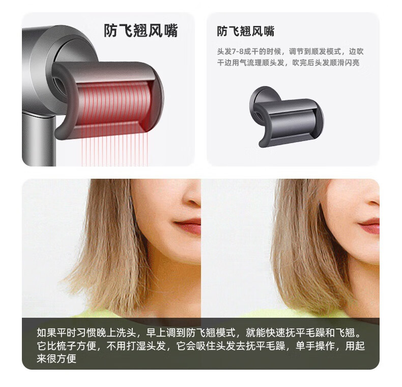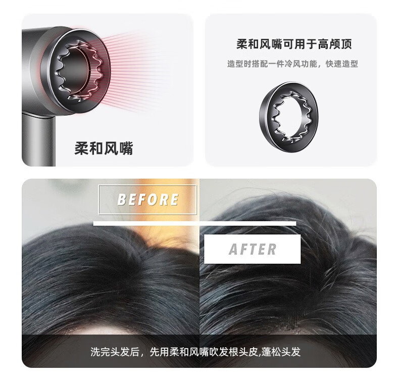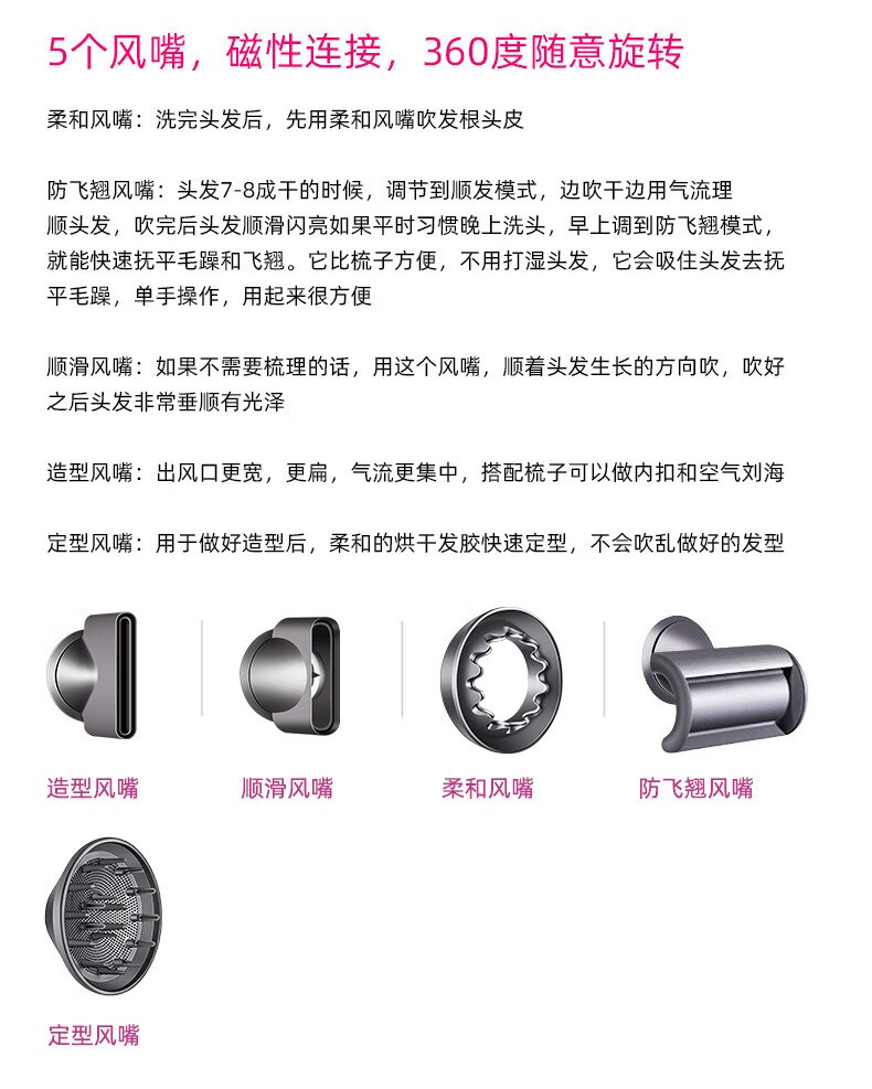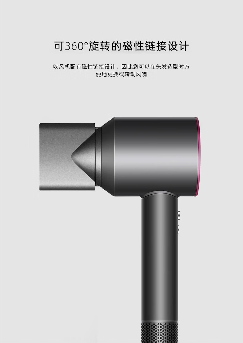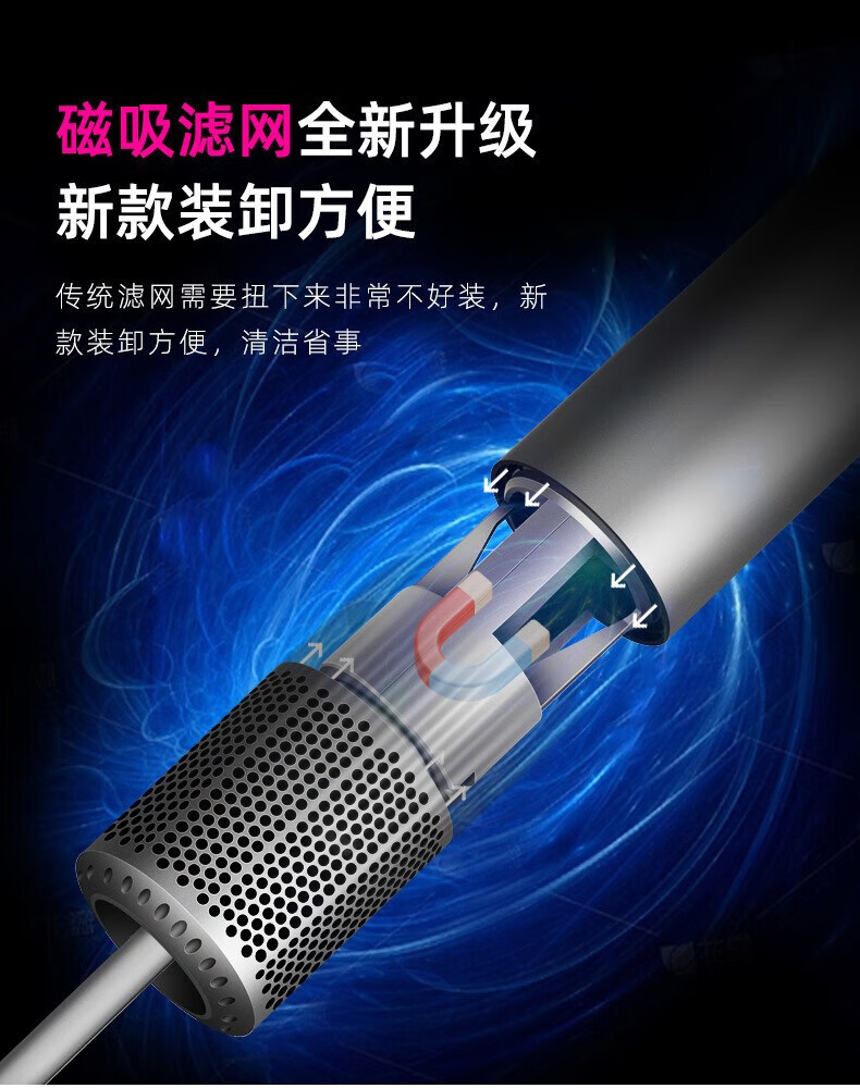 【华强北同款顶配版】高速无叶吹风机静音负离子不伤发大风力恒温护发电吹风机 电吹风筒 冷热风 落日玫瑰【送挂架+磁吸风嘴1个】 【1.7米】水润护发负离子|超顺滑