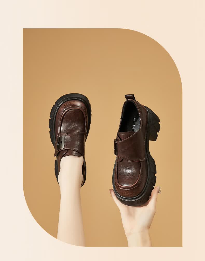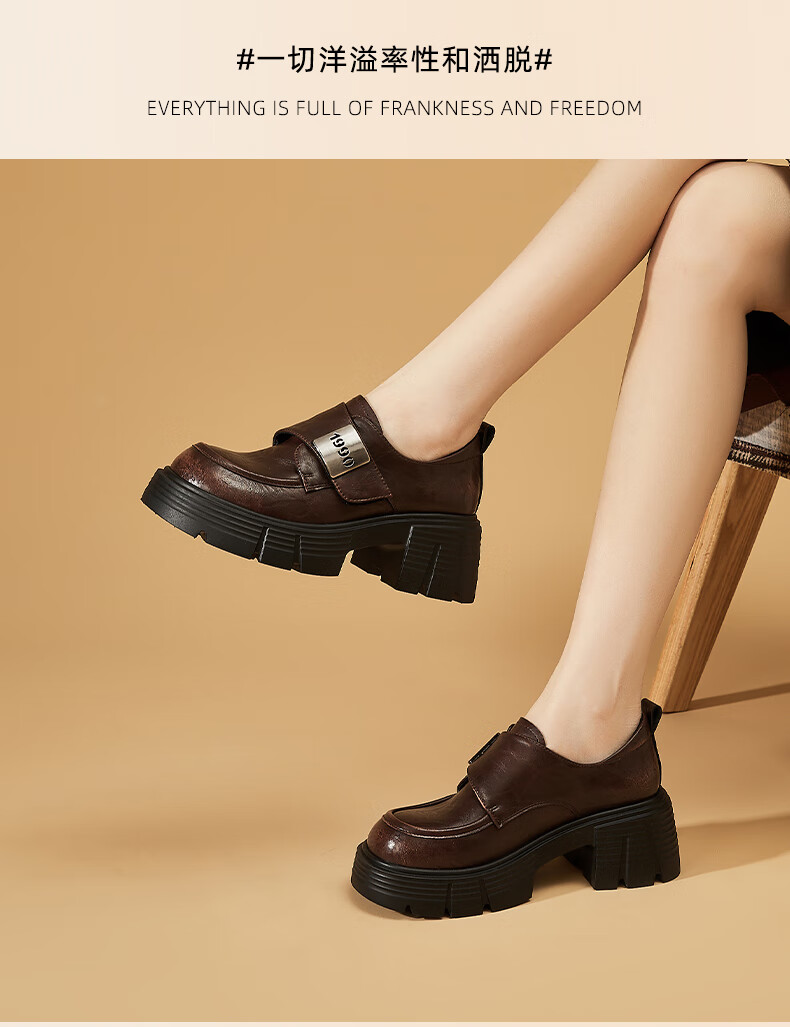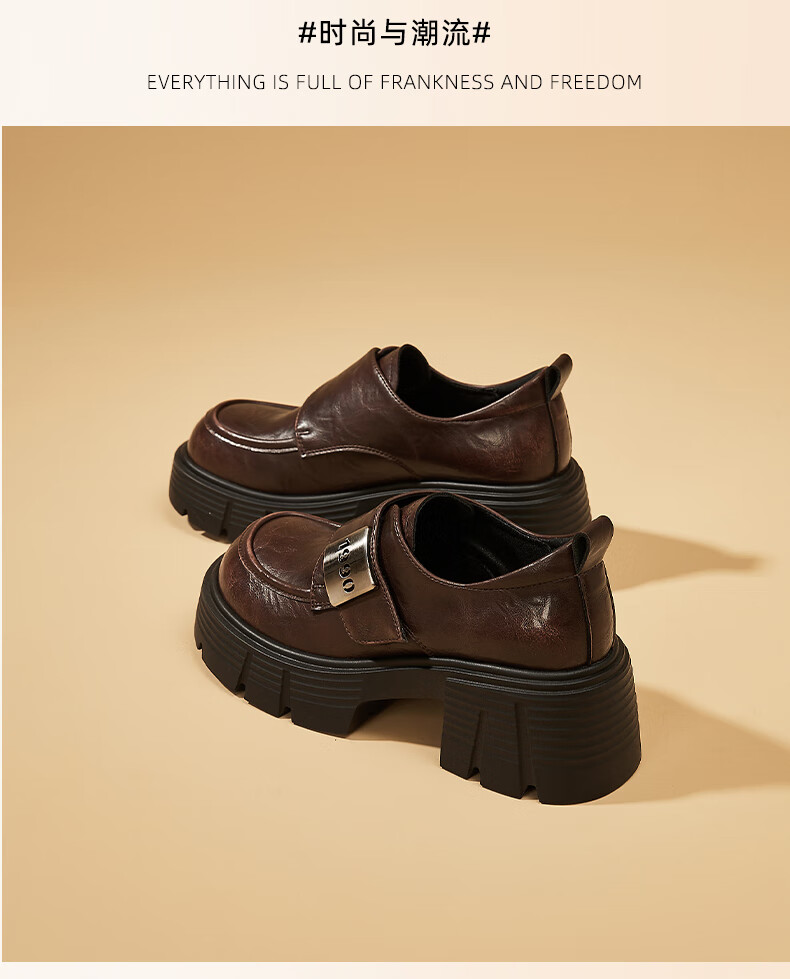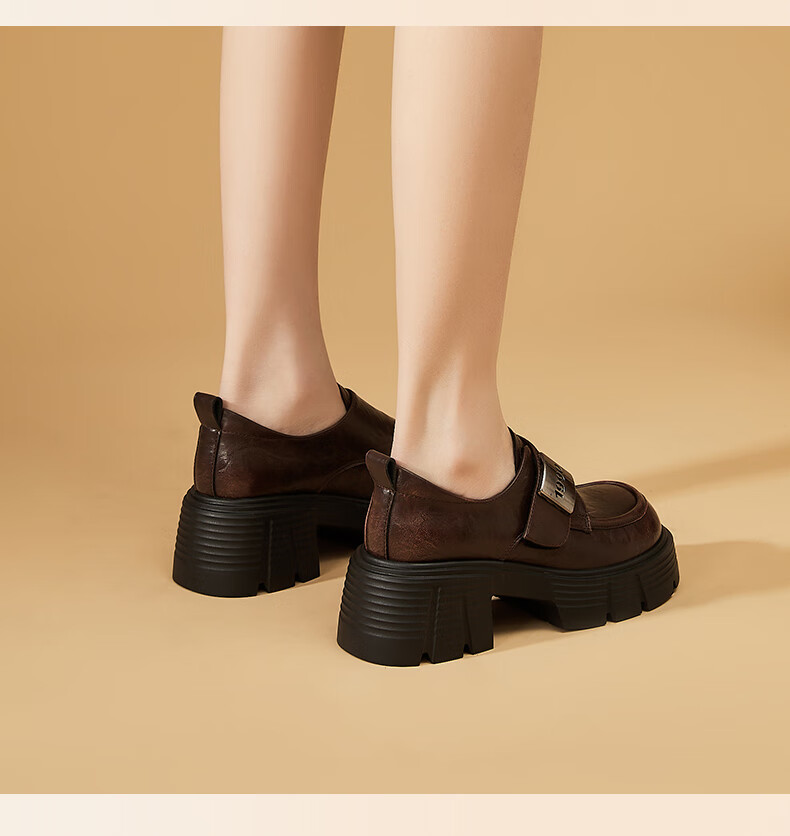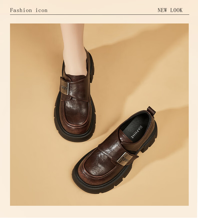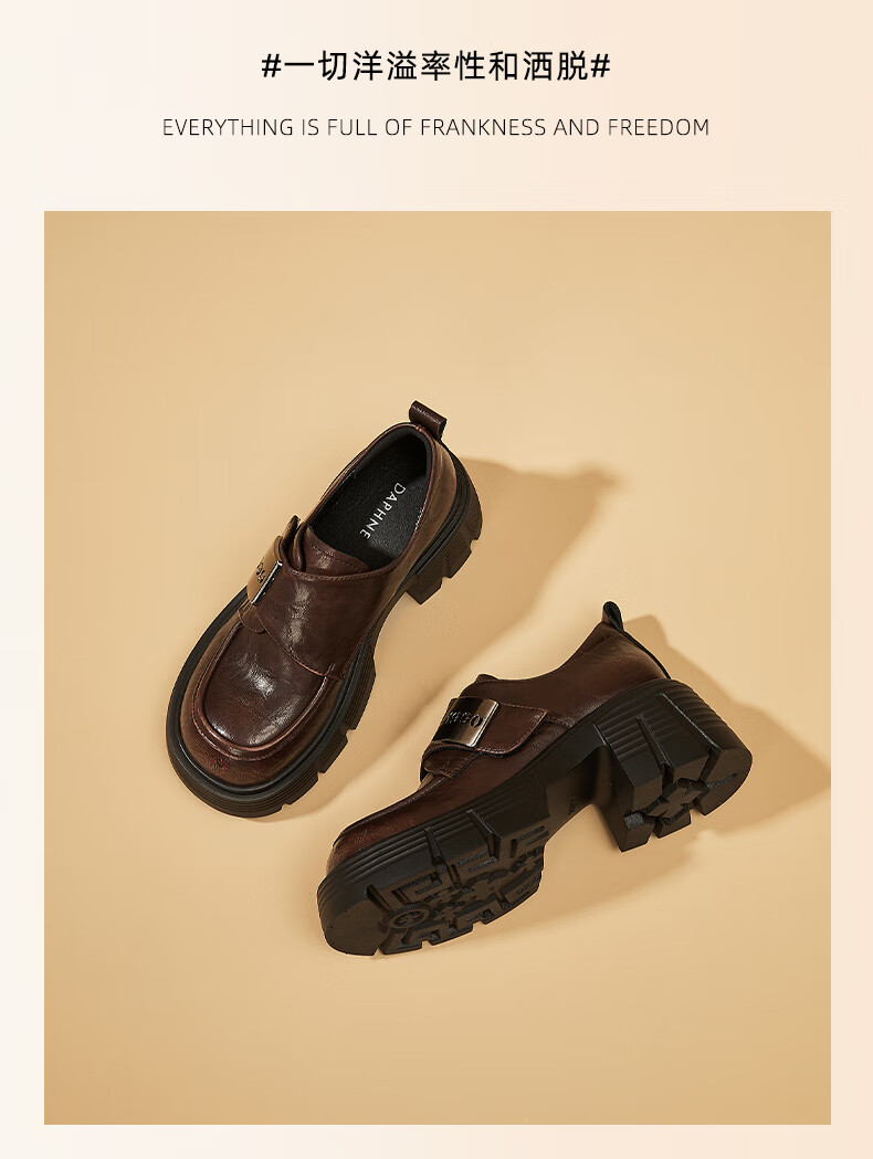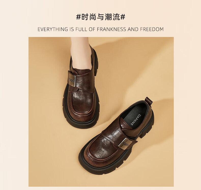 达芙妮厚底乐福鞋2026春季新款耐磨复古小皮鞋软底百搭英伦风增高单鞋 棕色 40