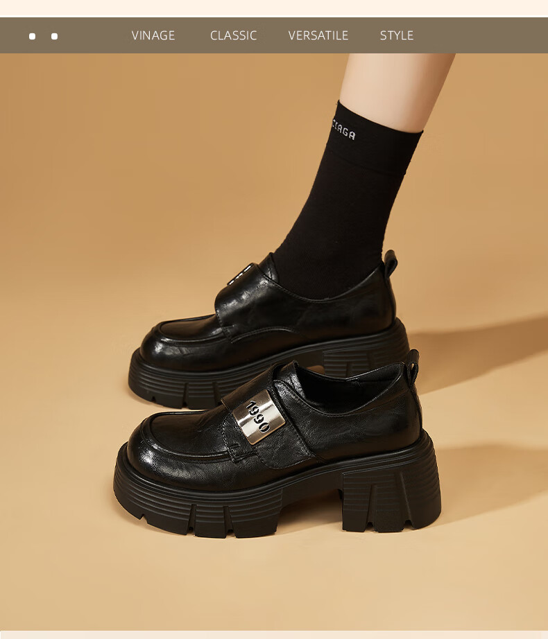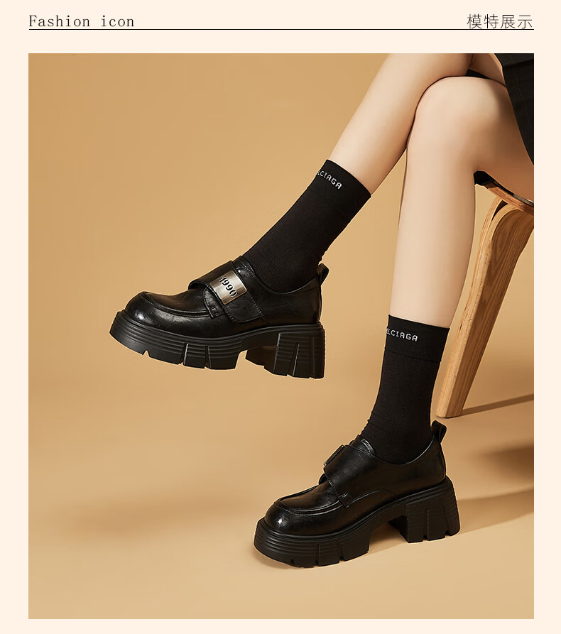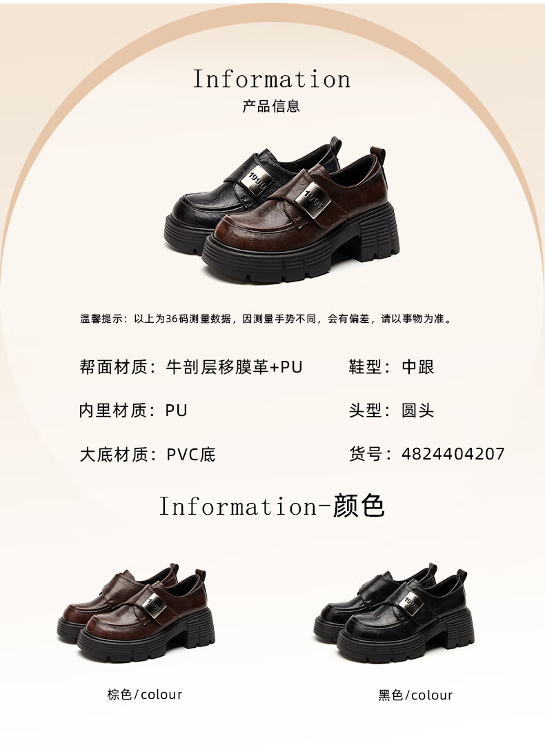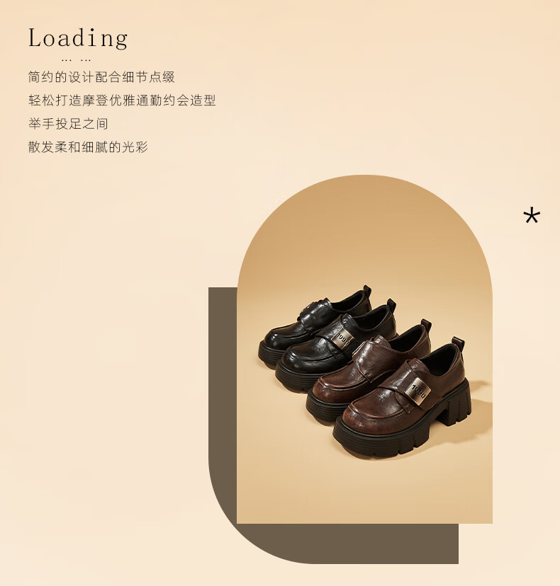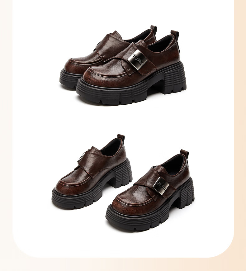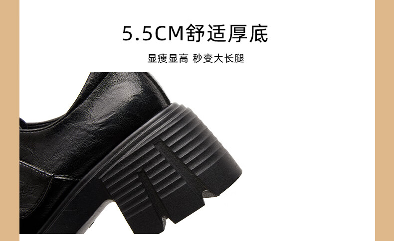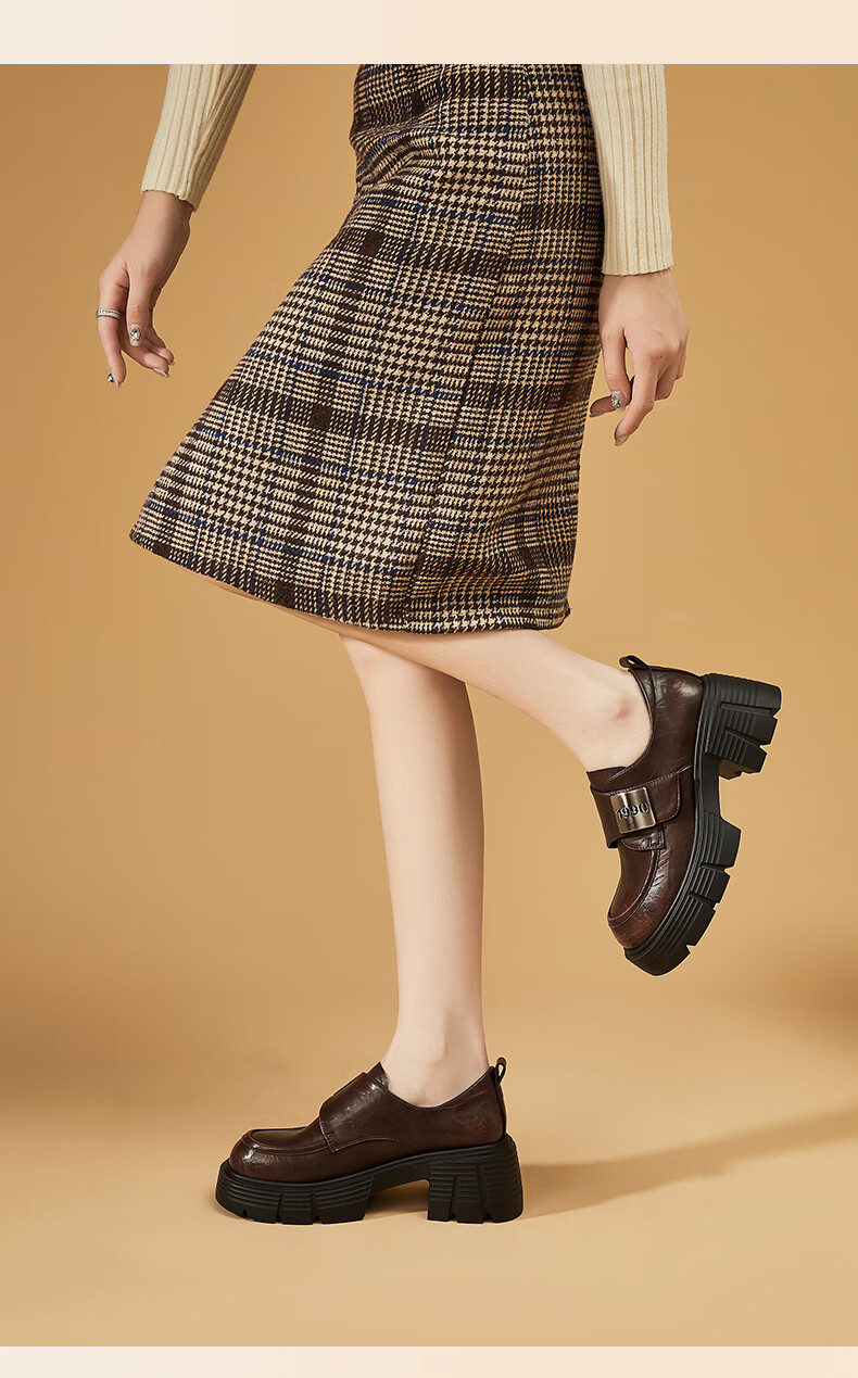 达芙妮厚底乐福鞋2026春季新款耐磨复古小皮鞋软底百搭英伦风增高单鞋 棕色 40