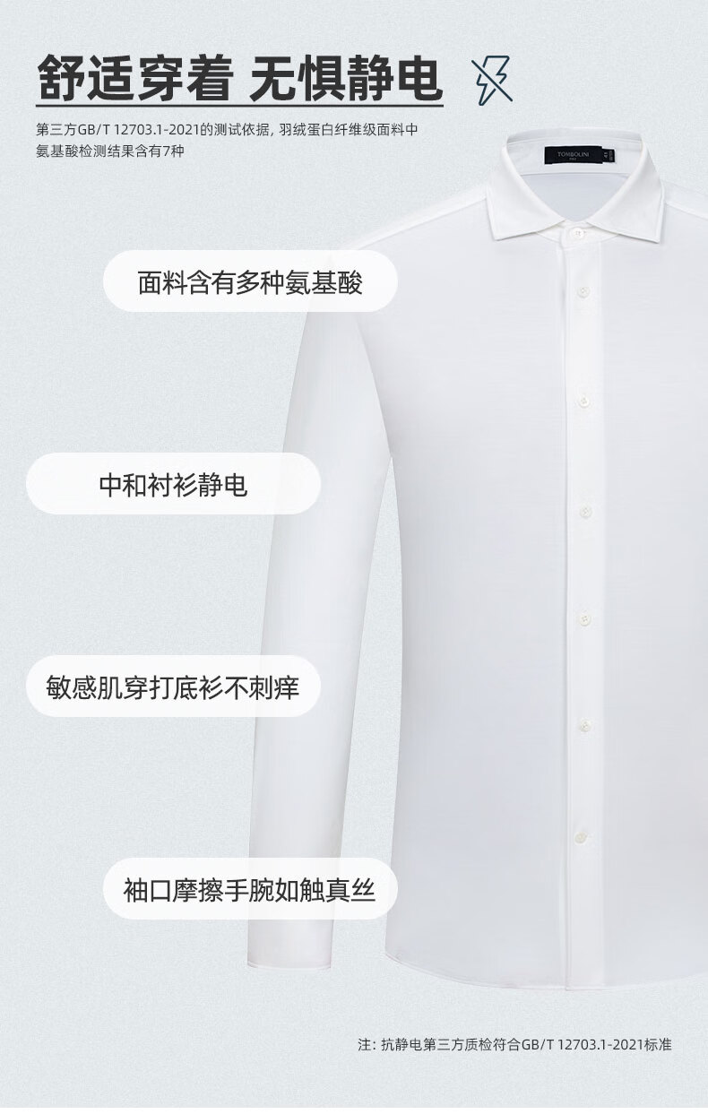 东博利尼【3A级抗菌衬衫】秋季新品羽绒蛋白衬衫男经典款纯色衬衣 白色 39