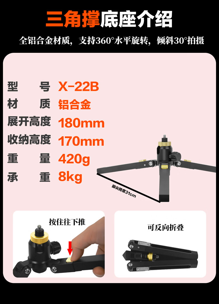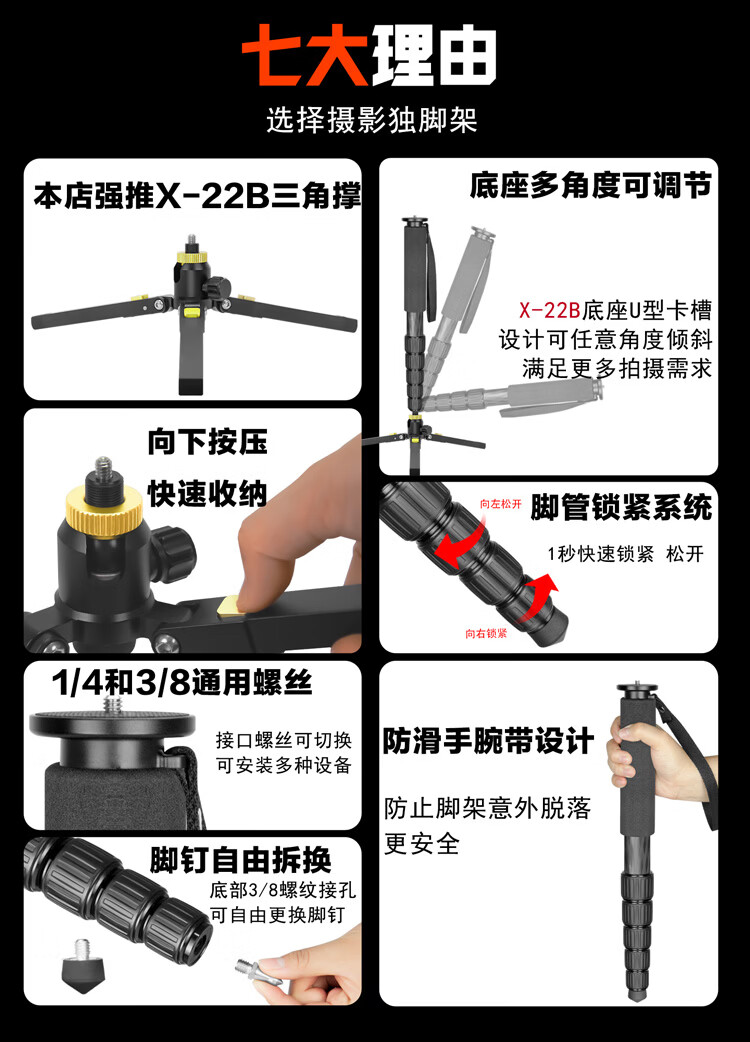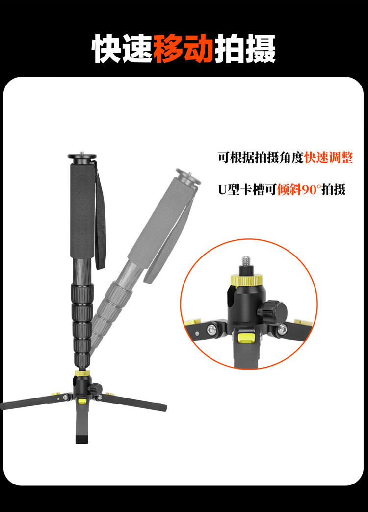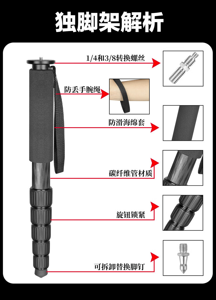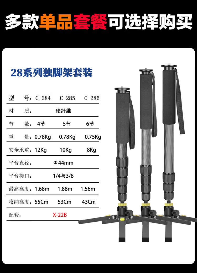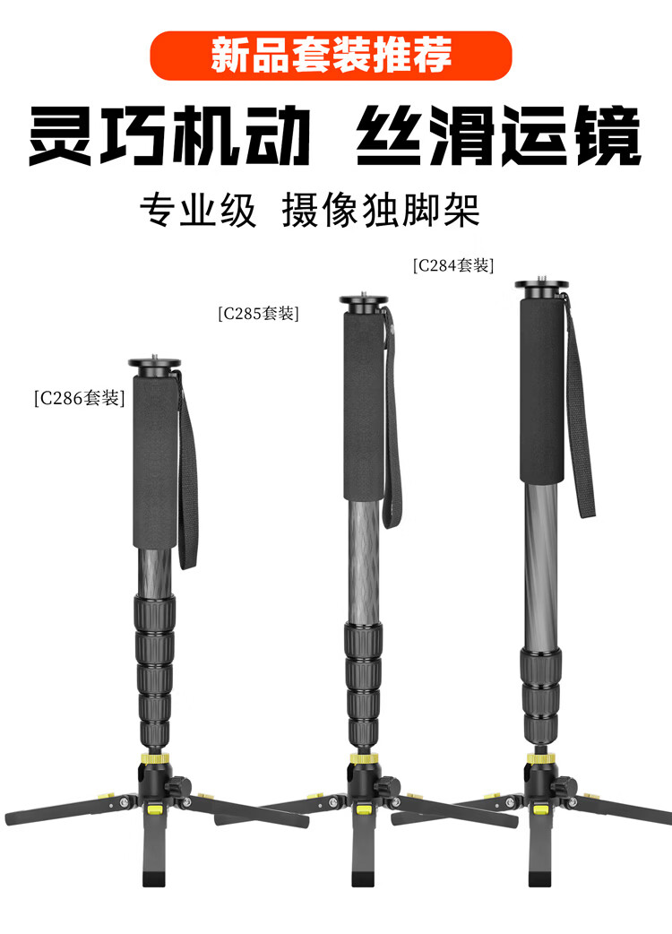 缔峰(DIFUN)C286短小轻便专业单反相机碳纤维独脚架户外旅行便携摄影手机直播支架多功能婚庆跟拍视频直播录像 C286碳纤维独脚架配套X22A三角撑可选4节5节