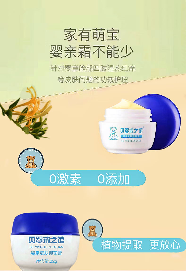 贝婴戒之馆婴亲霜老款抑菌霜宝宝皮肤抑菌膏湿痒婴儿膏皮肤湿痒奶藓红屁屁霜 老款抑菌膏2盒