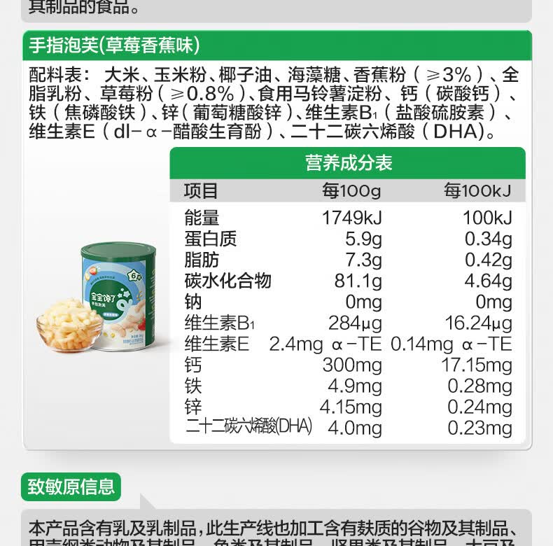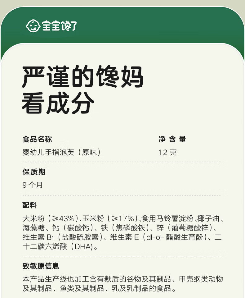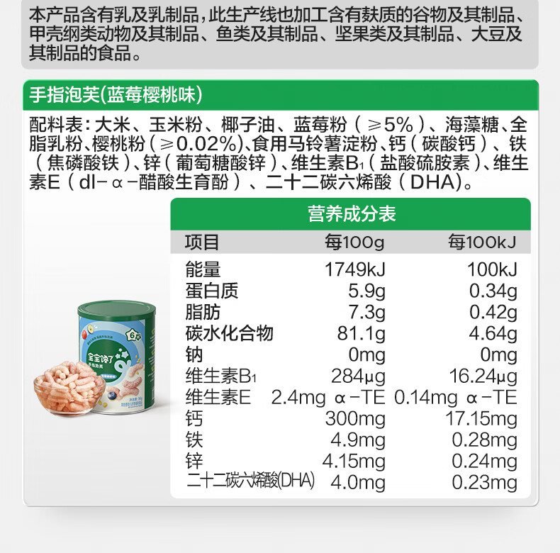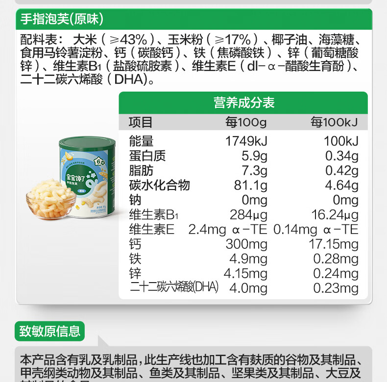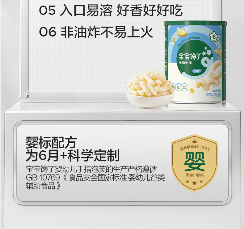 宝宝馋了手指泡芙宝宝婴幼儿零食辅食无添加盐6个月以上享婴儿宝宝食谱 6月+婴幼儿手指泡芙组合180g(36g*5罐)