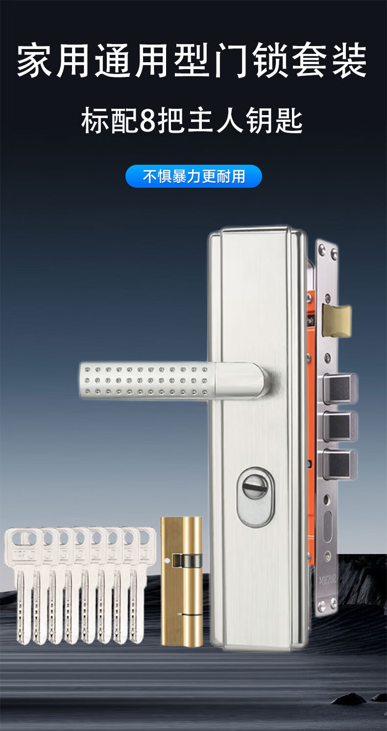 云航防盗门锁套装免费上门安装家用通用型大门锁不锈钢门把手全铜锁芯 钢拉丝防盗门把手指导安装