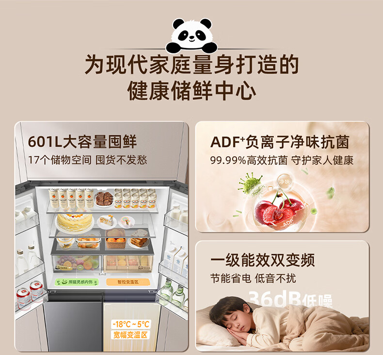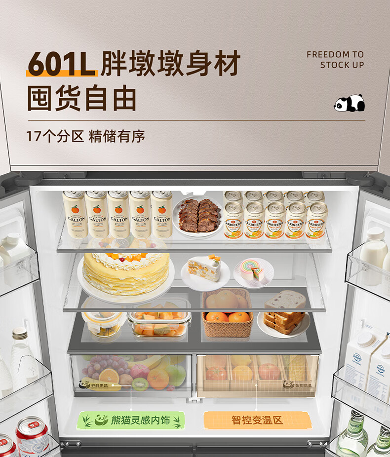 美菱冰箱胖墩墩601L十字多门大容量净味抗菌双变频省电低噪一级能效家用电冰箱 BCD-601WSP9CX