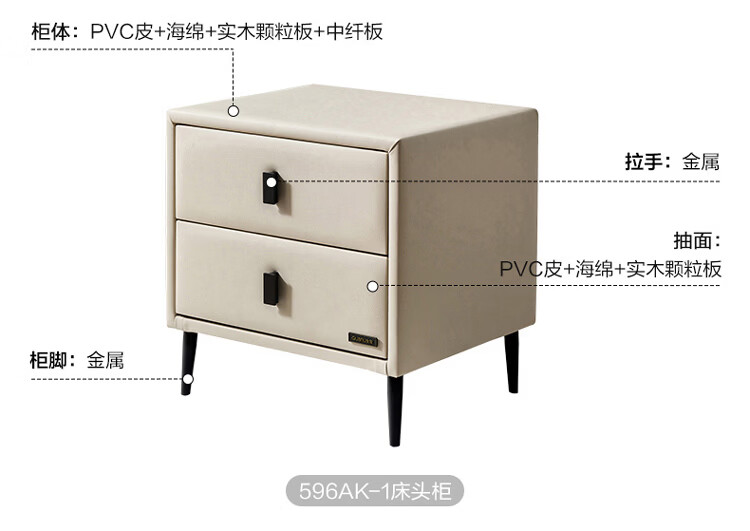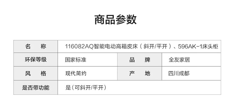 全友家居线下门店同款布朗尼皮艺床软包床头靠背主卧大床床头柜U30001 【松露黑 | 高脚款】单床 2x2.2米