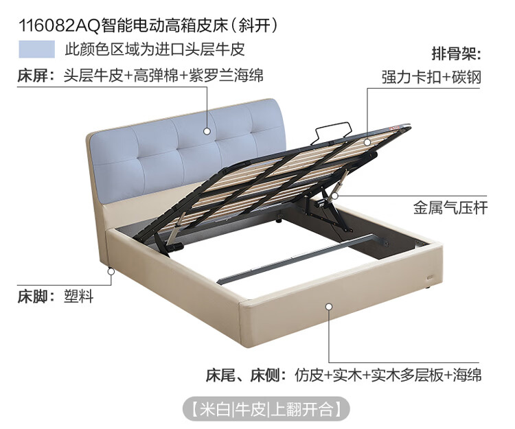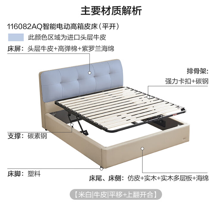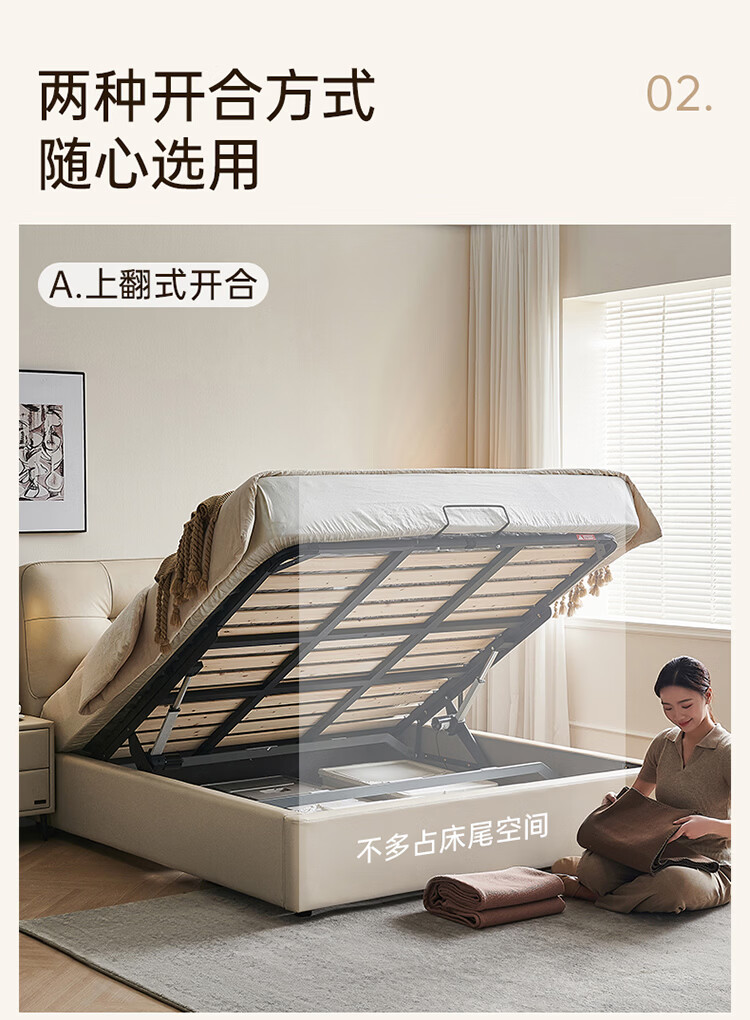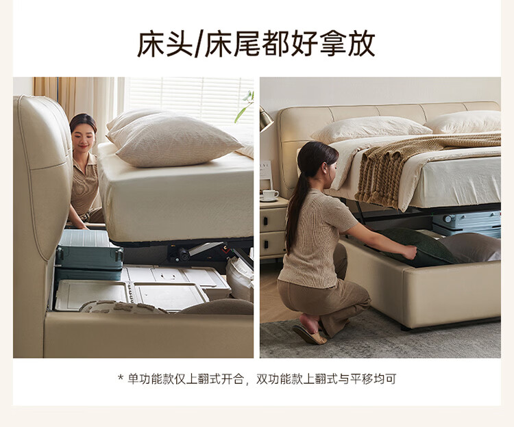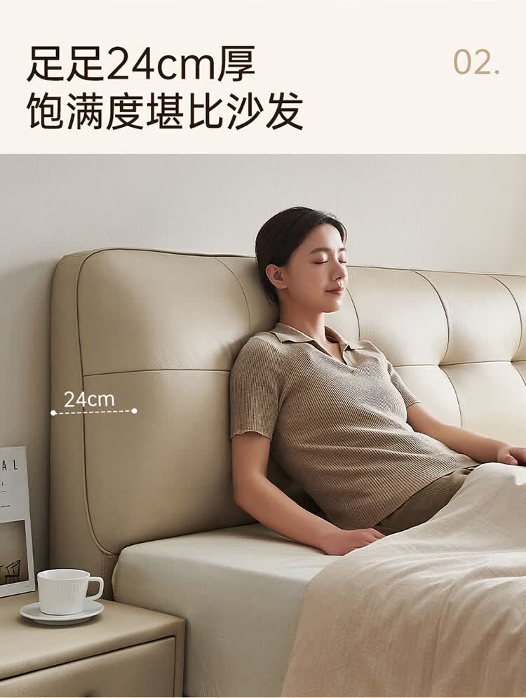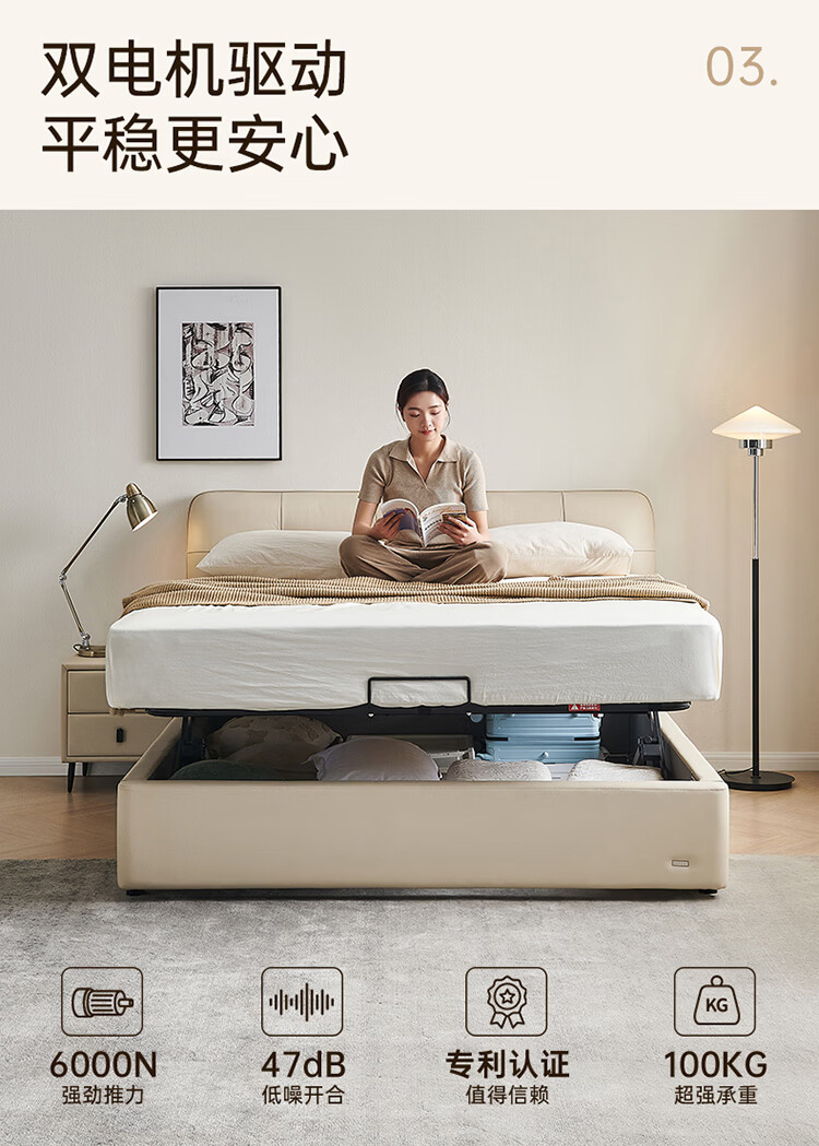 全友家居现代简约茉伊真皮床轻奢高级感2026年新款头层牛皮软包靠背床 【牛皮 | 米白 | 平移+上翻开合电动储物款】 1.8米x2米 床+床头柜*1+床垫