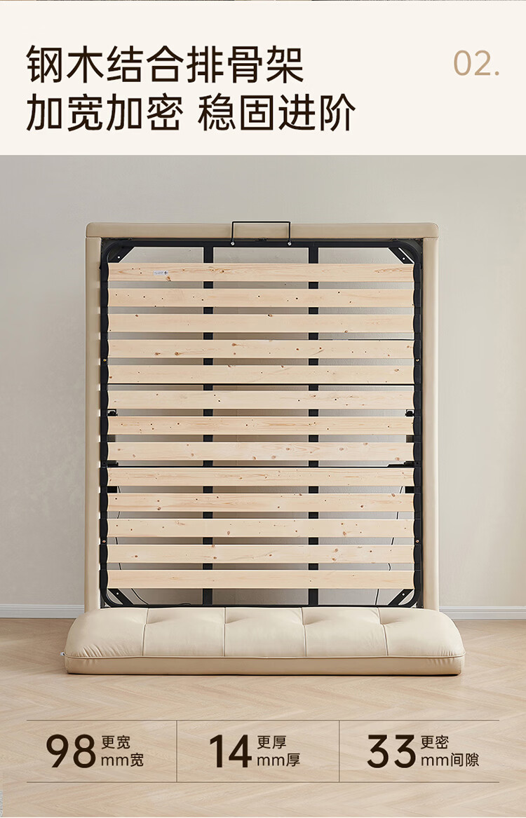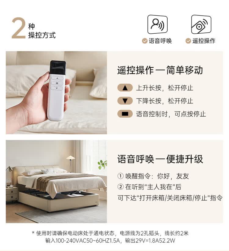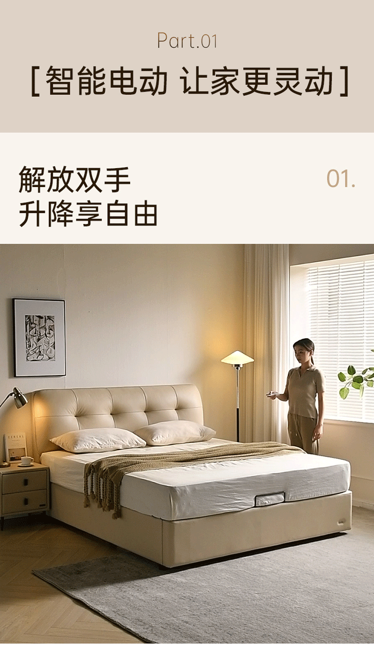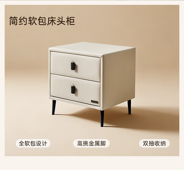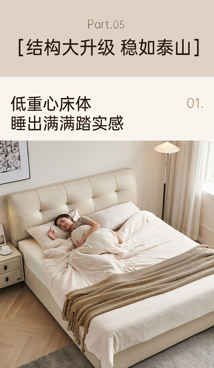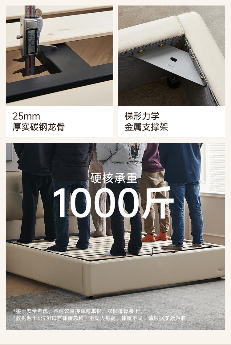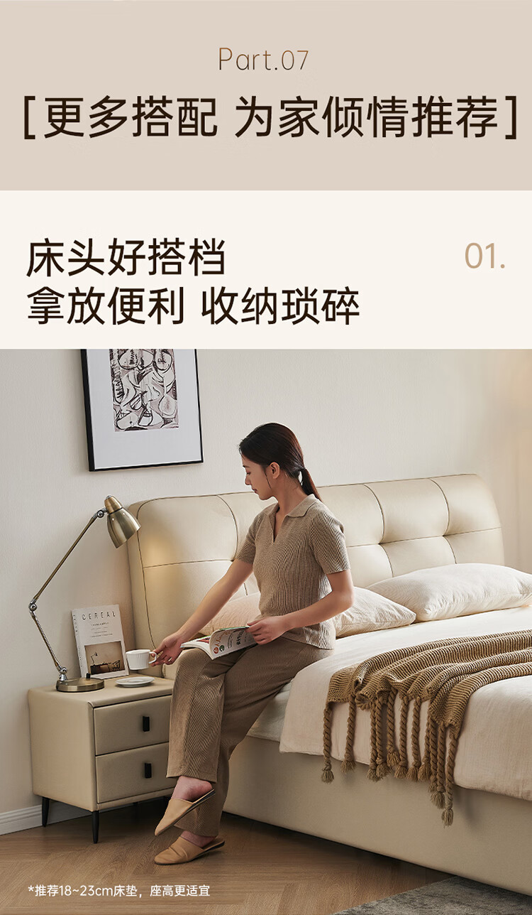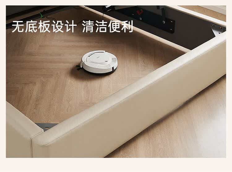 全友家居现代简约茉伊真皮床轻奢高级感2026年新款头层牛皮软包靠背床 【牛皮 | 米白 | 平移+上翻开合电动储物款】 1.8米x2米 床+床头柜*1
