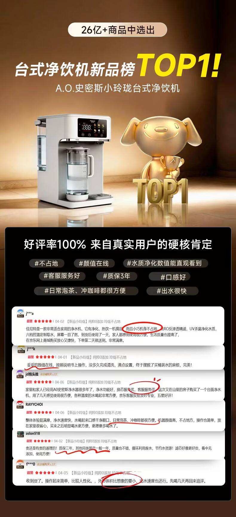 史密斯(A.O.SMITH)【2026上新】佳尼特小玲珑家用免安装台式净饮机 RO反渗透即热净水机净水器加热直饮一体机CR260H2 【净饮机+滤芯套装】3年滤芯0费用 5L 6档控温8级精滤
