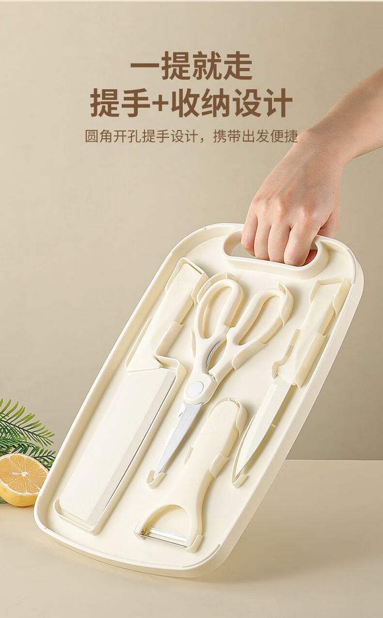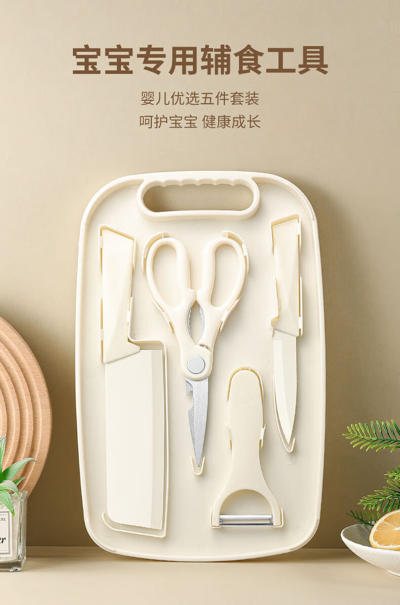 COOKSS婴儿辅食工具套装切菜板砧板刀具宝宝案板辅食料理工具五件套收纳