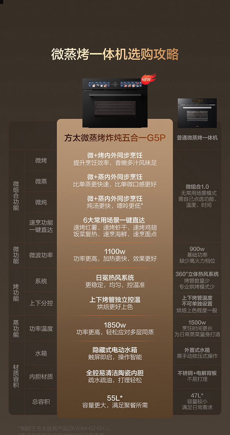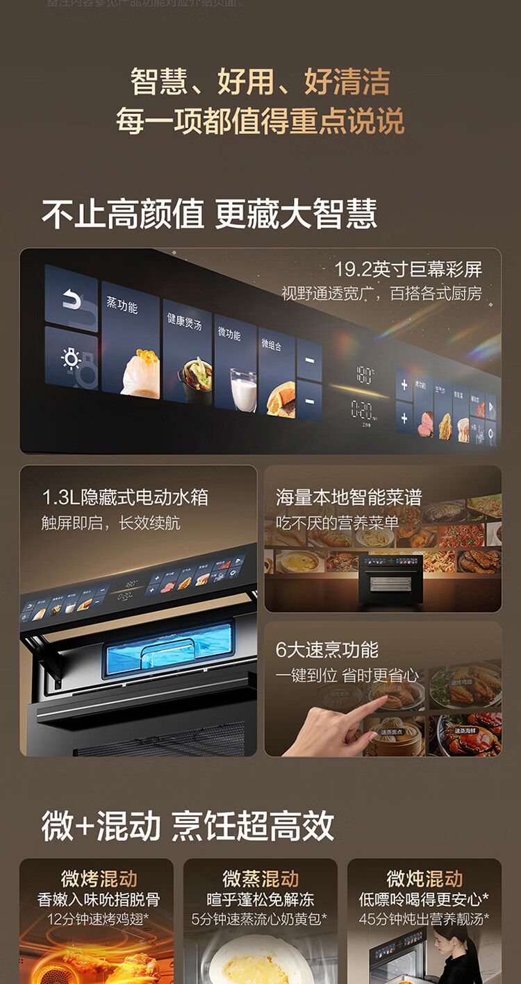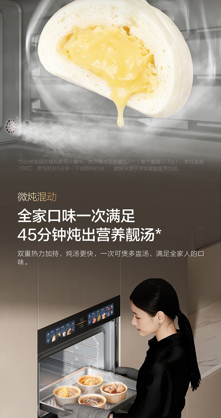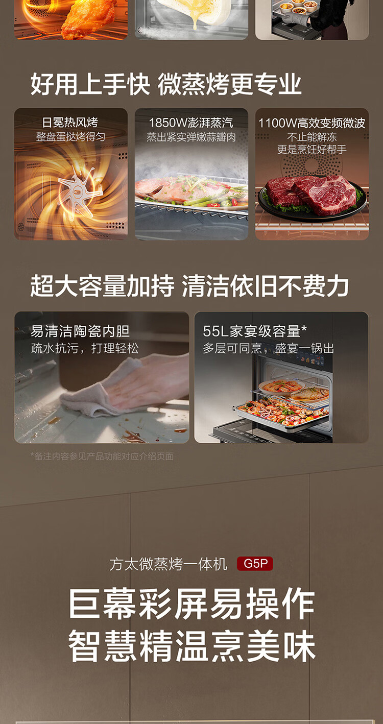 方太【嵌入式微蒸烤一体机G5P】微蒸烤炖炸五合一 19.2英寸巨幕彩屏 隐藏式电动水箱 全腔陶瓷易清洁 【新品】G5P微蒸烤炖炸五合一 19.2寸巨幕彩屏