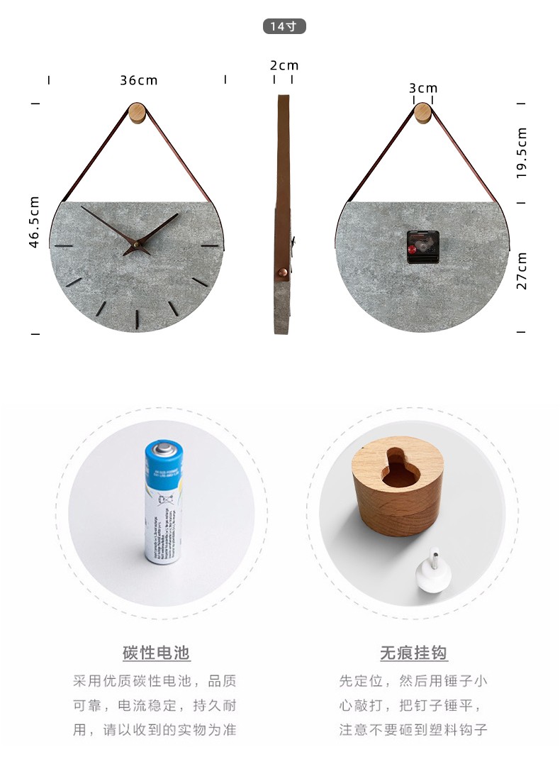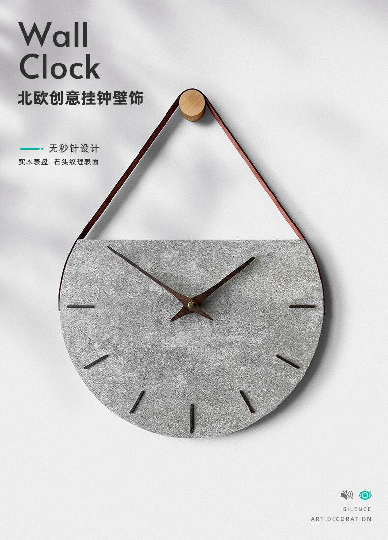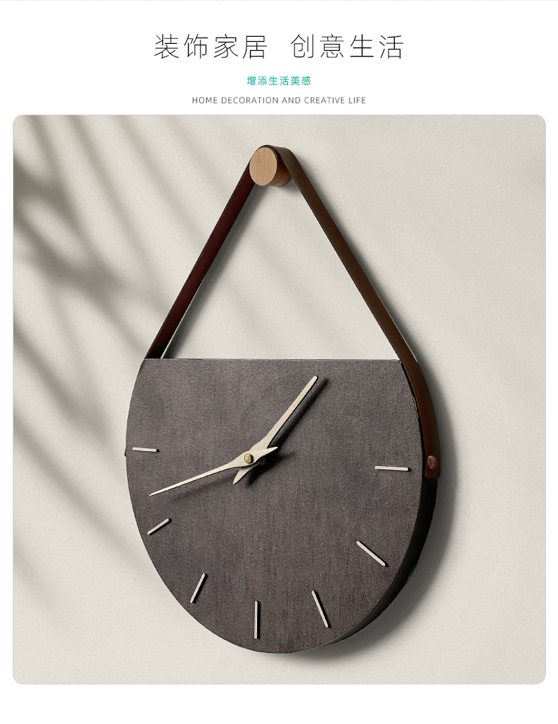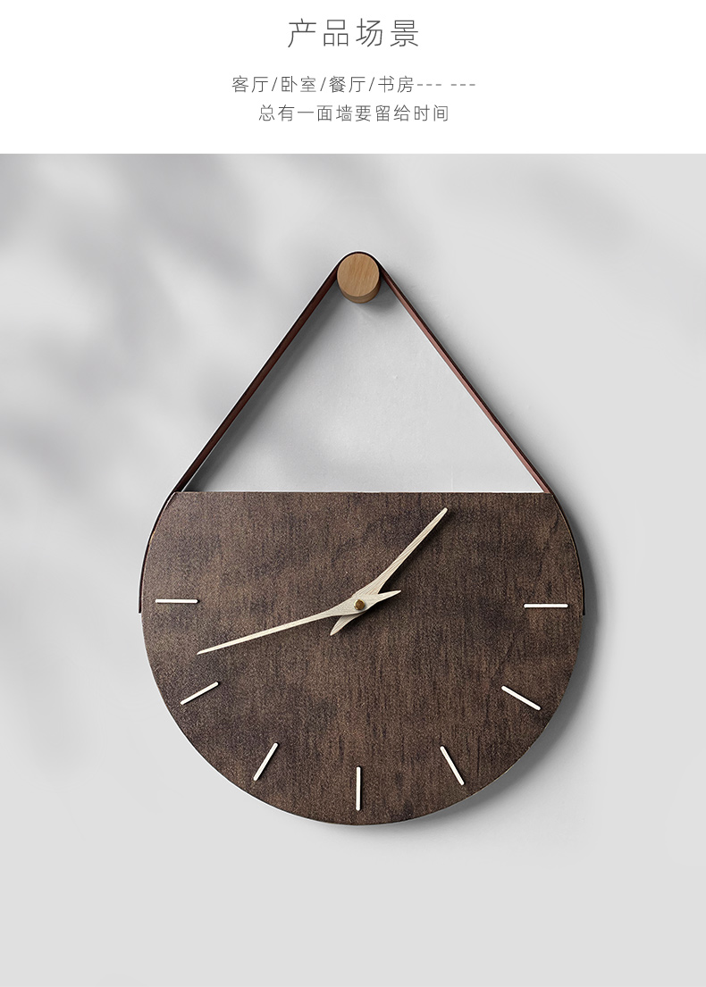 KOLYMAX轻奢风客厅电视背景墙挂表实木牛角壁挂钟创意原木石英钟创意钟表 榉木创意静音挂钟 14*50CM*1.5CM厚 50cm
