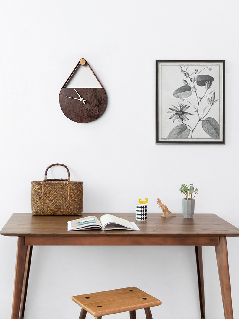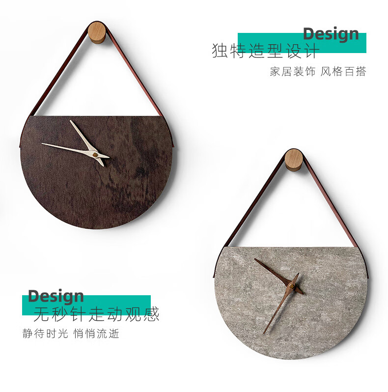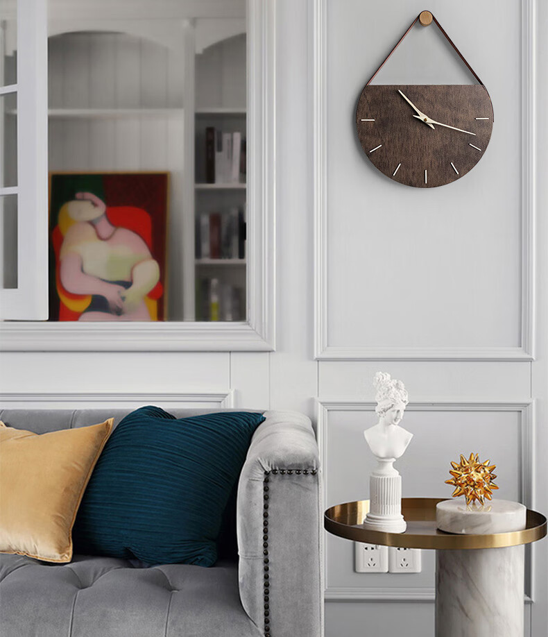 KOLYMAX创意石纹木制会议室背景挂墙钟客厅挂钟家用石英钟卧室简约钟表 深色 12寸 40*31CM