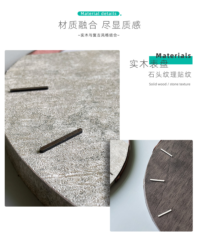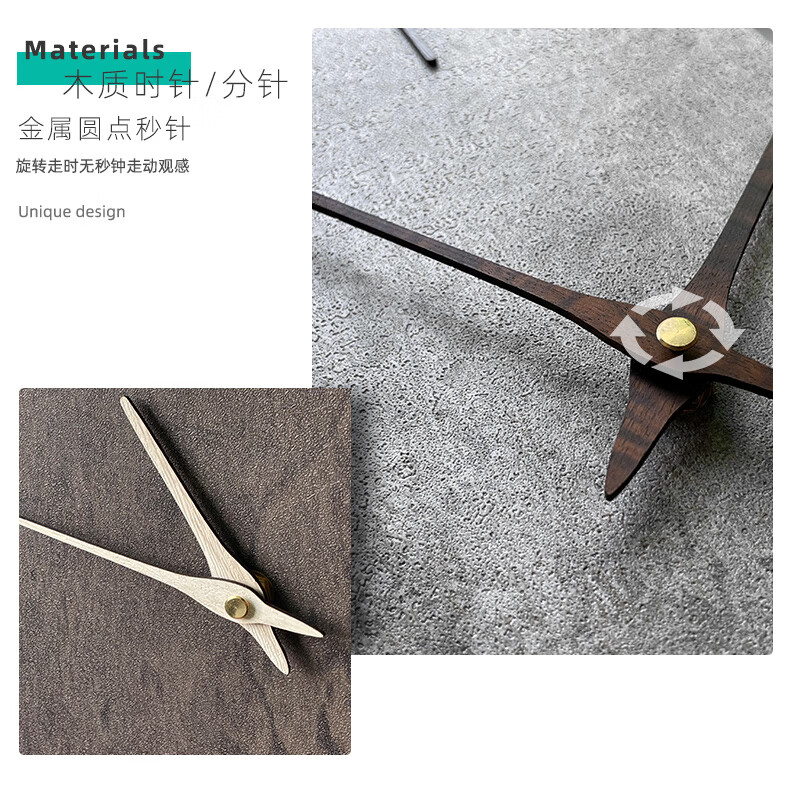 KOLYMAX创意石纹木制会议室背景挂墙钟客厅挂钟家用石英钟卧室简约钟表 深色 14寸 46.5*36CM
