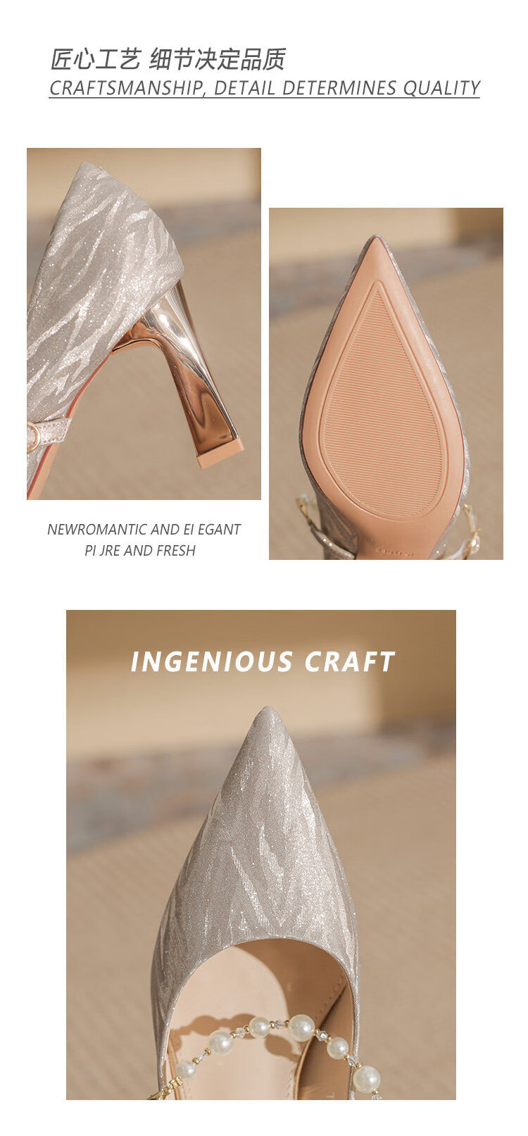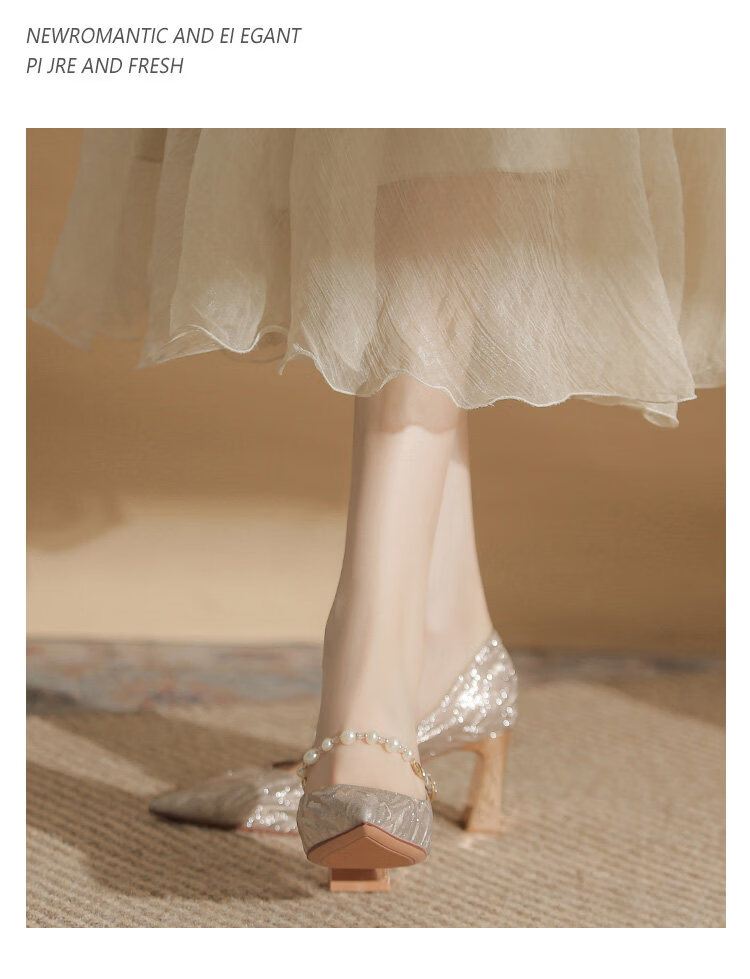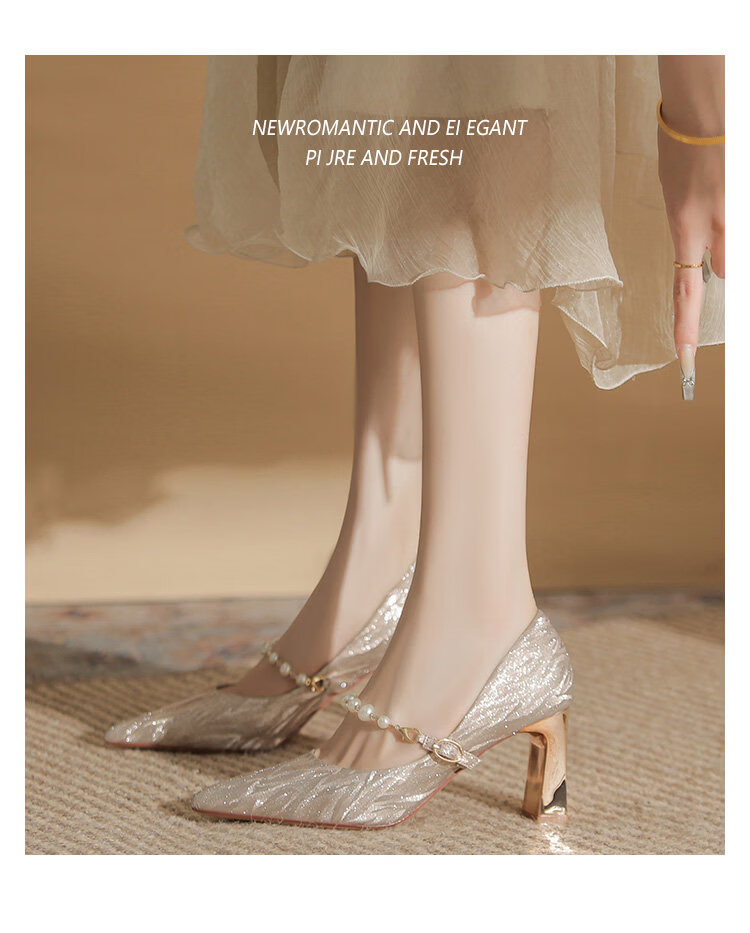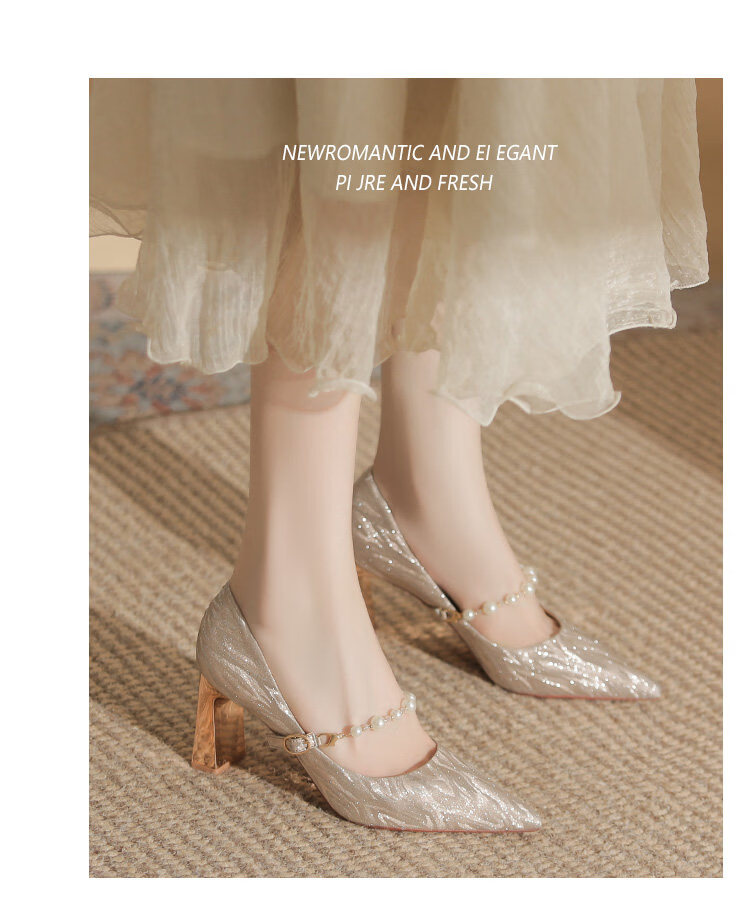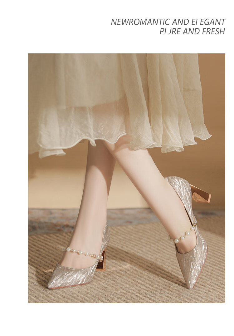 曼珍珠玛丽珍高跟鞋女绝美尖头粗跟单鞋不累脚香槟 香槟色(5.5cm) 37