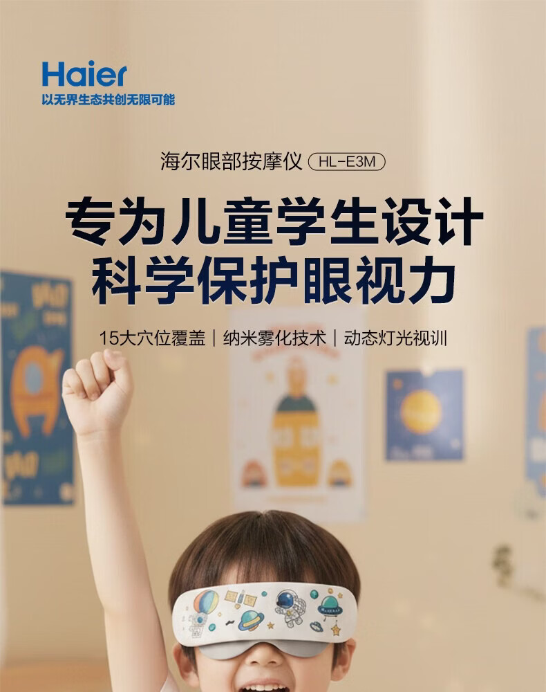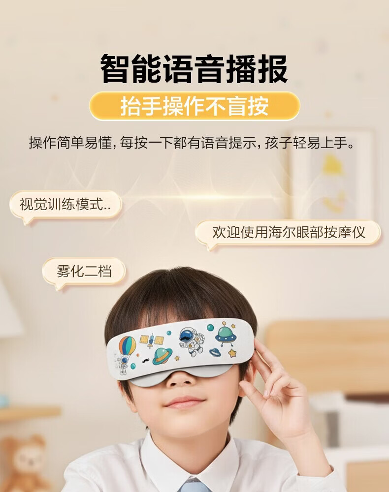海尔眼部儿童护眼仪雾化蒸汽眼罩青少年学生按摩仪点振热敷干眼润眼仪光训按摩器儿童节礼物 【旗舰款】眼保健操+红绿光+雾化暖眼+蓝牙+贴纸