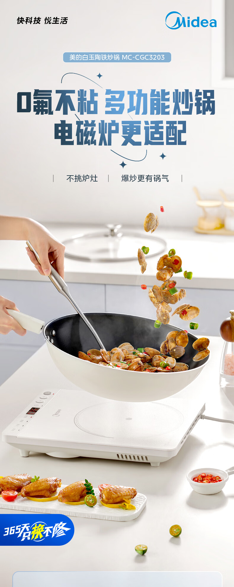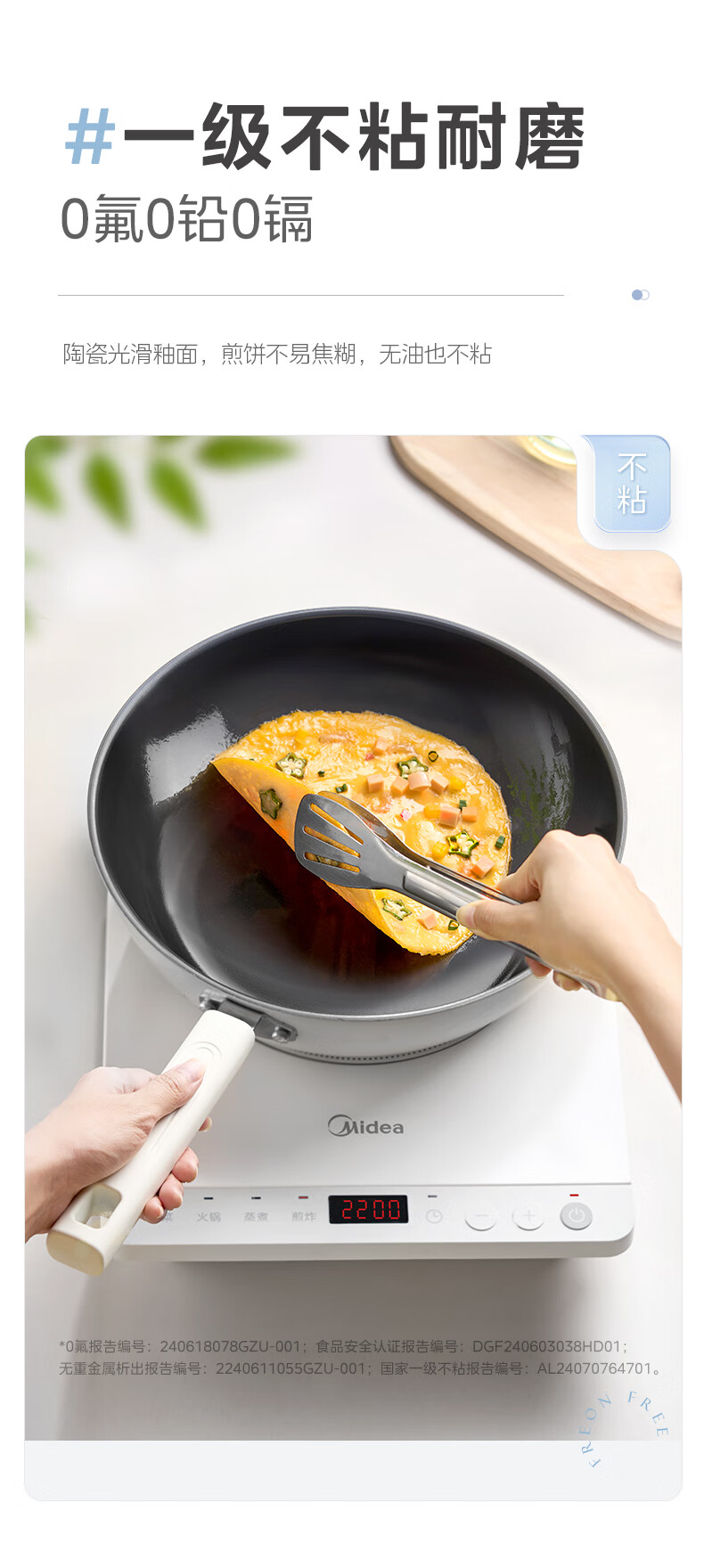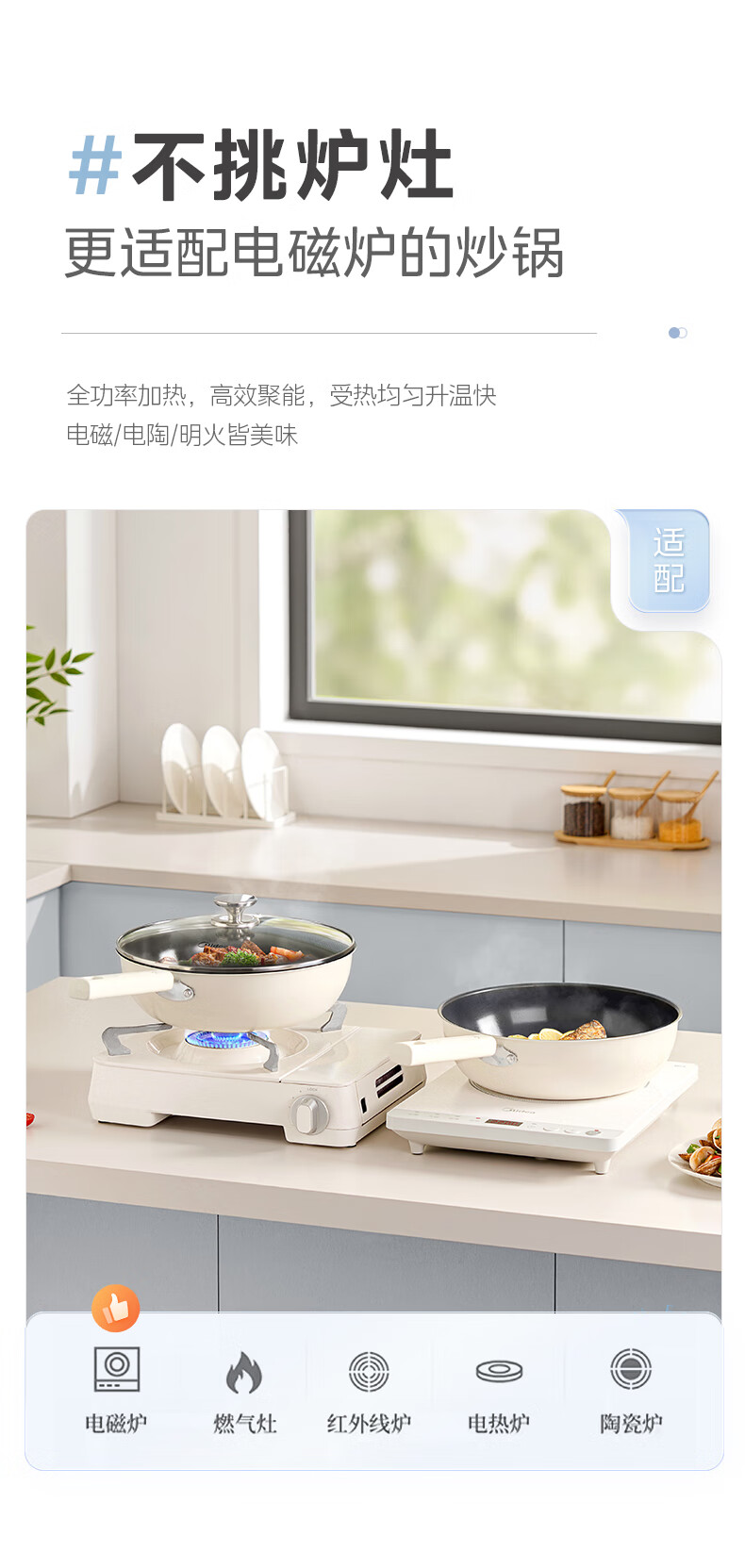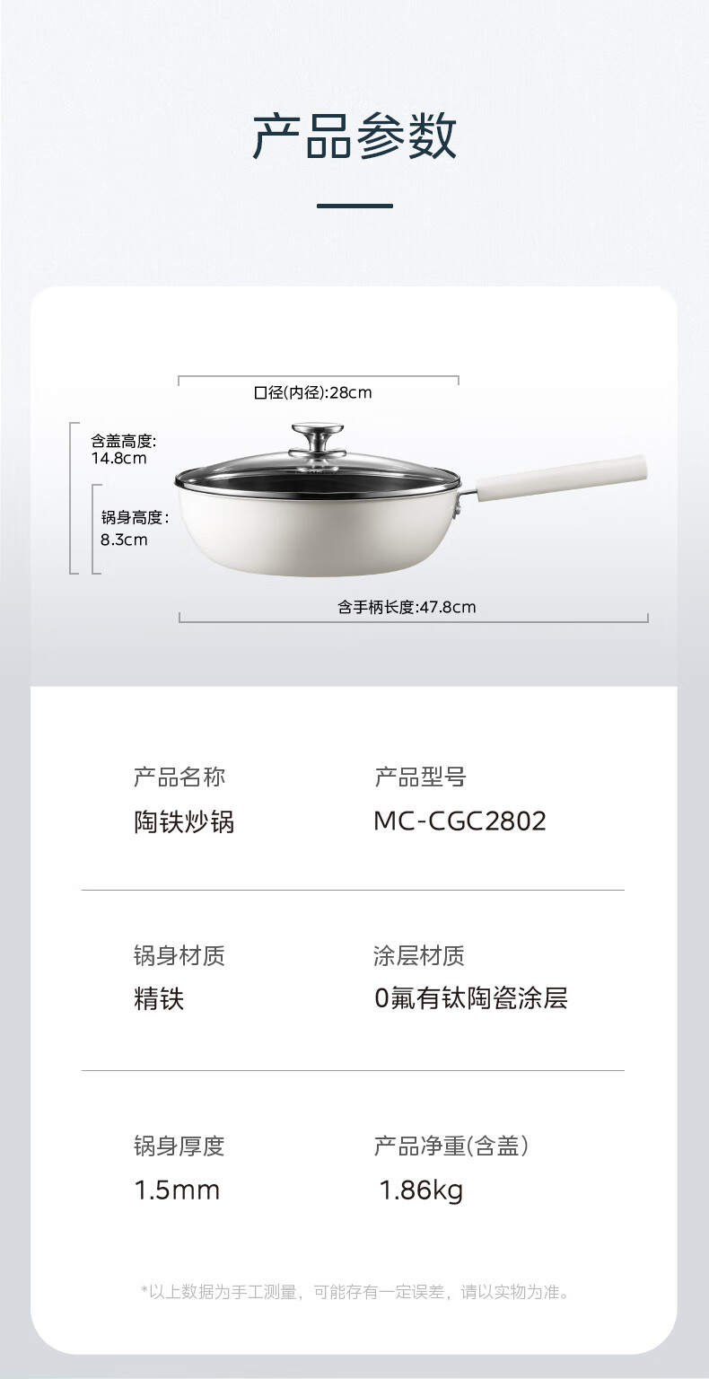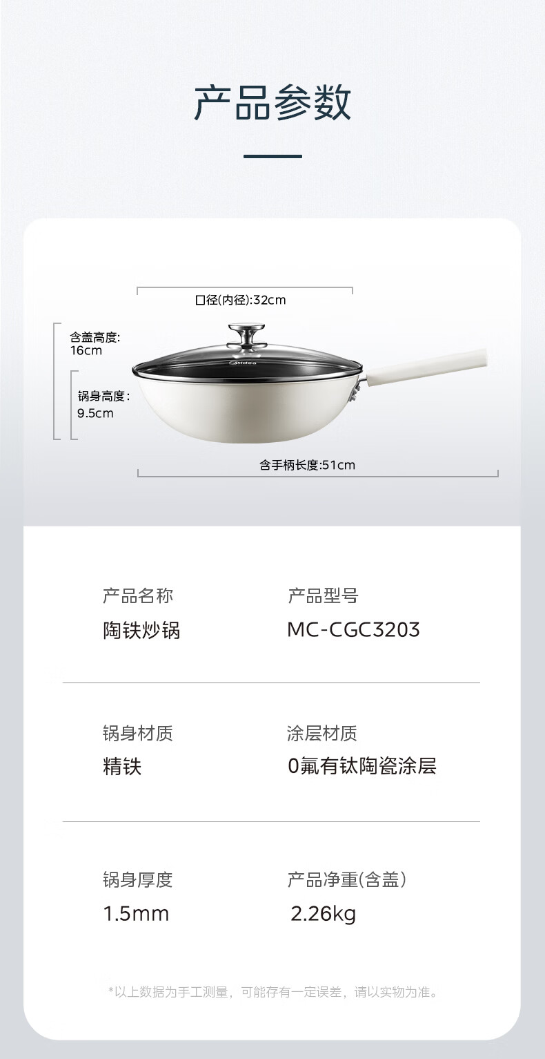 美的炒锅0氟钛陶瓷不粘锅炒菜锅电磁炉燃气灶明火通用 32cm