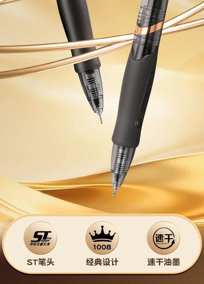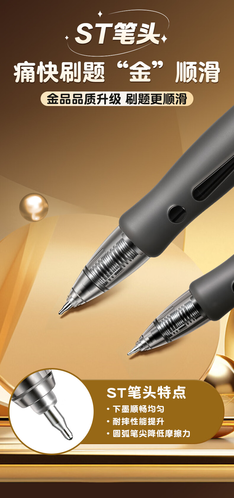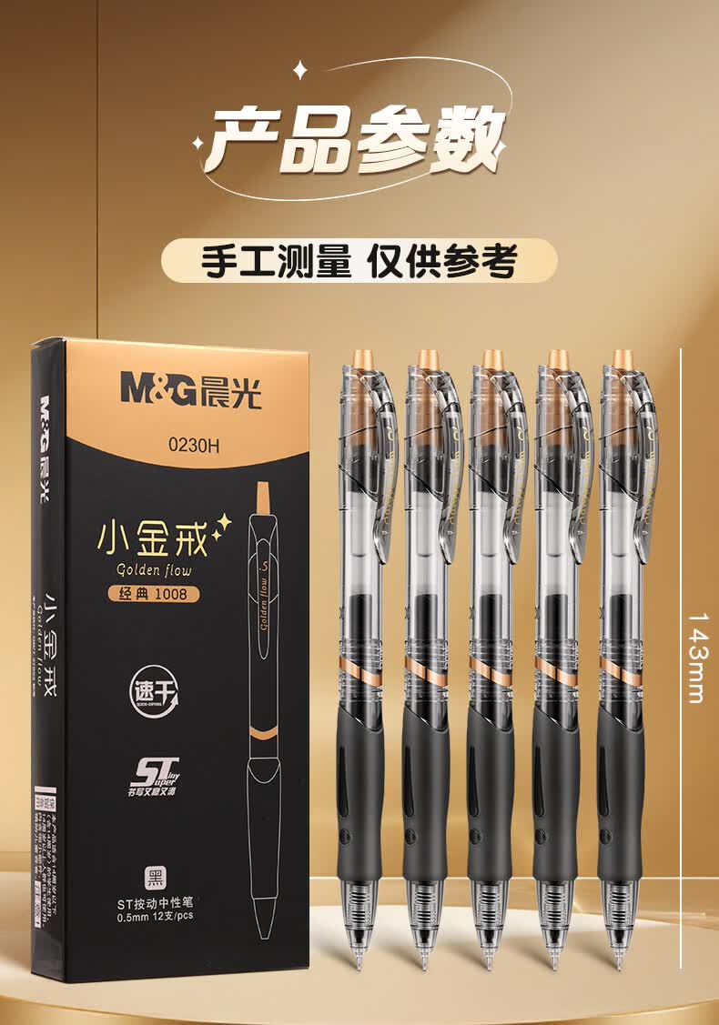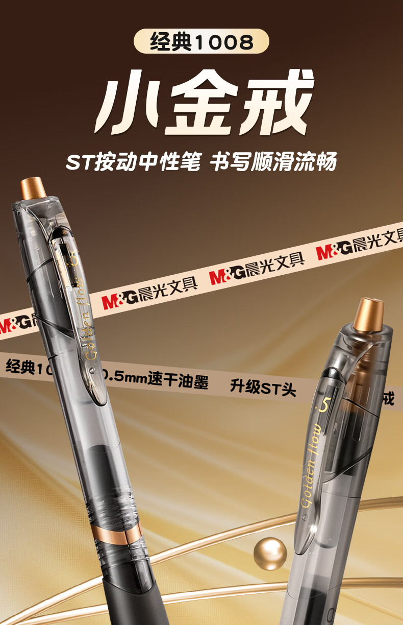 晨光(M&G)按动中性笔1008小金戒0.5mm速干ST黑色学生考试刷题办公签字笔 【12支/盒】小金戒1008