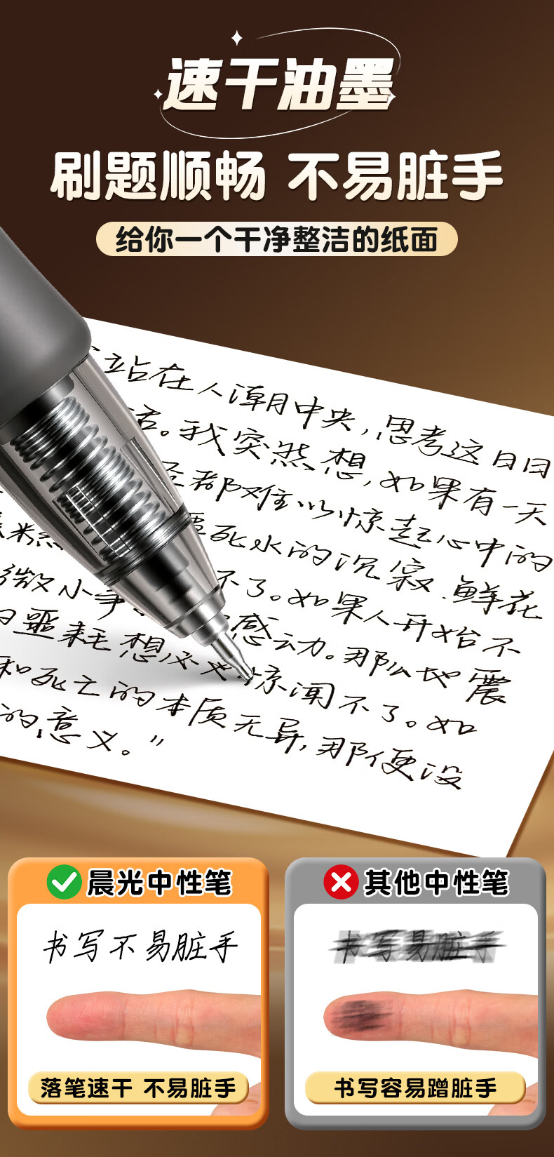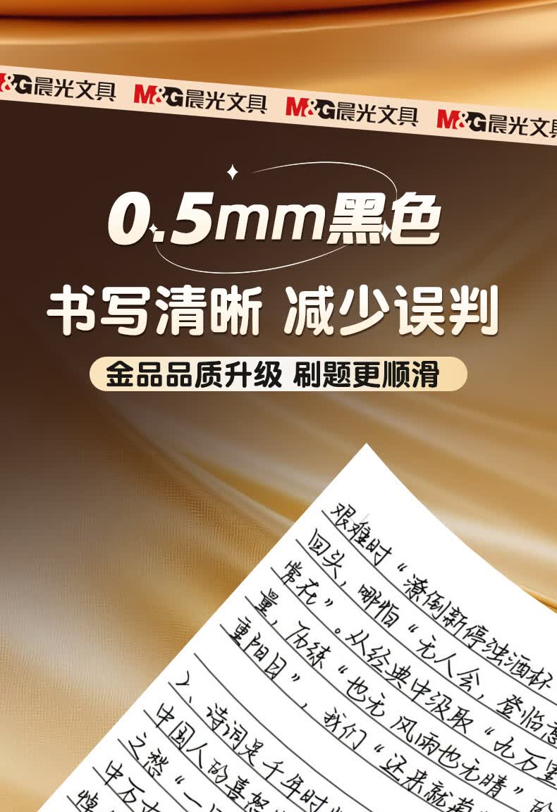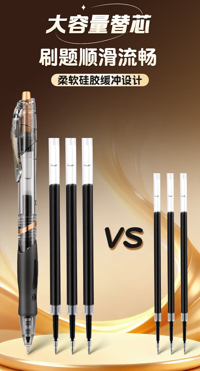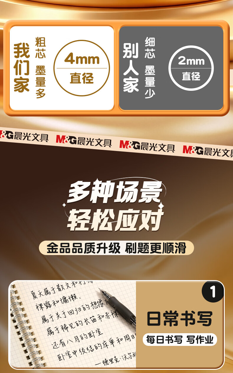 晨光(M&G)按动中性笔1008小金戒0.5mm速干ST黑色学生考试刷题办公签字笔 【12支/盒】小金戒1008